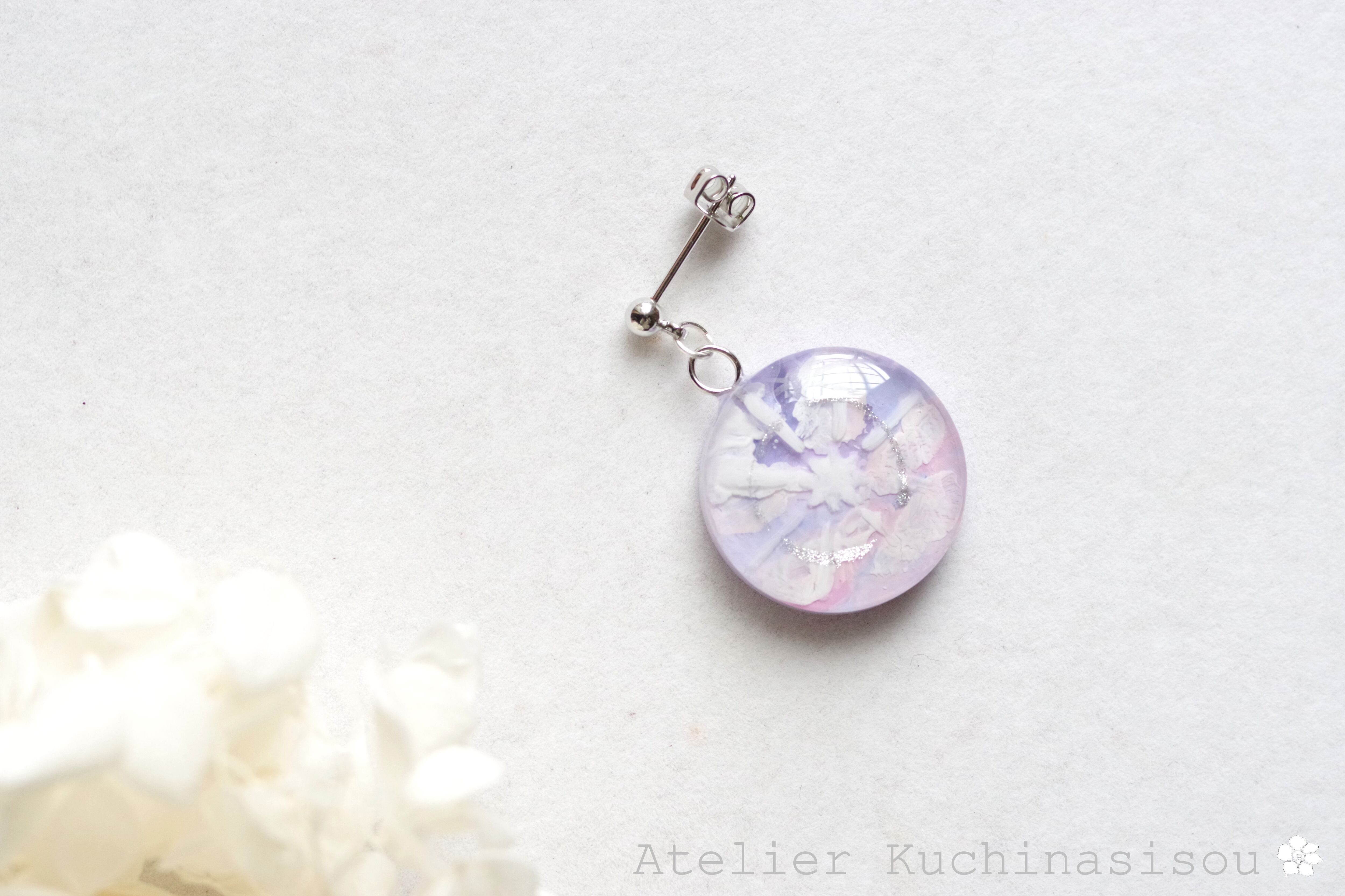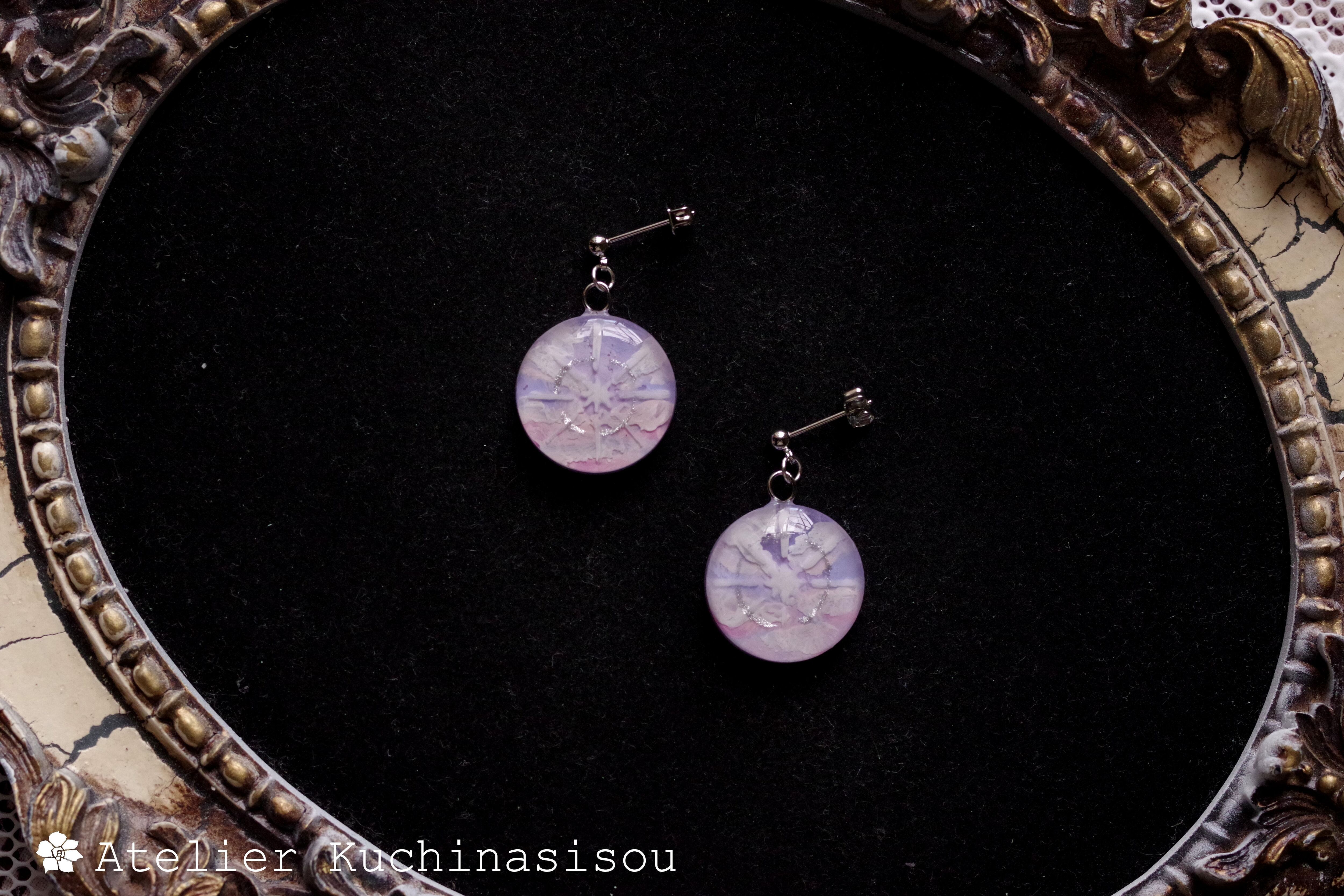 レジンでラウンドピアスを作りました♪