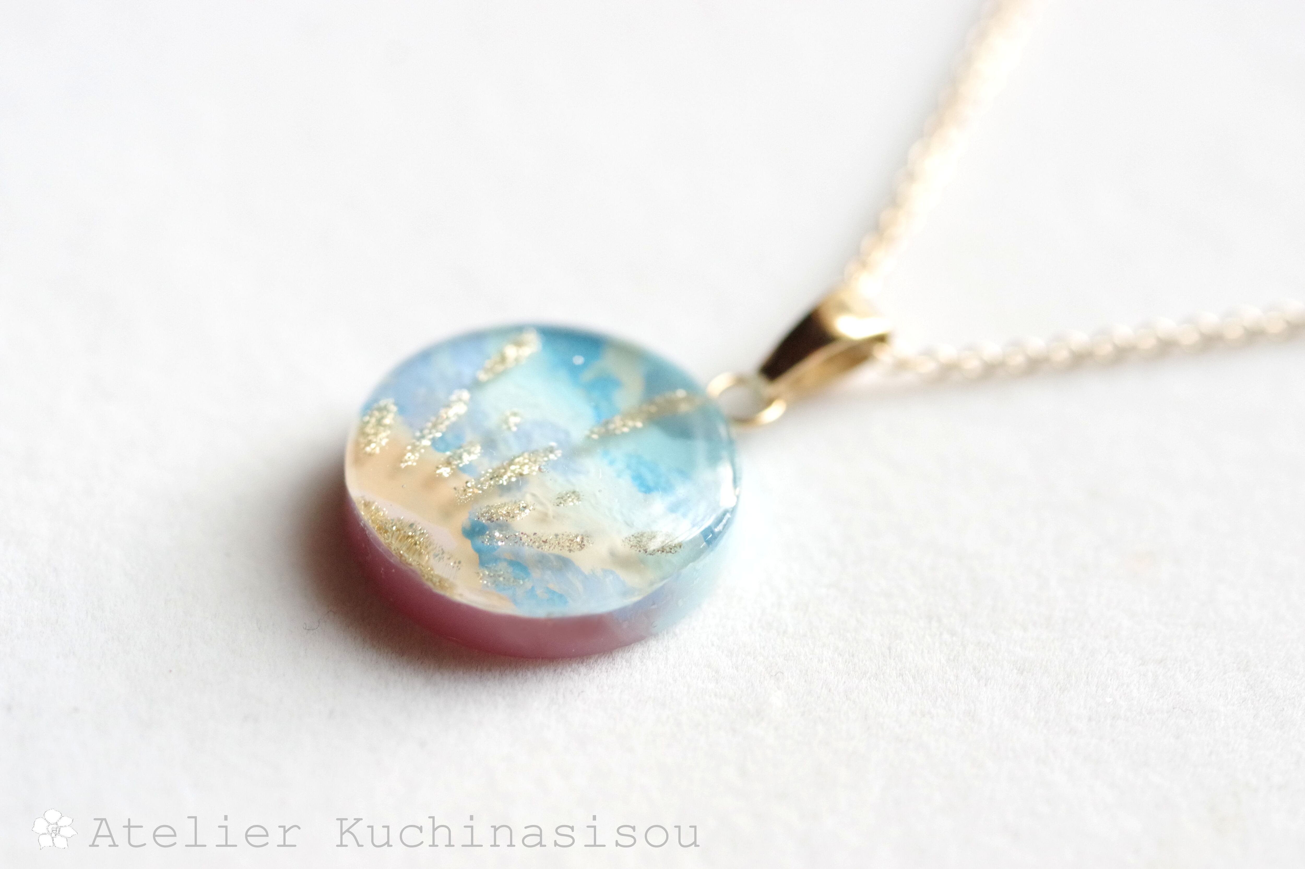 レジンアート ラウンドペンダント〈暁光①〉20㎜