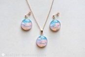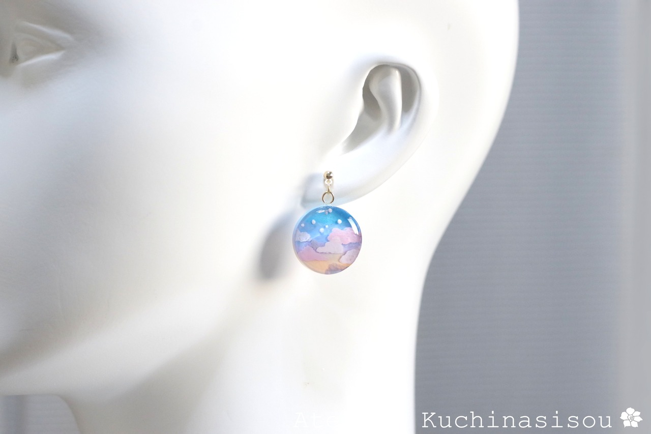 まだほのかに明るい夕方の空と、星の光る夜が同時に存在する黄昏時の美しい空をイメージしたピアス。