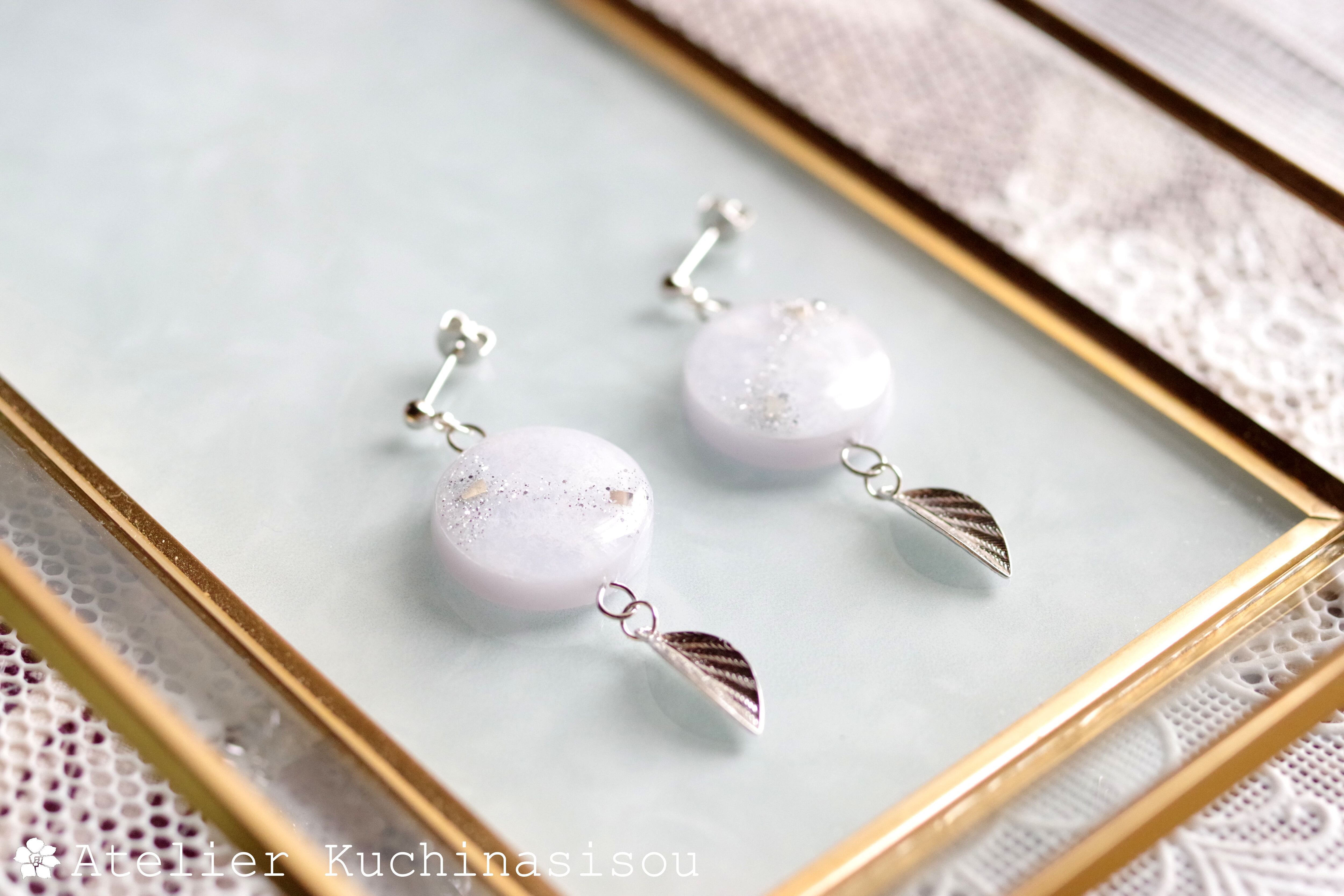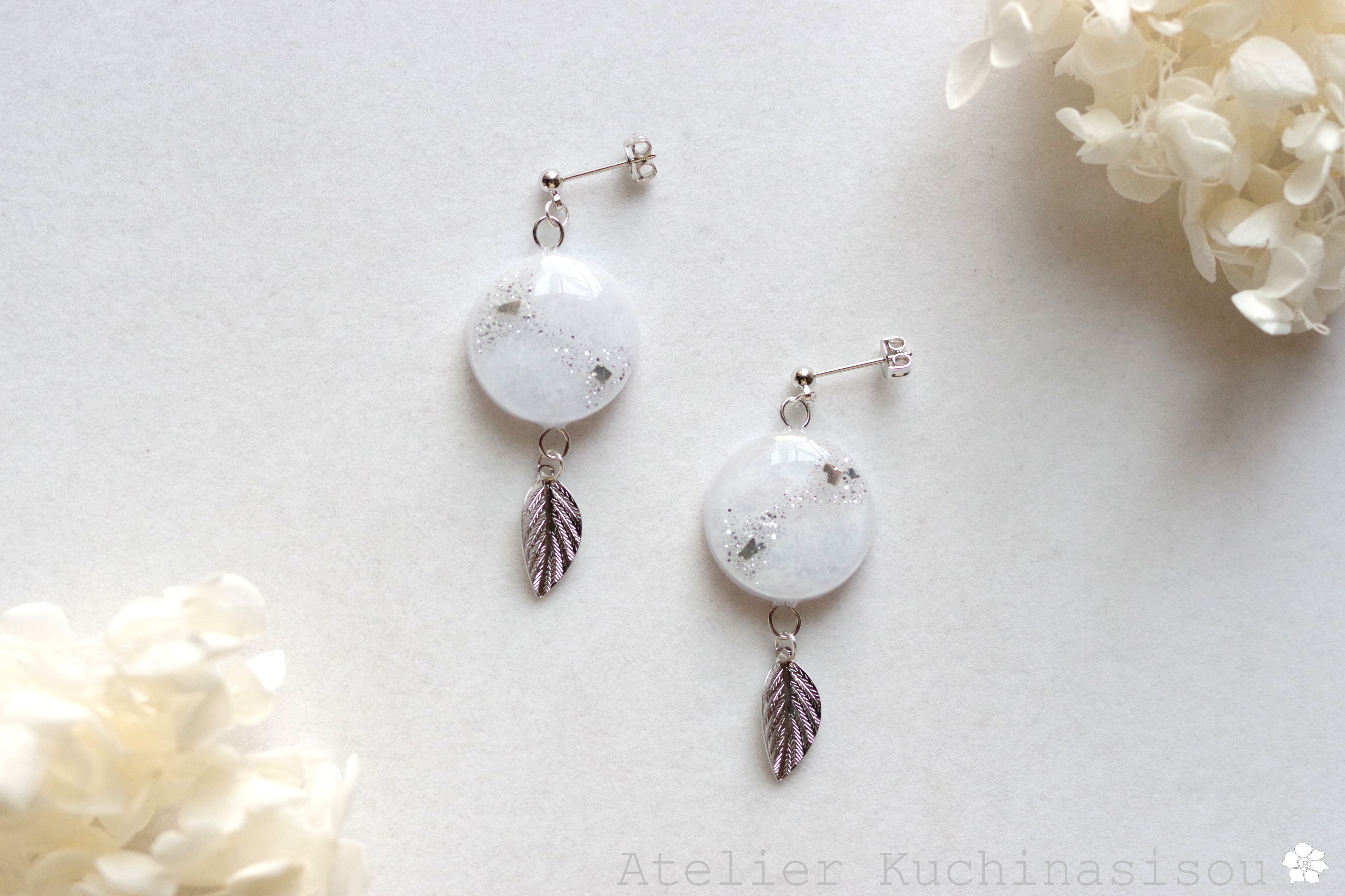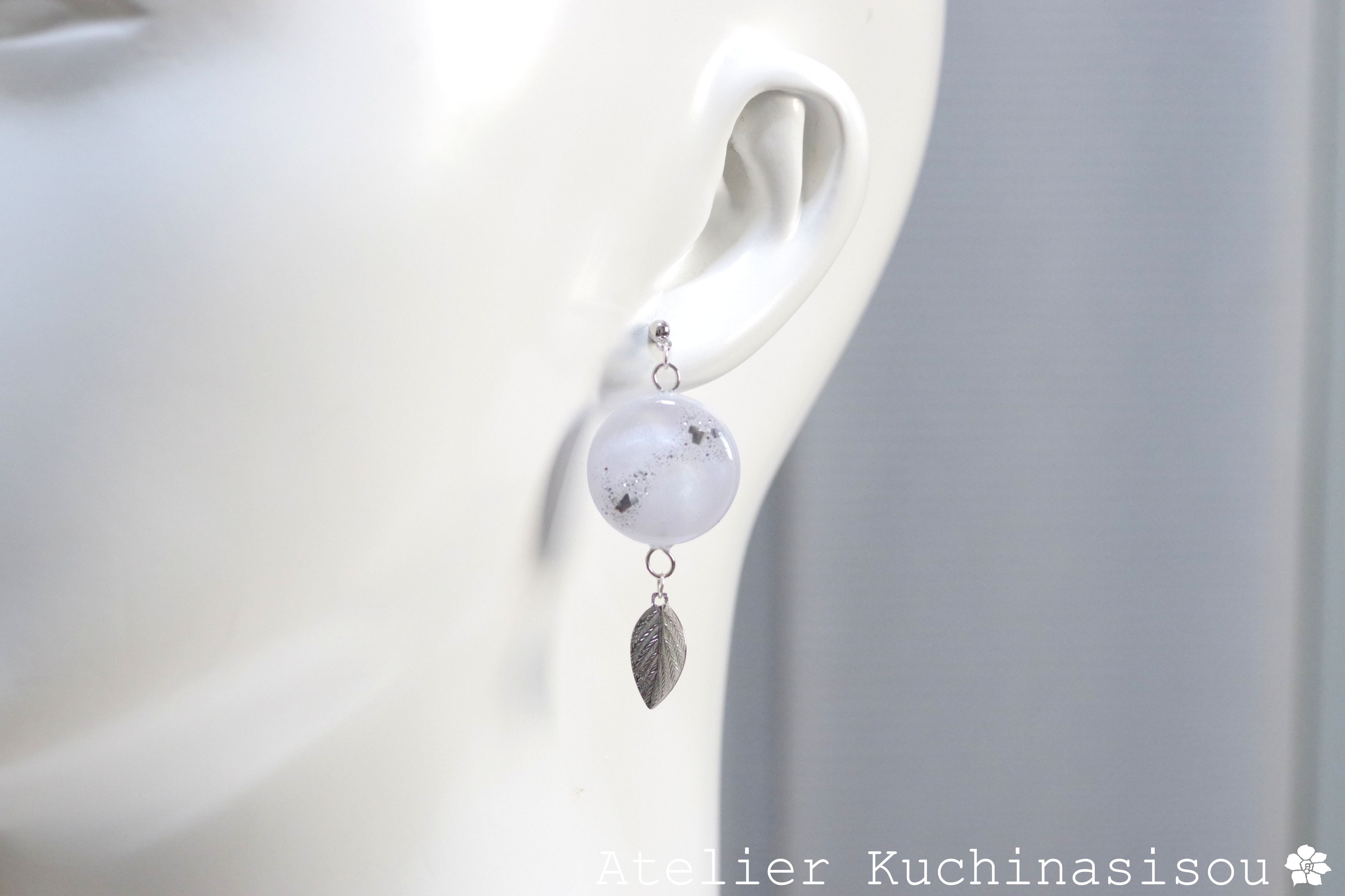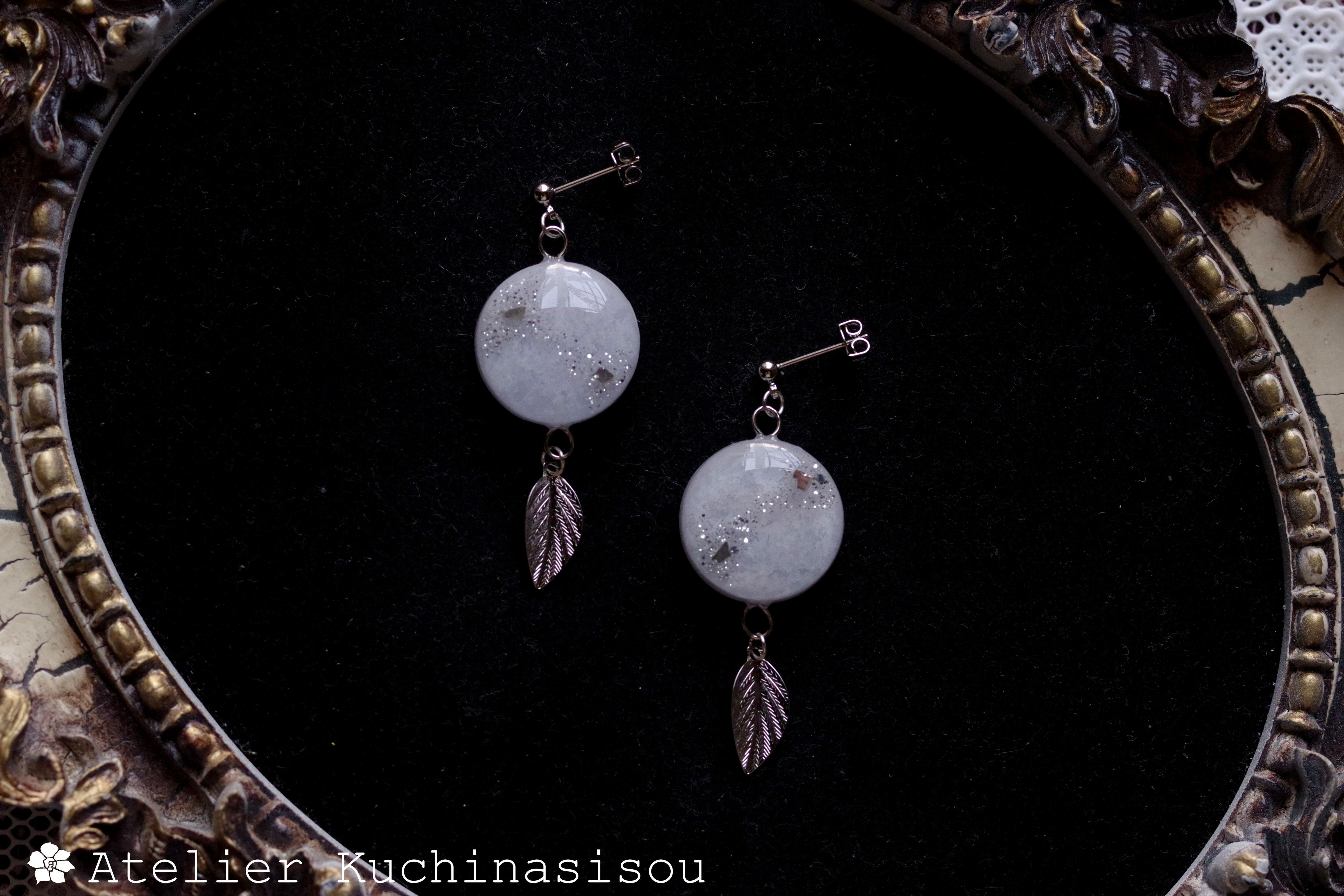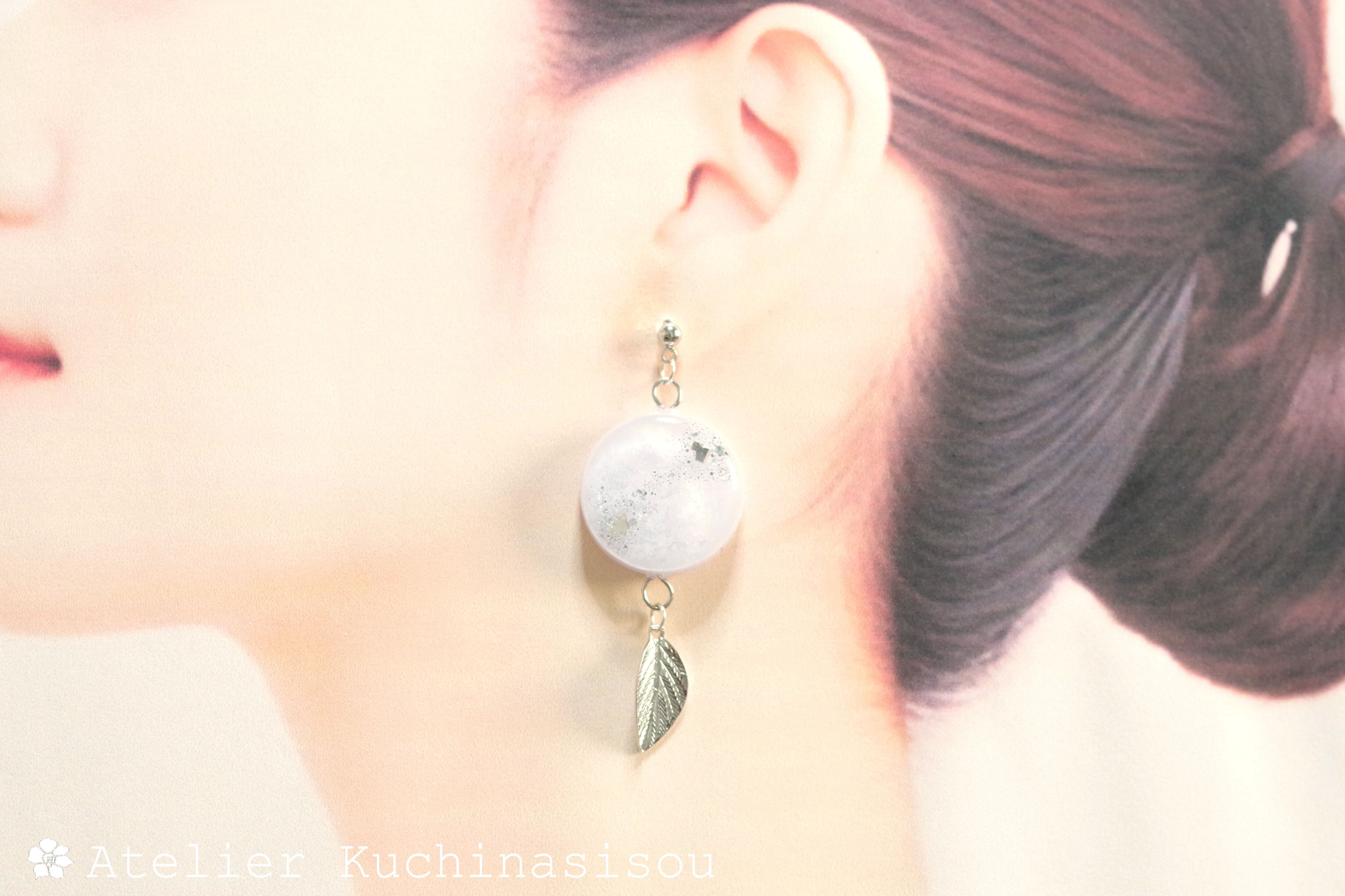 レジンアート ラウンドモチーフと葉っぱチャームのピアス〈在りし昔のことなれど〉