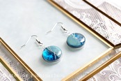 まるで水中をのぞき込んでいるかのような透明感のある片面と、マットなブルーの片面がバイカラーになったピアス。