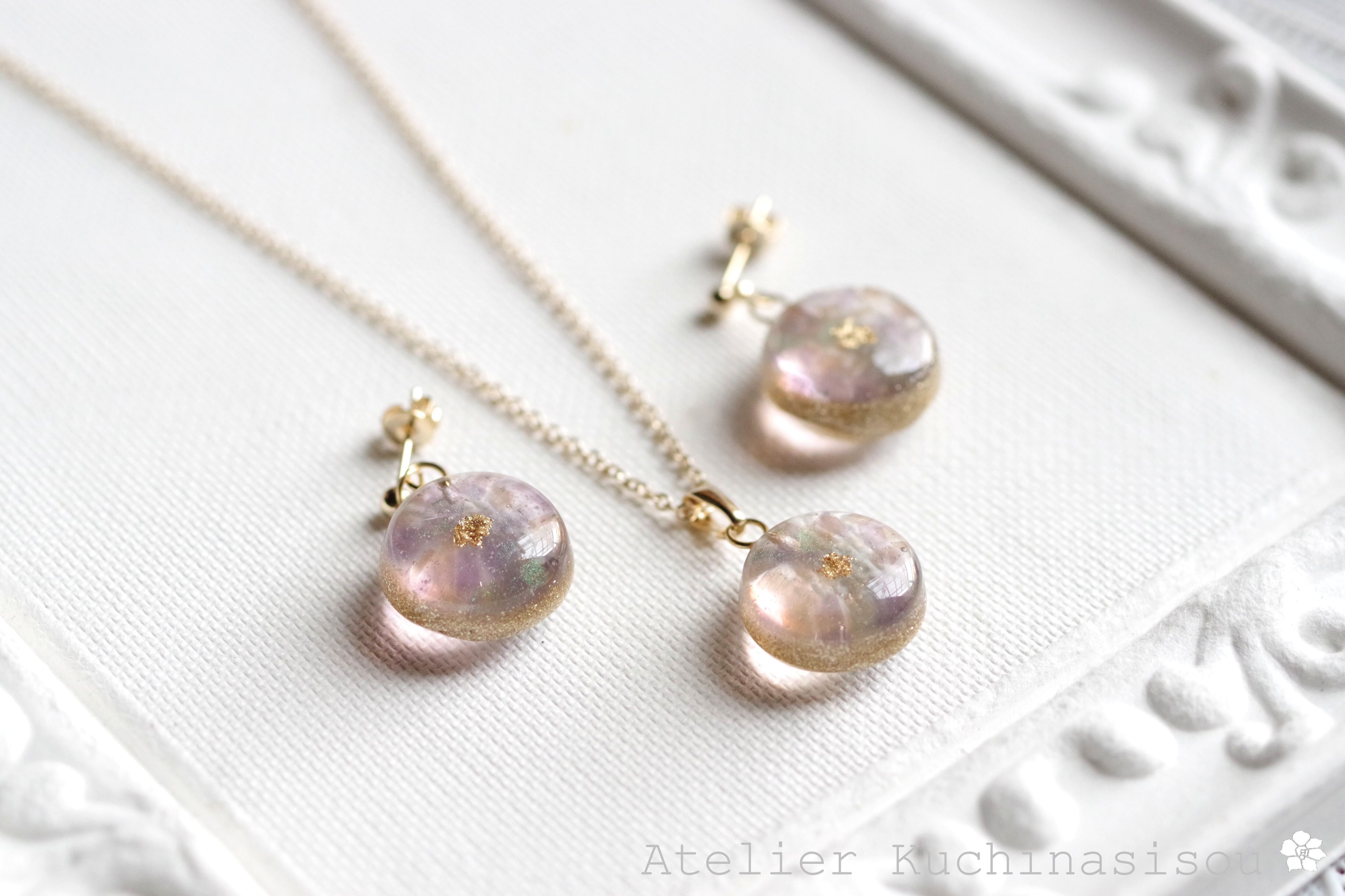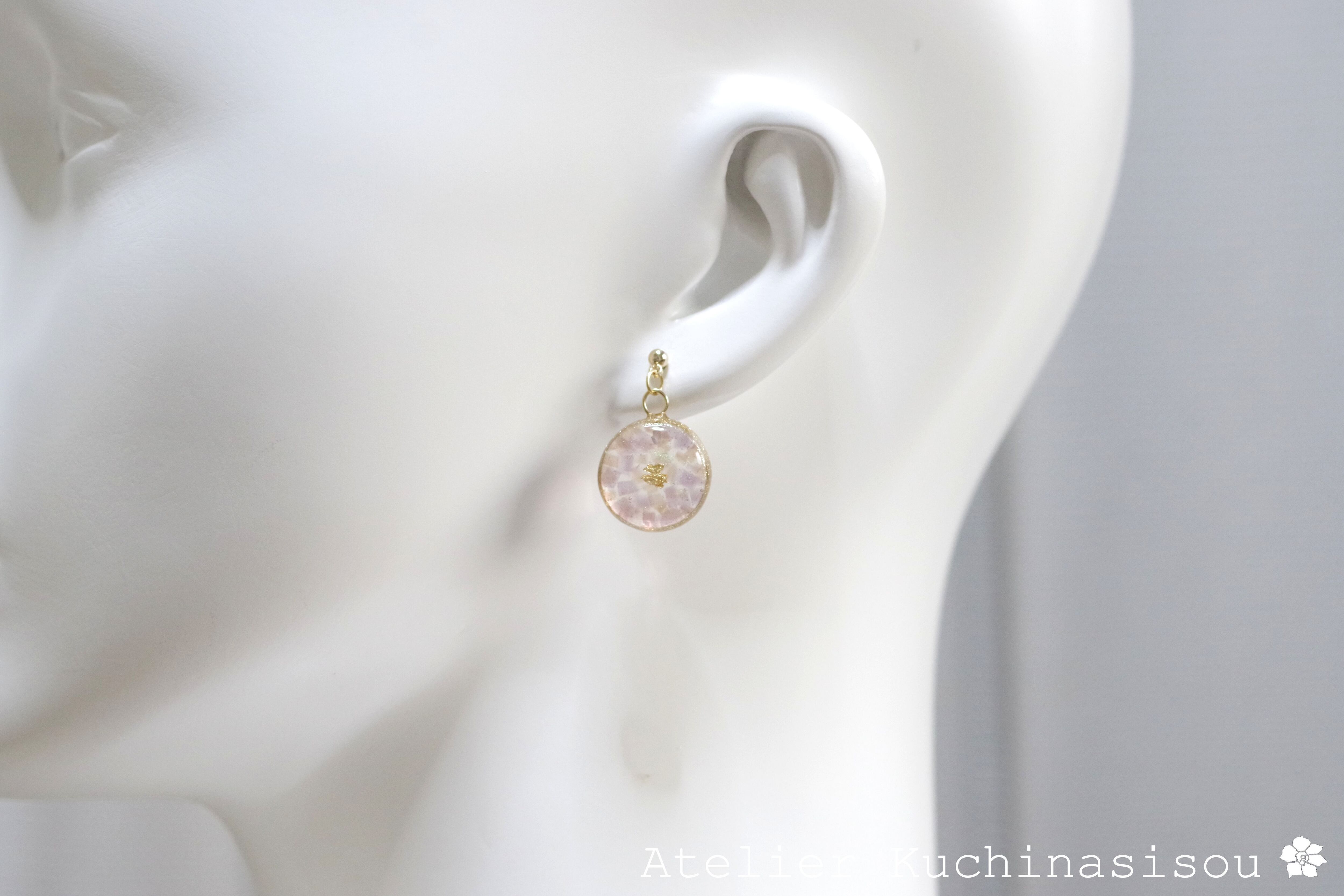 レジンでラウンドピアスを作りました♪