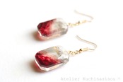 燃え上がるような深紅と金色の文字が華やかで存在感のあるピアス。(文字の内容は予告なく変更されることがあります)