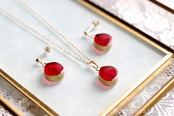 鮮やかなルビーレッドに側面のゴールドが映えるペンダント。