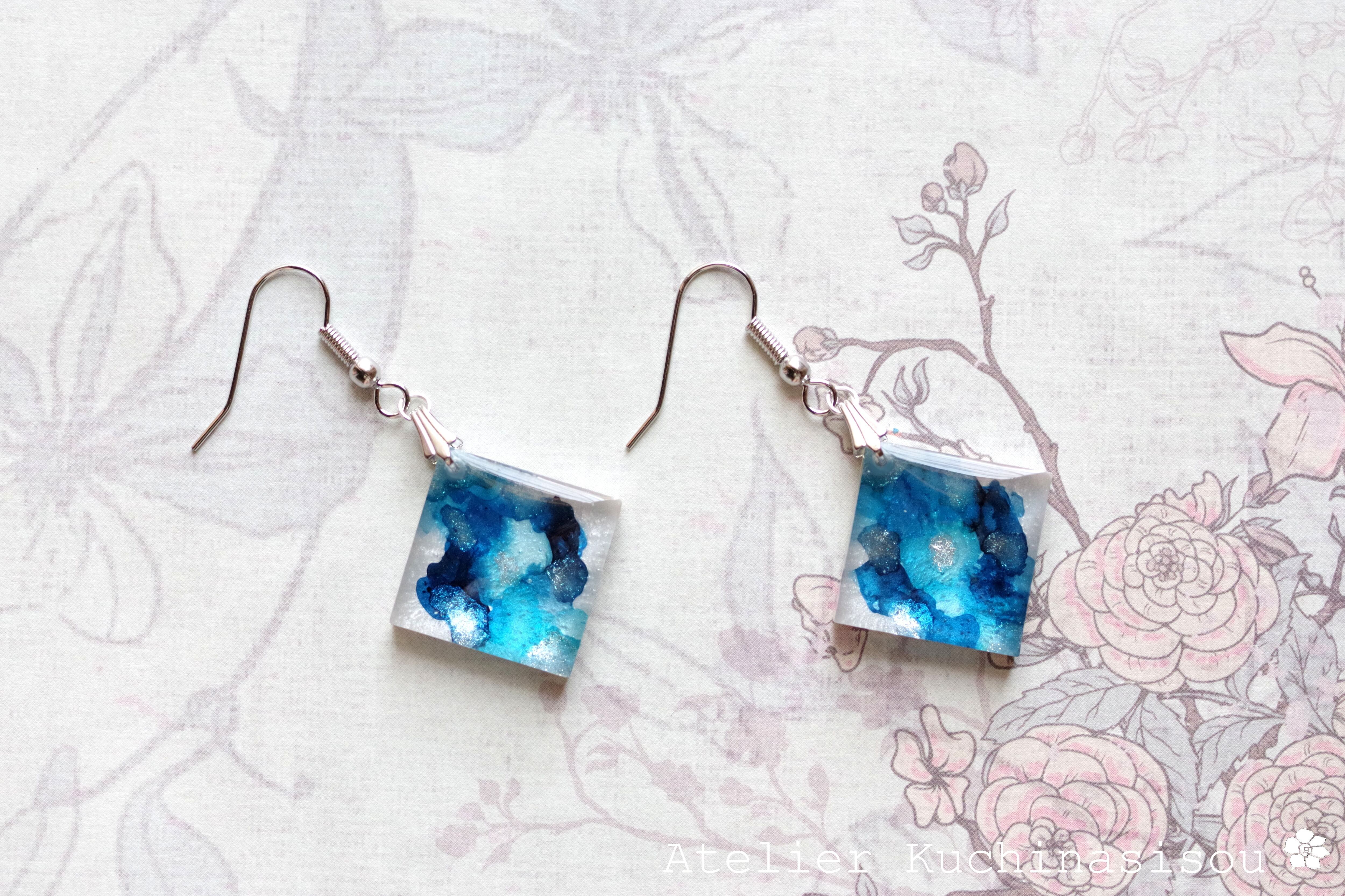数種類の青色が夏への予感をかきたてる、清々しく爽やかなピアス。