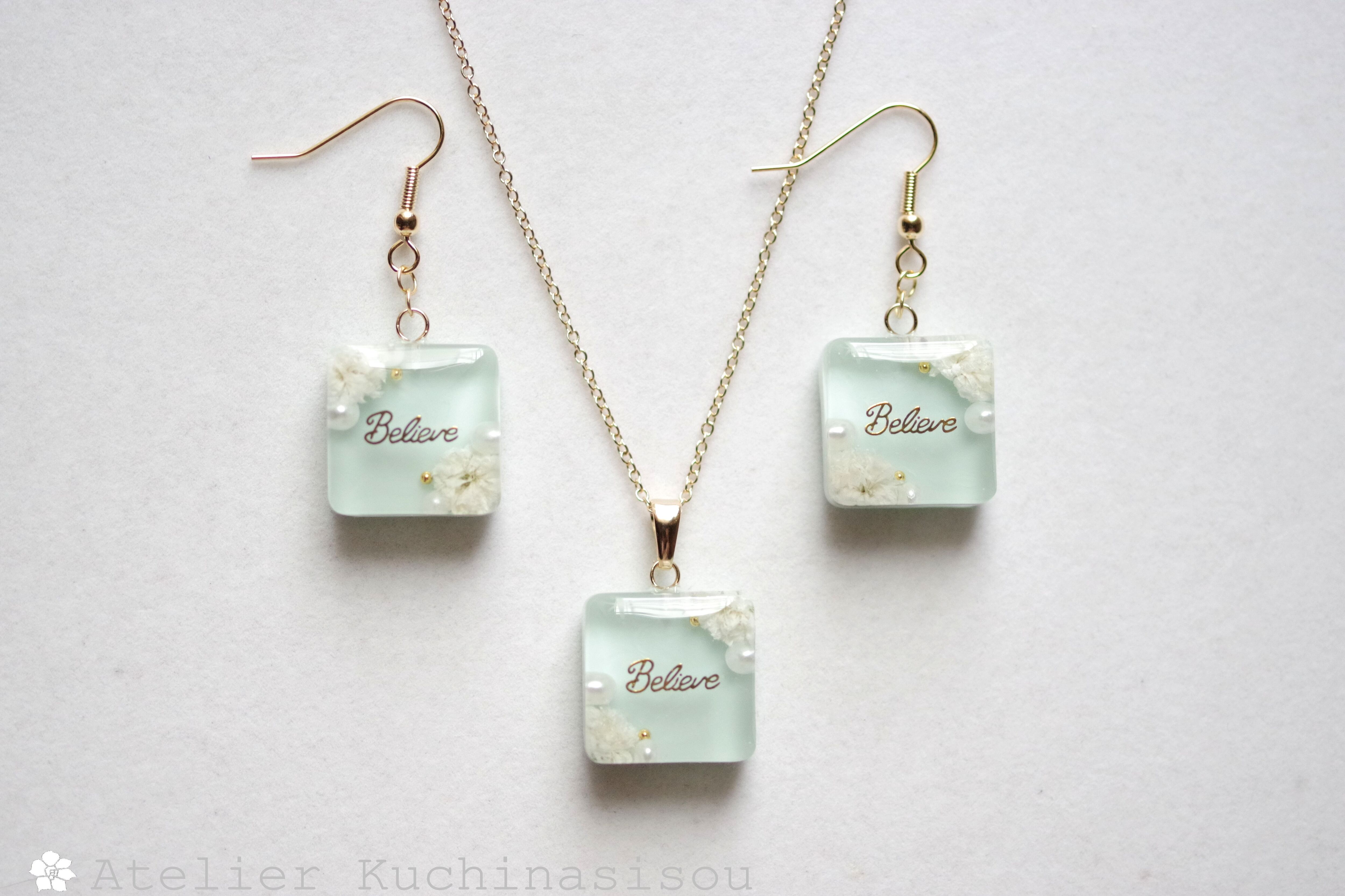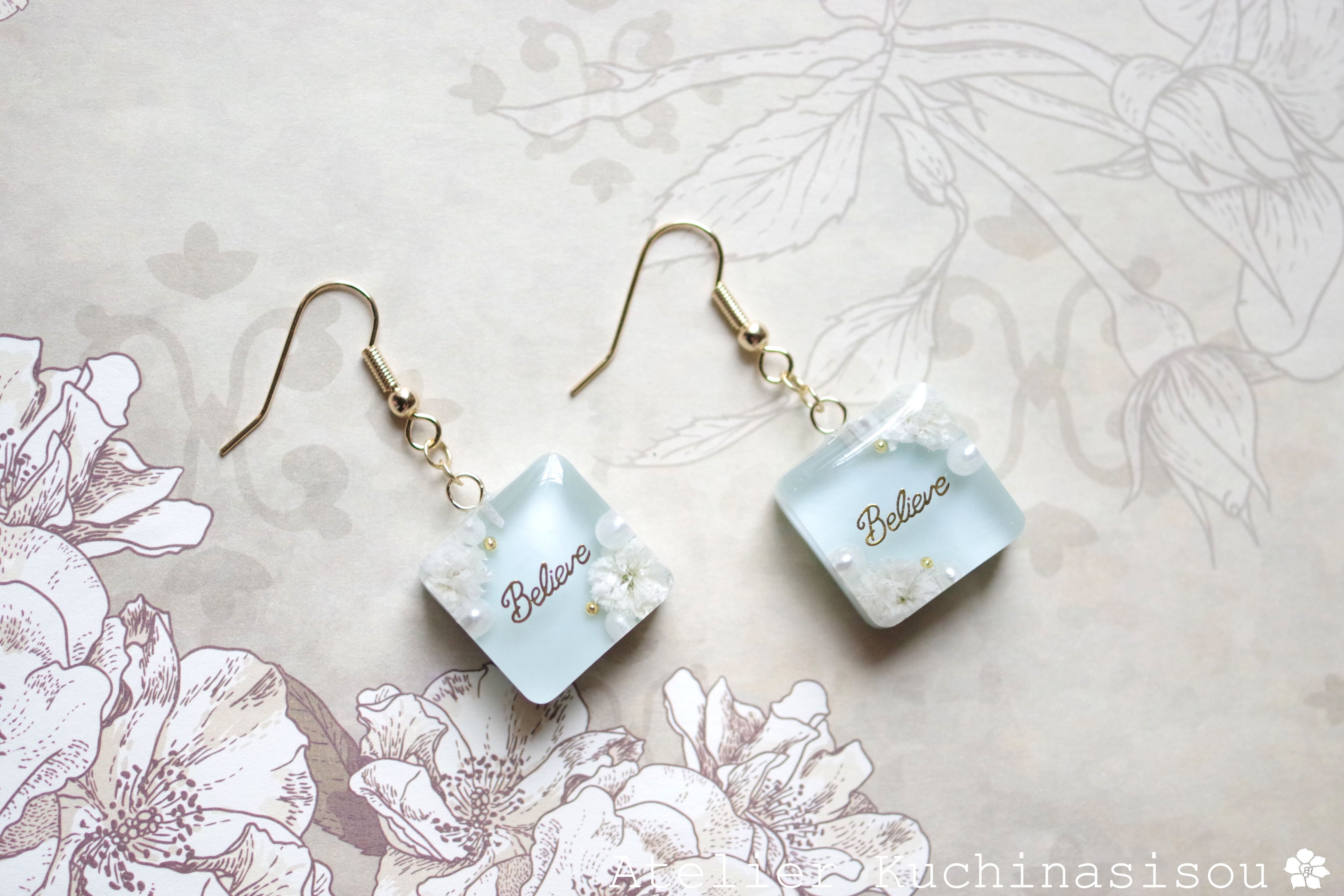 レジンでスクエアピアスを作りました♪