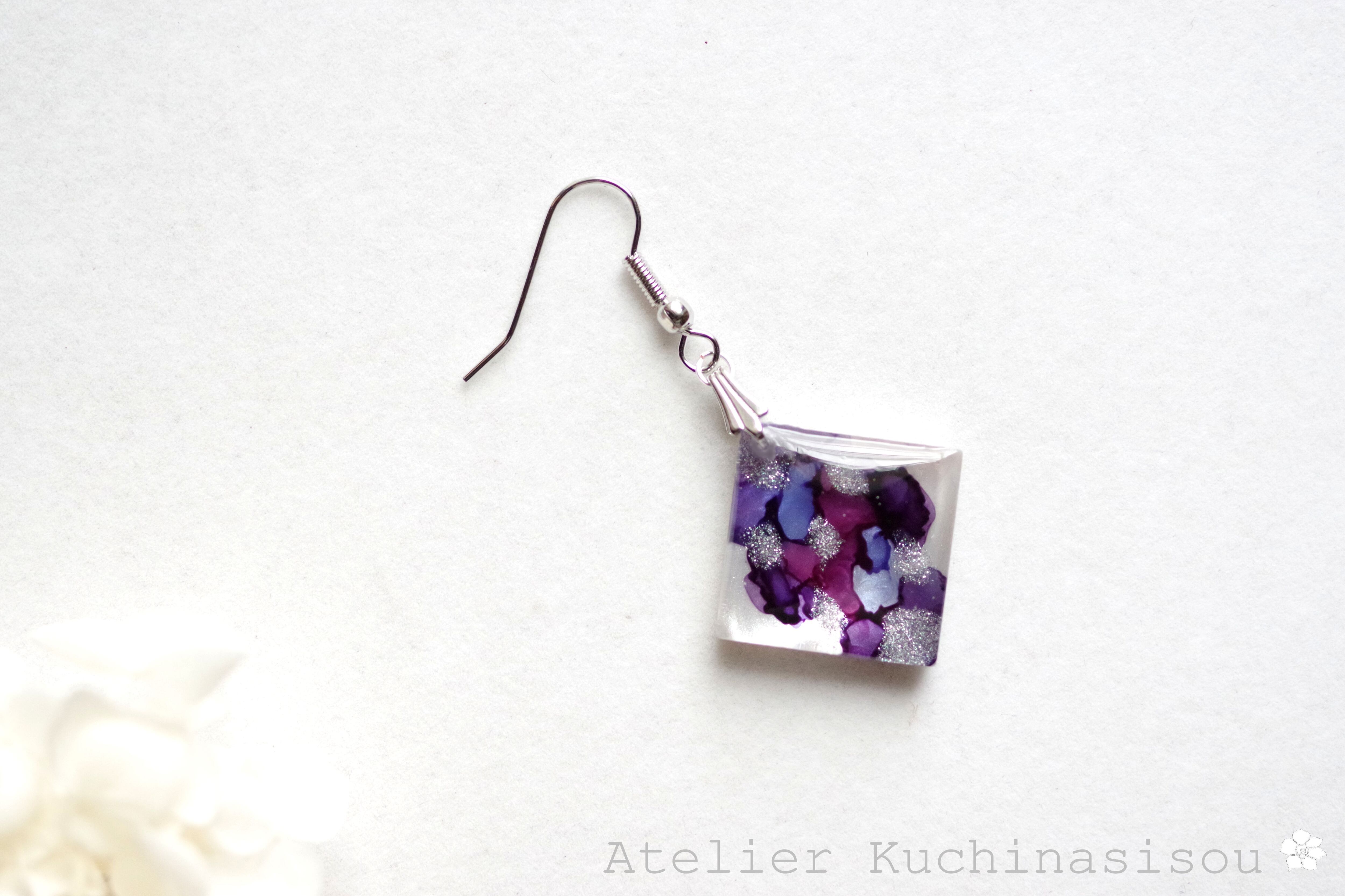 数種類の紫色が秋への予感をかきたてる、妖艶でありながら淑やかなピアス。