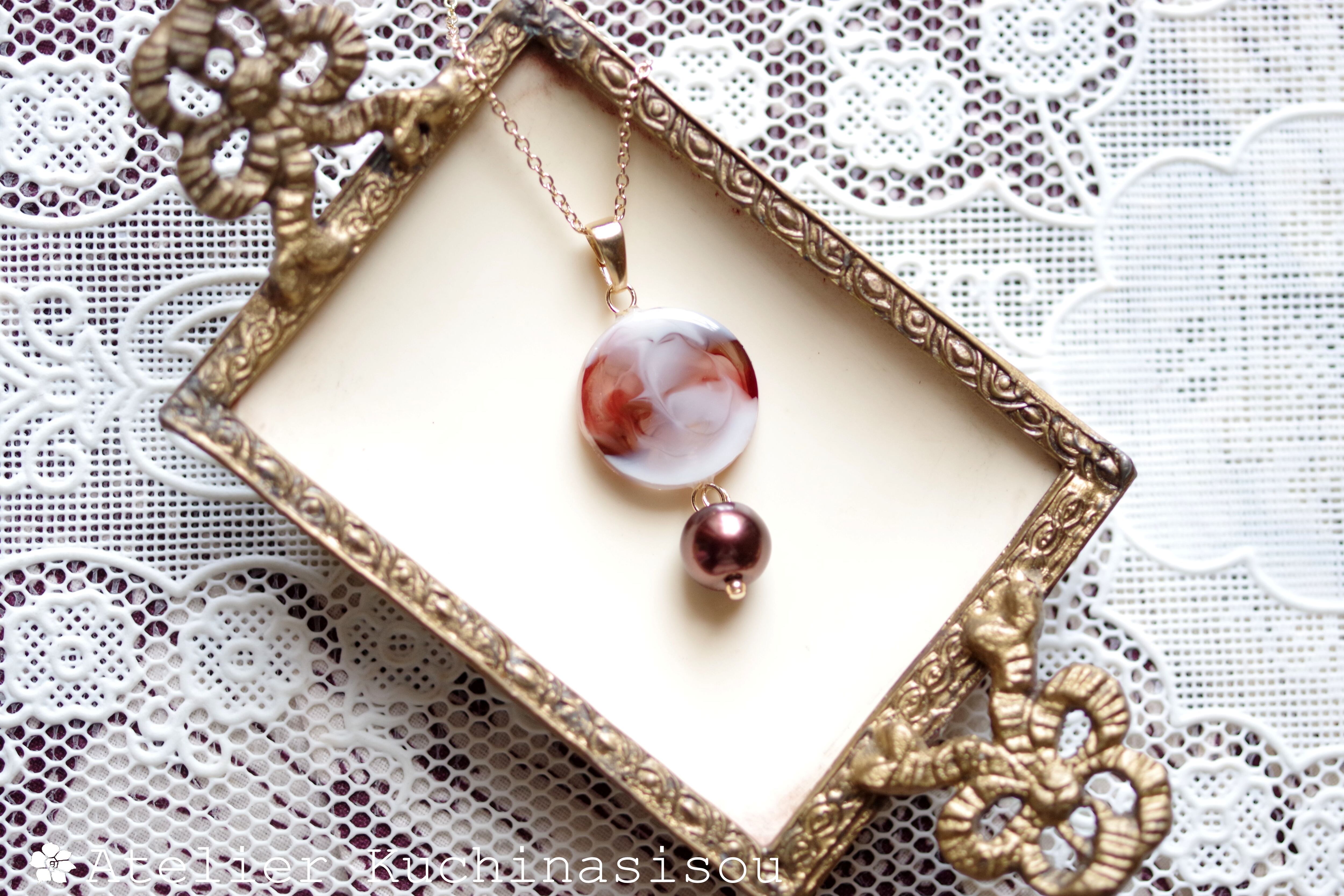 二種類のブラウンとホワイトが優美なマーブル模様を描くペンダント。
