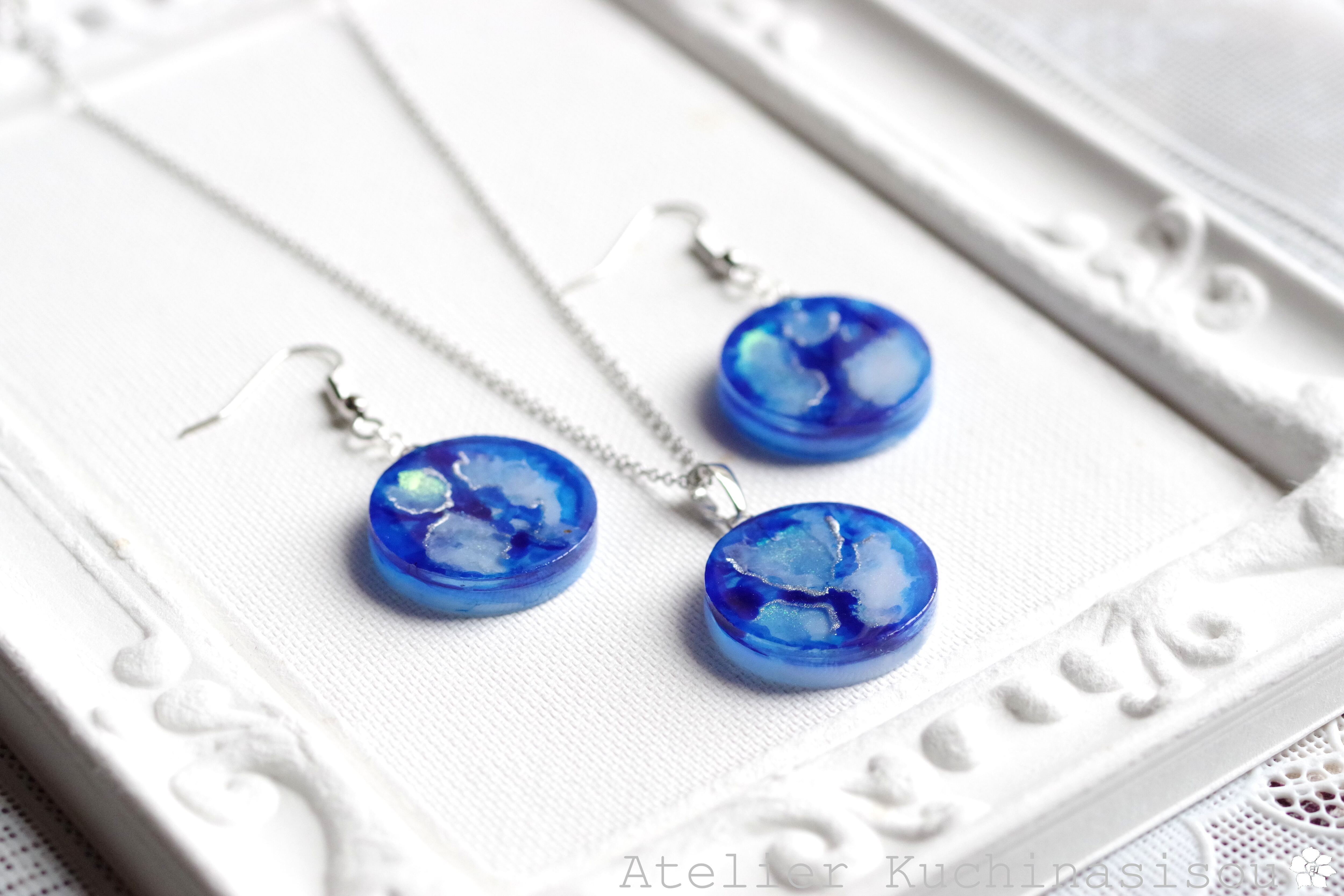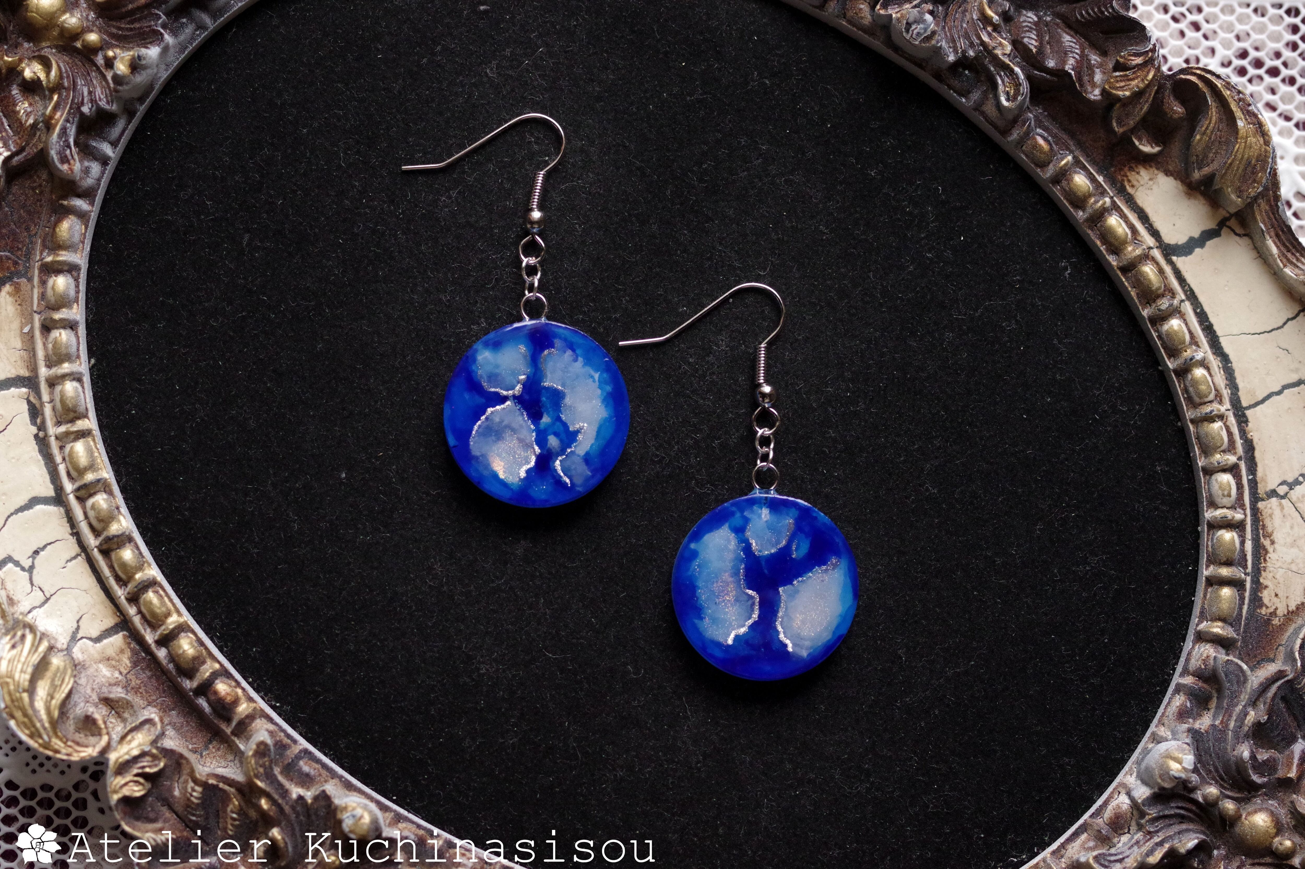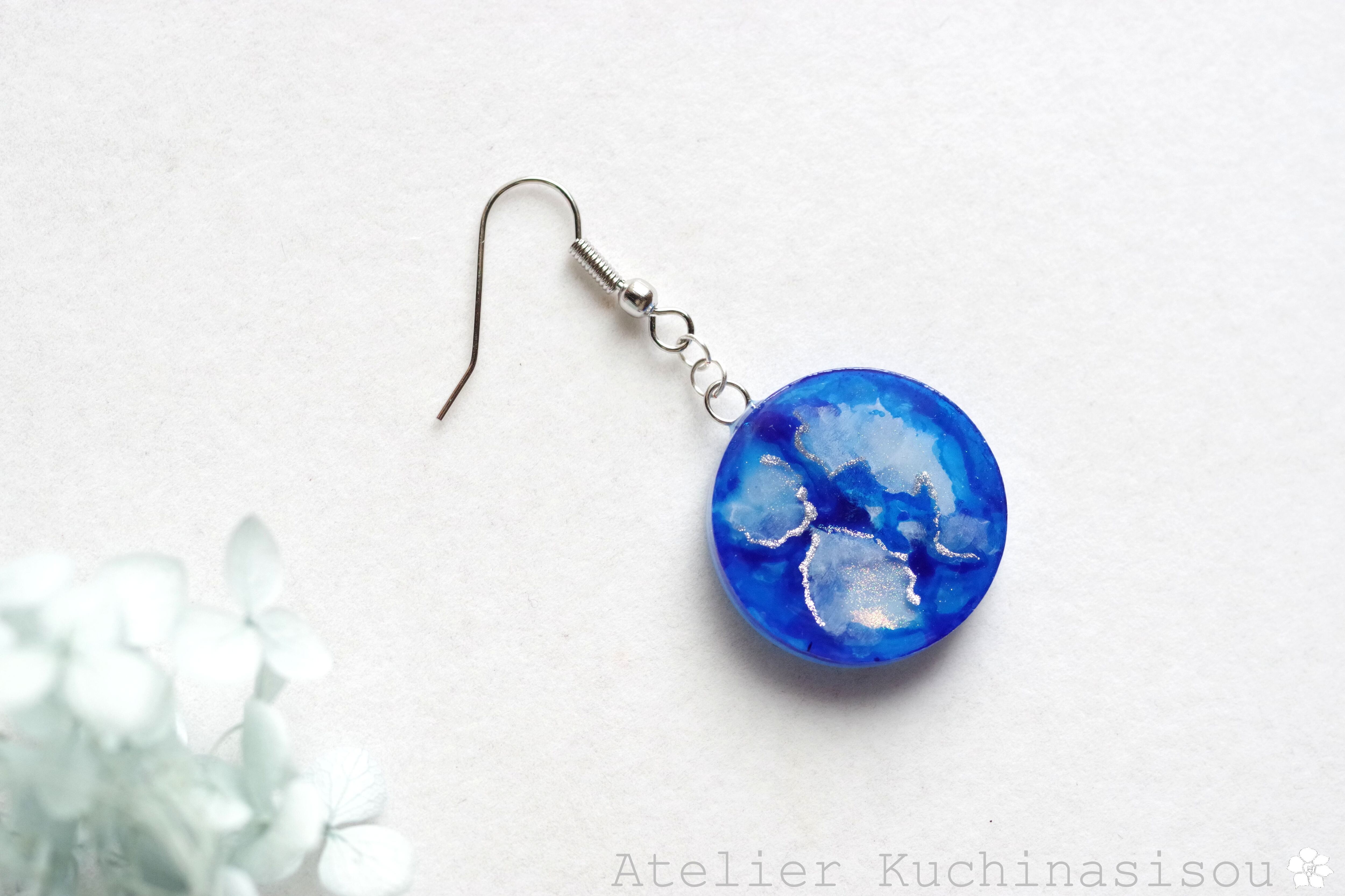 青と白の二色が織りなす、月面の模様を思わせるデザインが優雅でクラシカルなピアス。