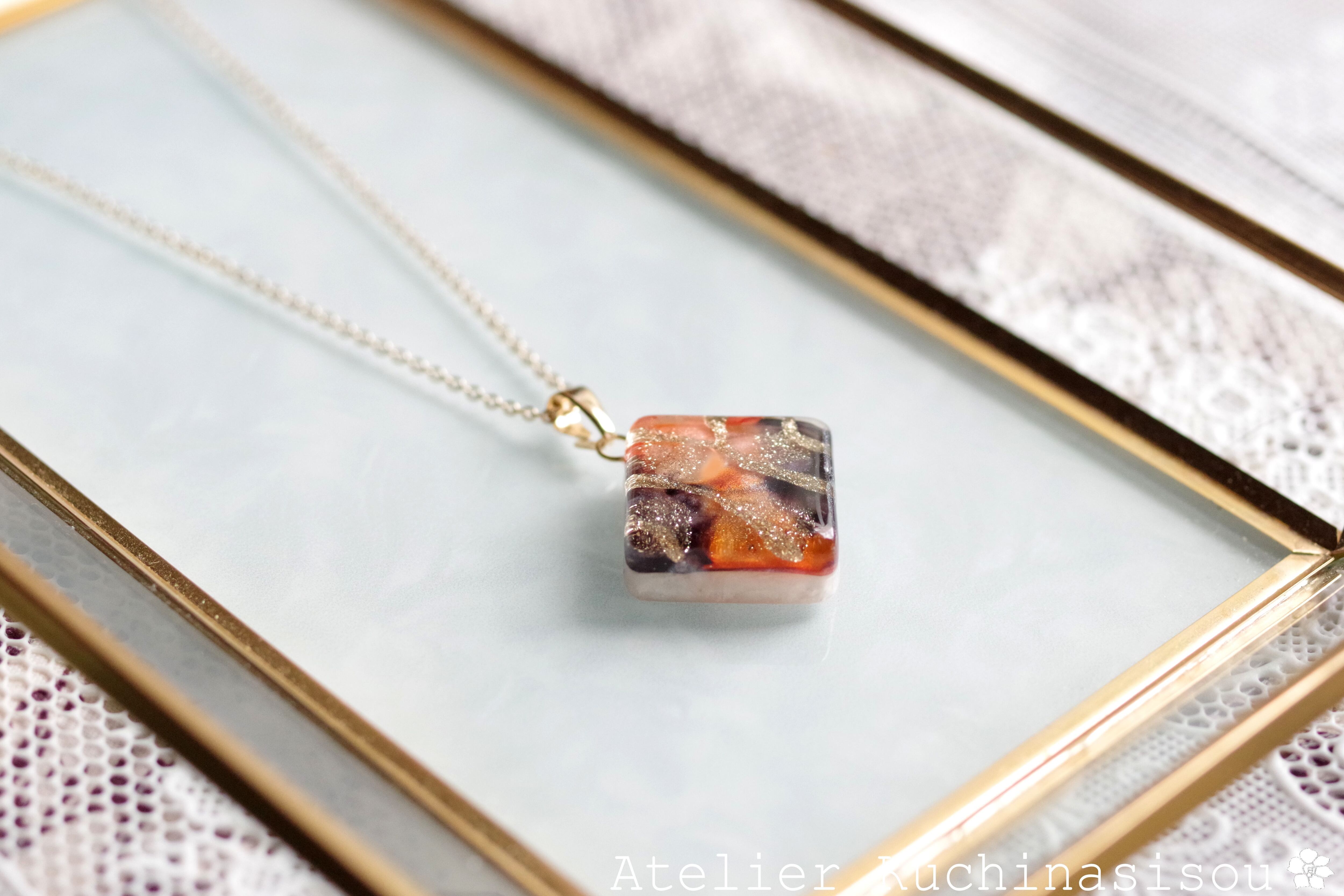 レジンでスクエアペンダントを作りました♪
