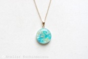 数種類のブルーと光沢のあるパールホワイトが美しい模様を描いている、爽やかで瑞々しいペンダント。