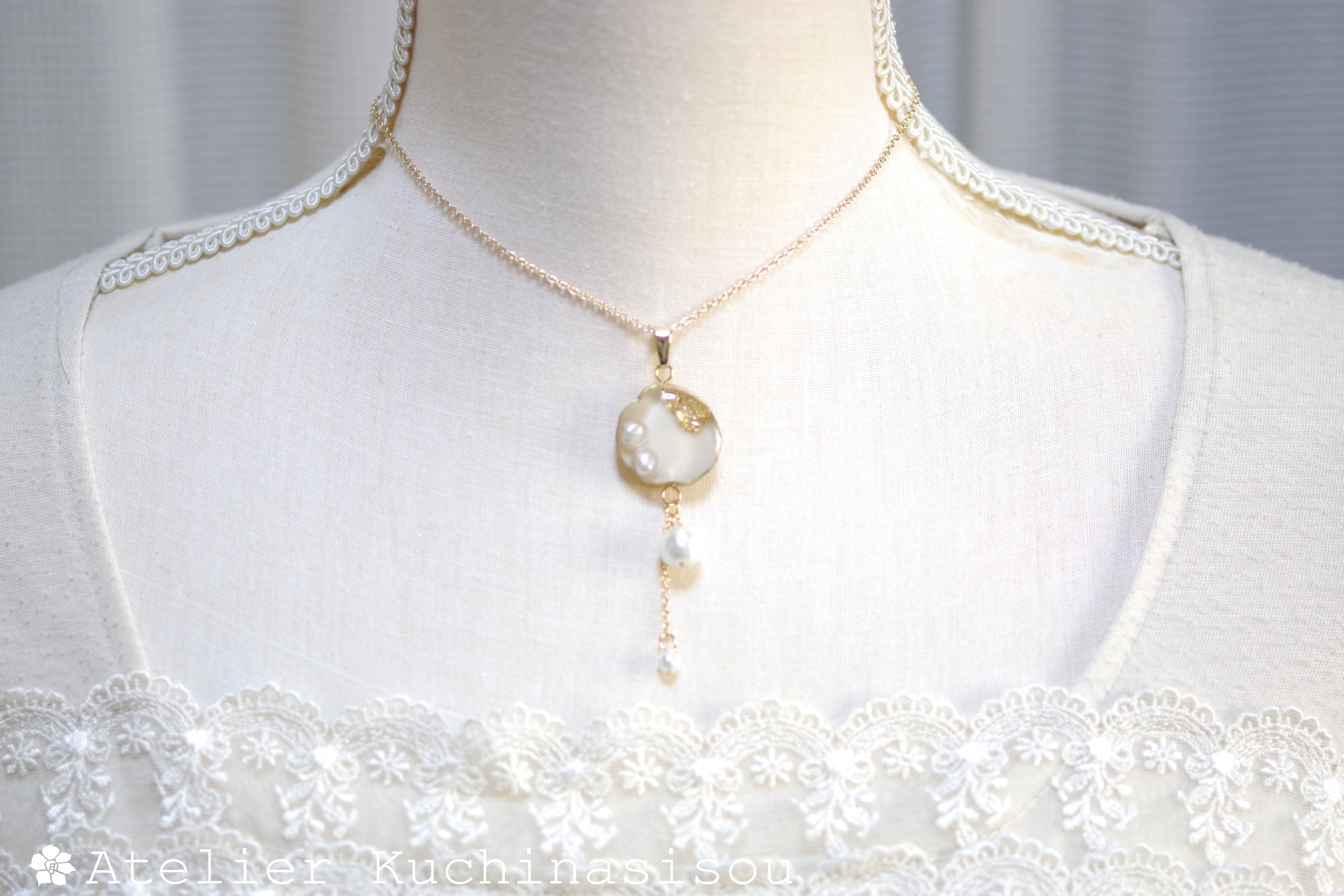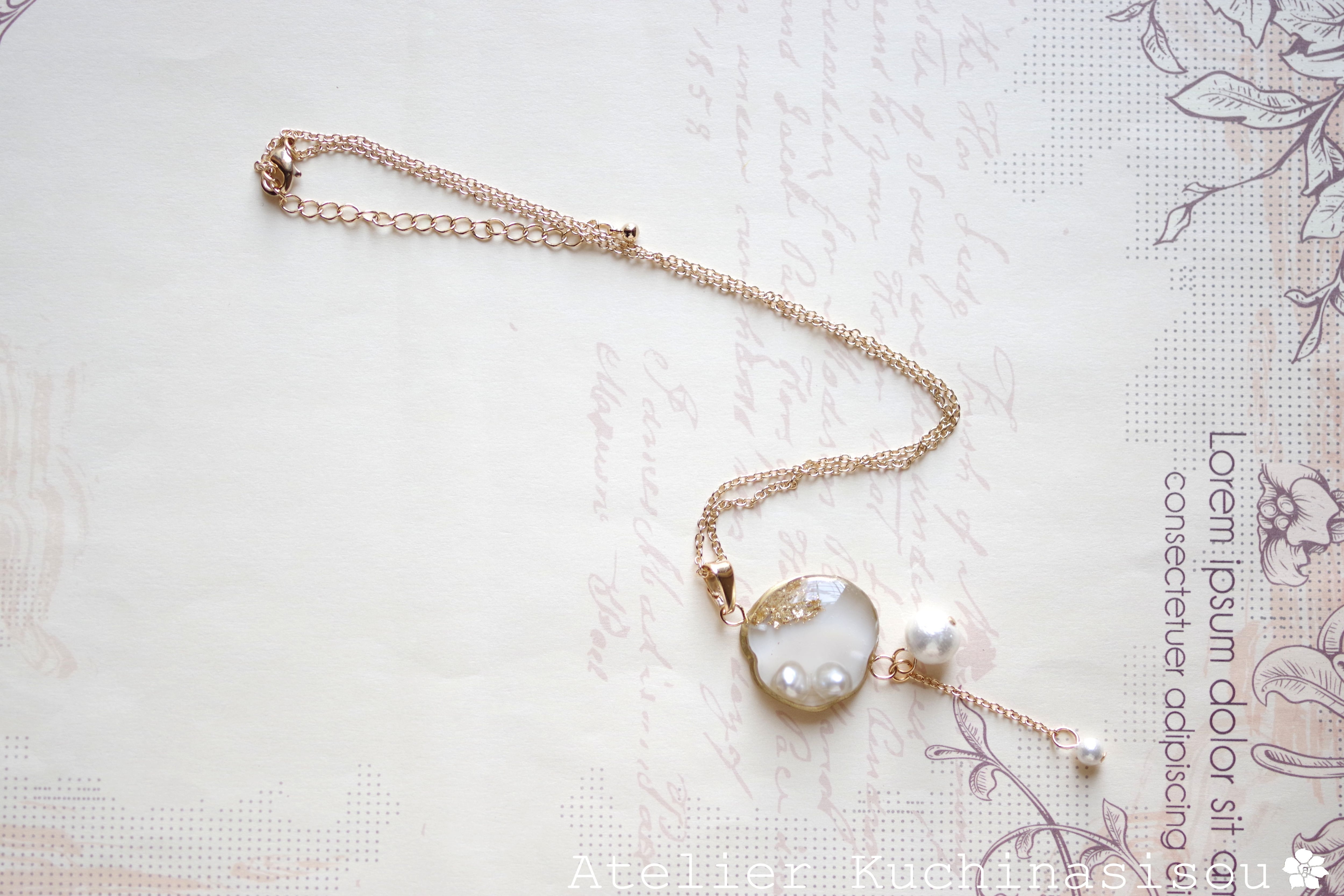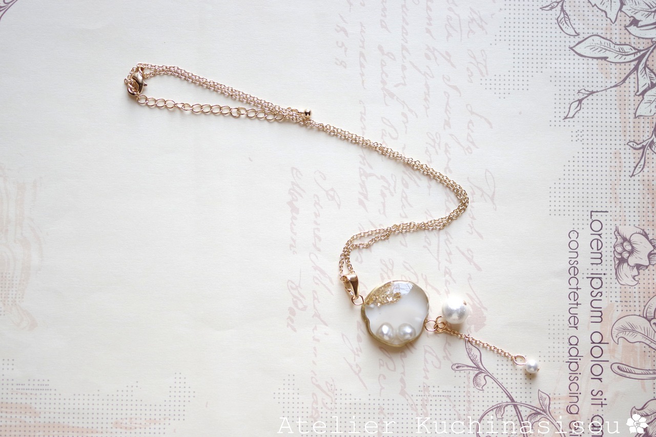 仄かに光を放っているような淡いクリーム色のレジンが秋にぴったり。