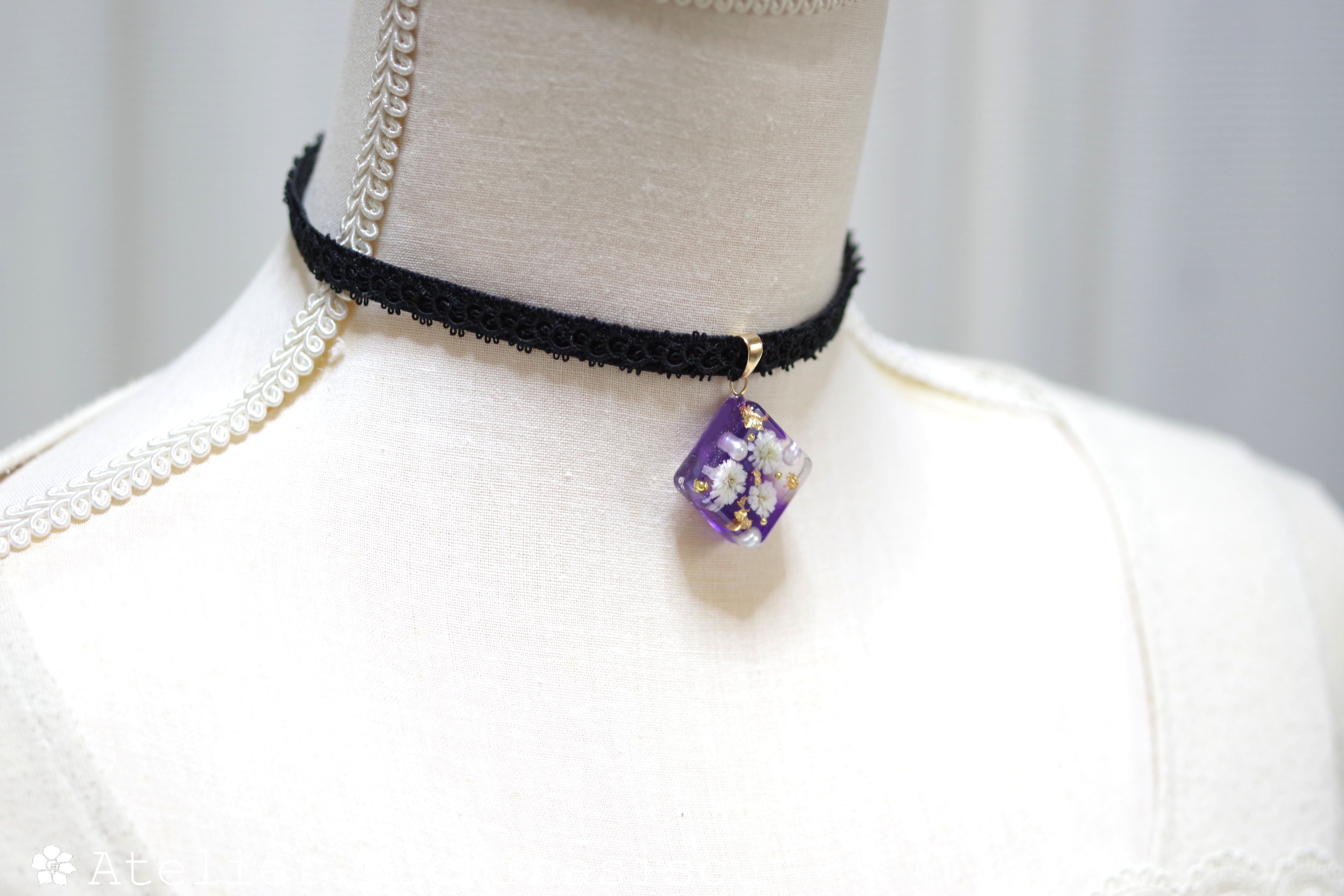 レジンでスクエアモチーフのチョーカーを作りました♪