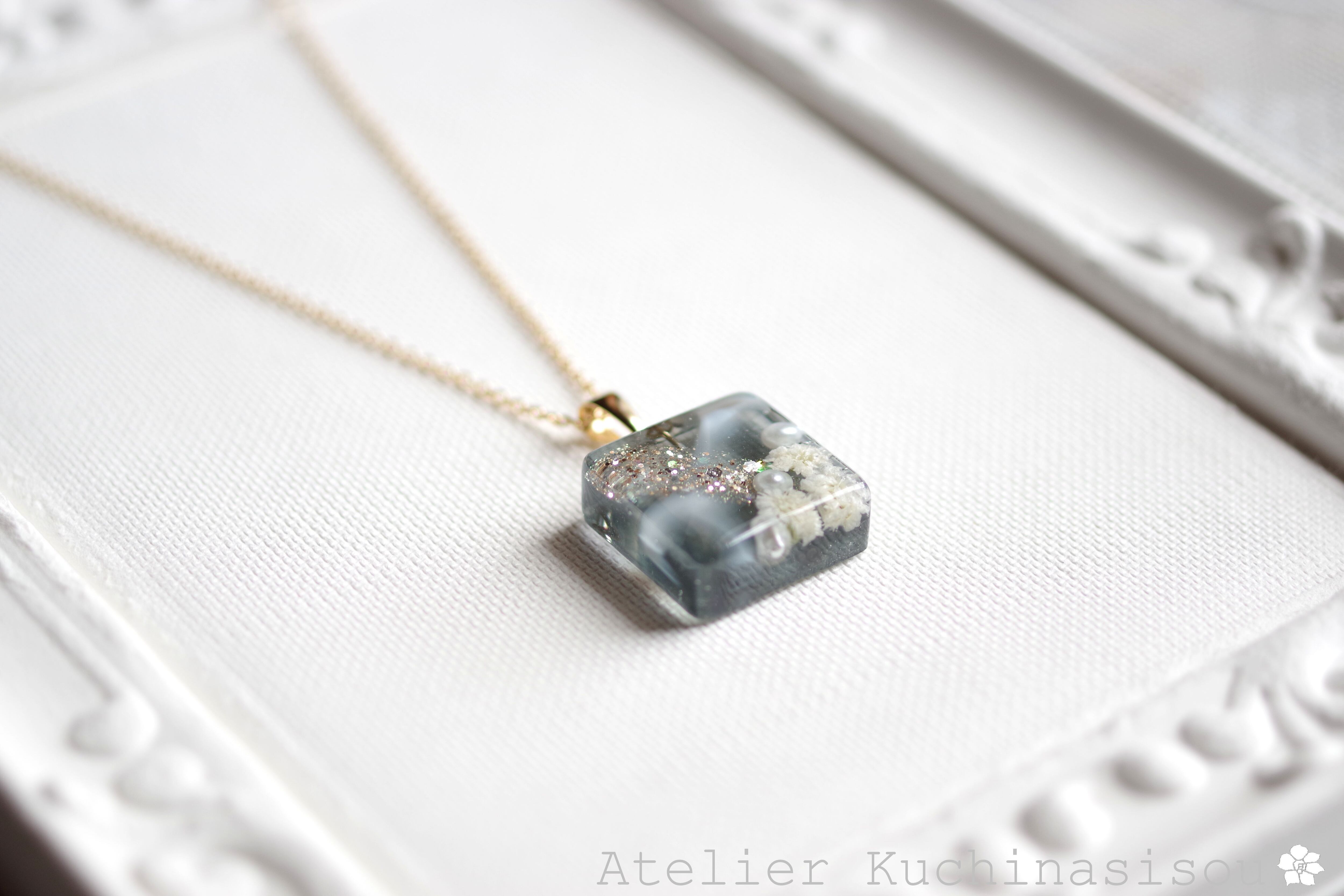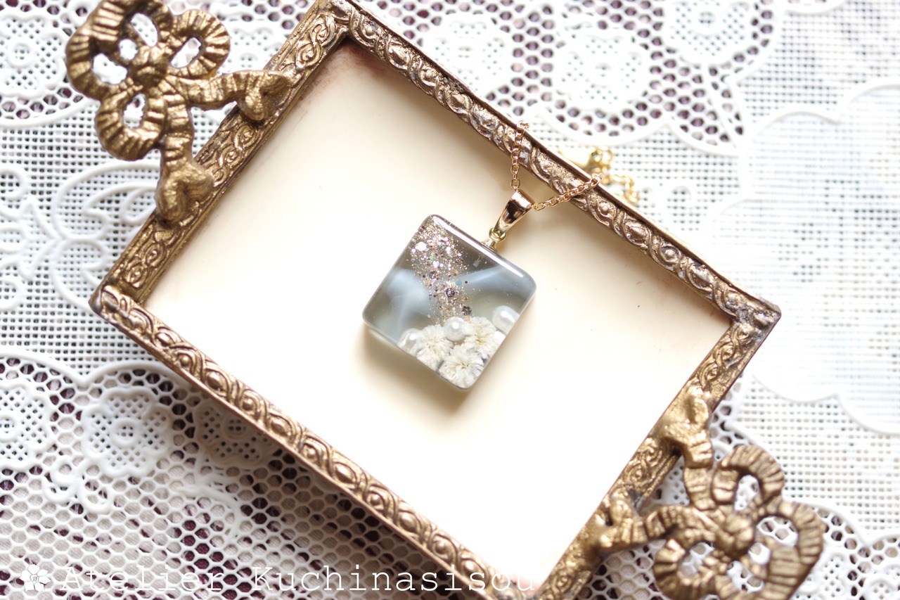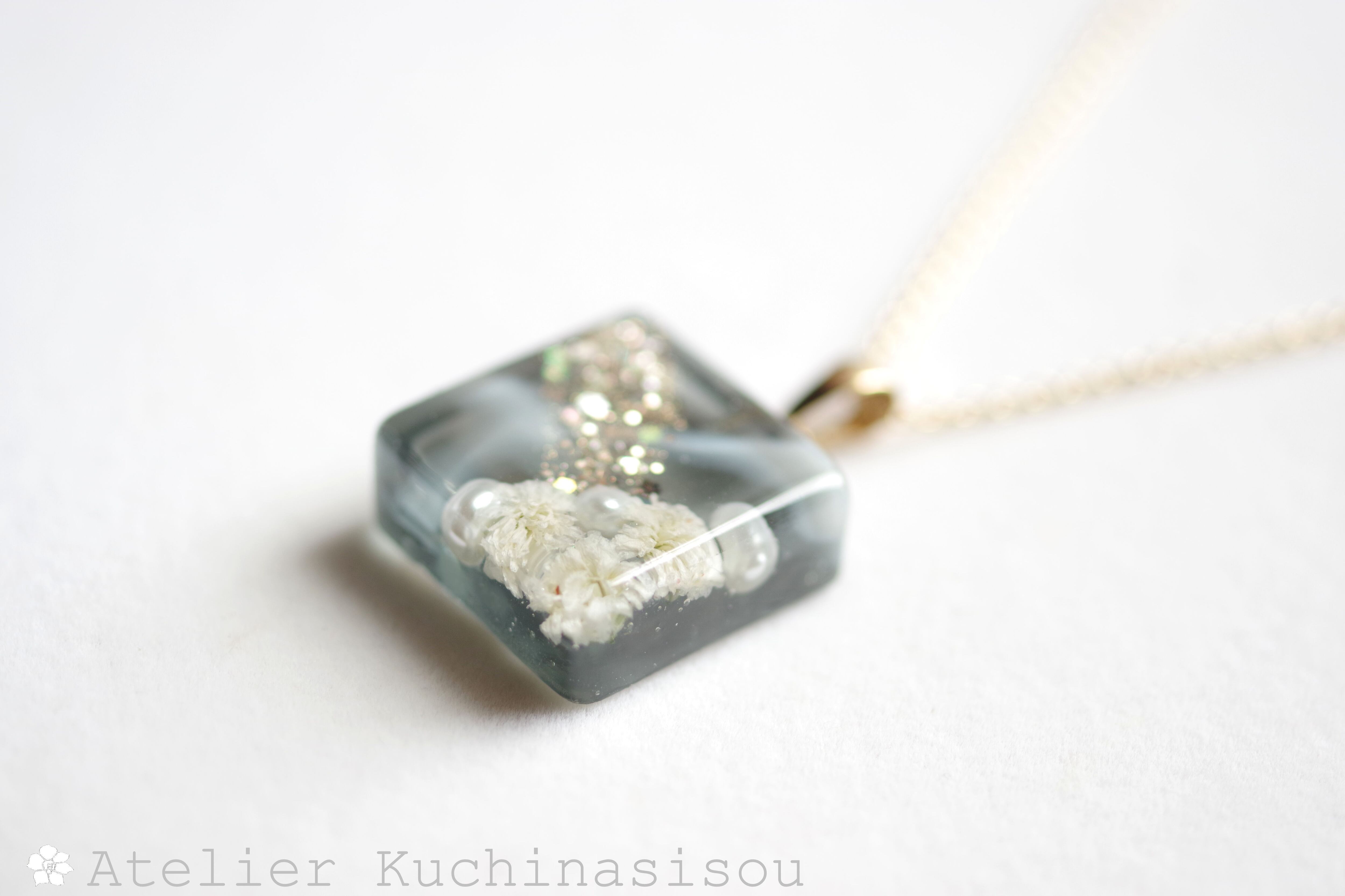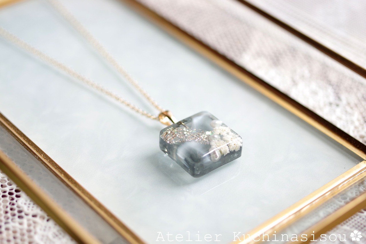 【受注製作】レジンアート スクエアペンダント〈明るい夜〉