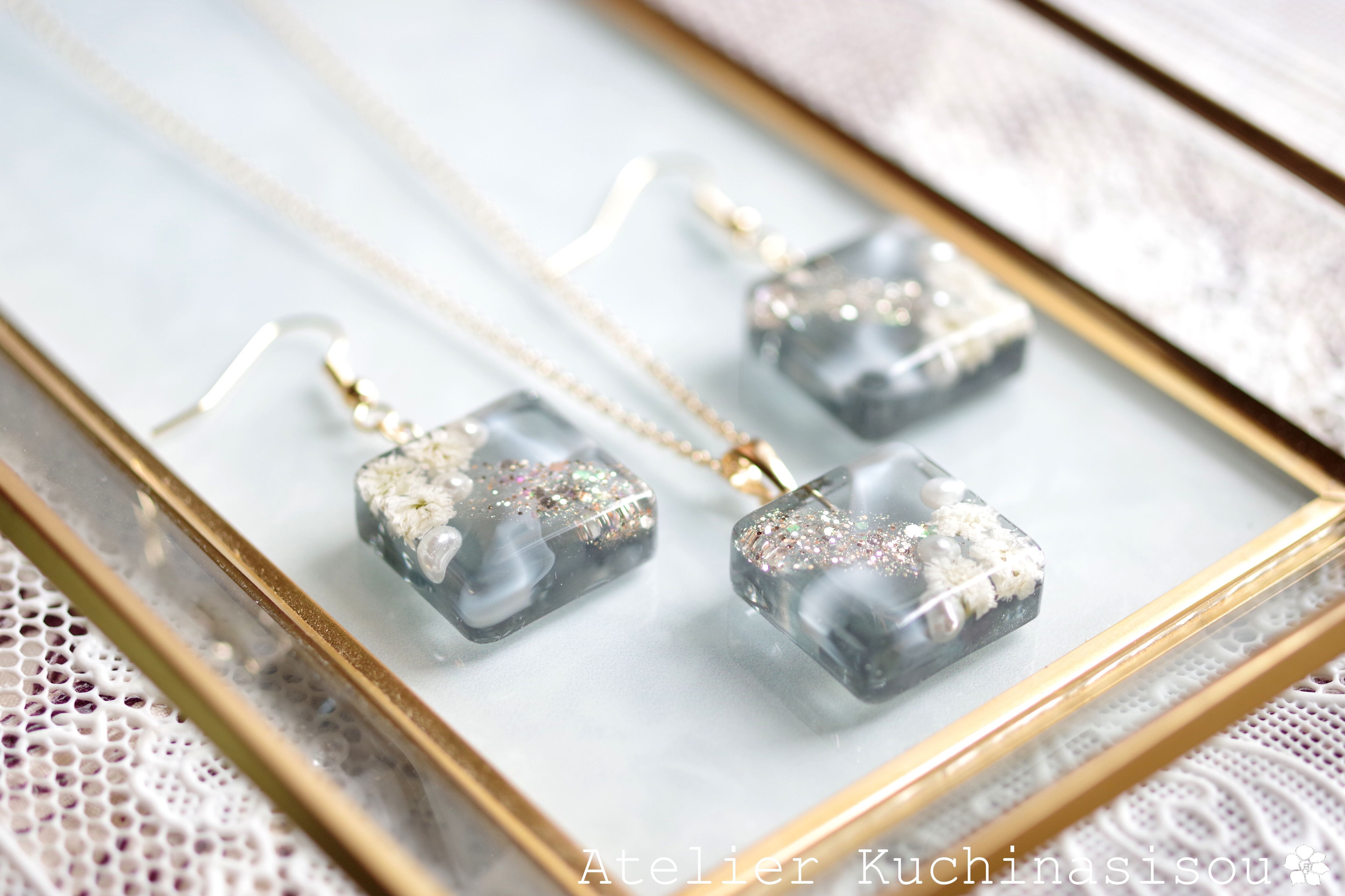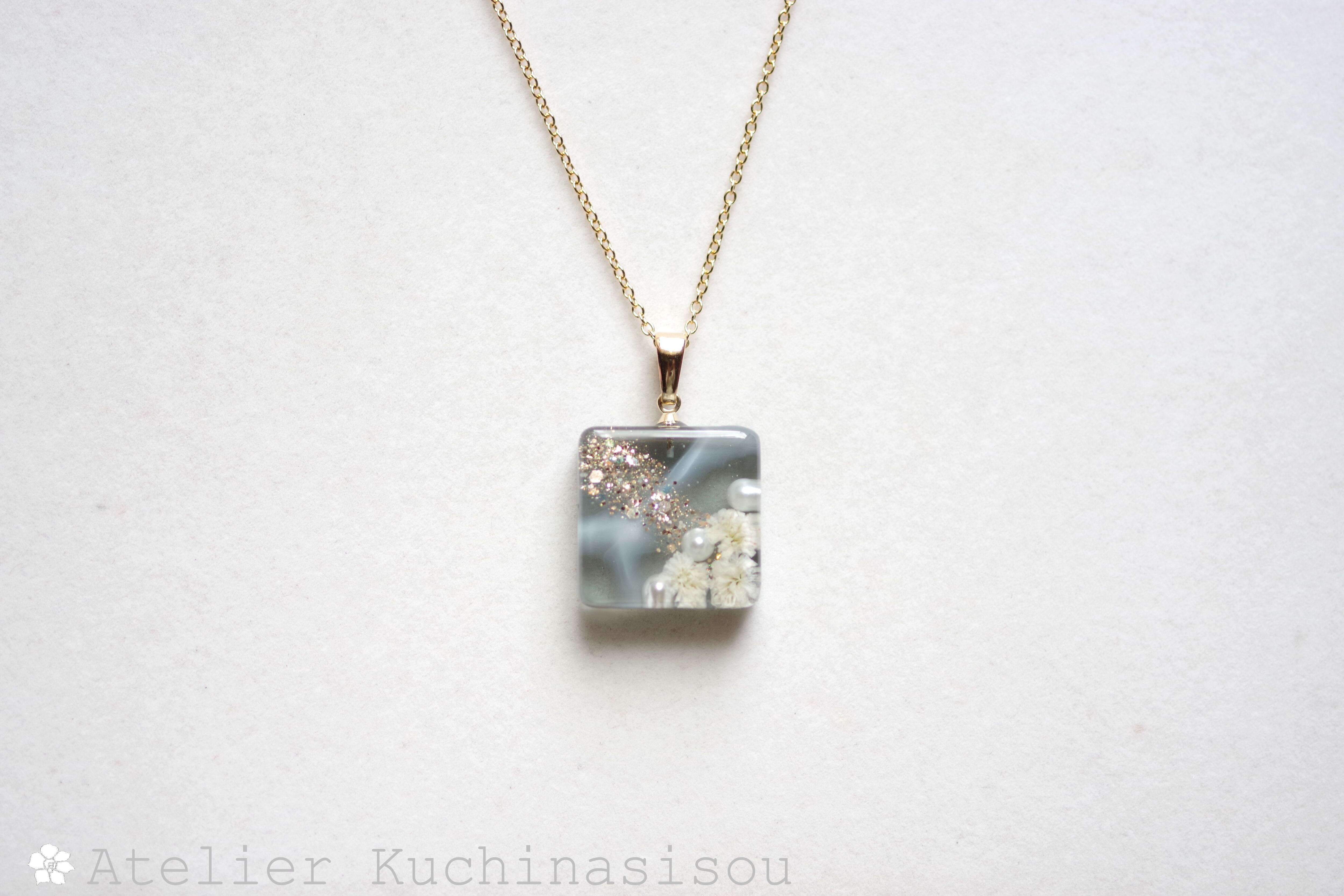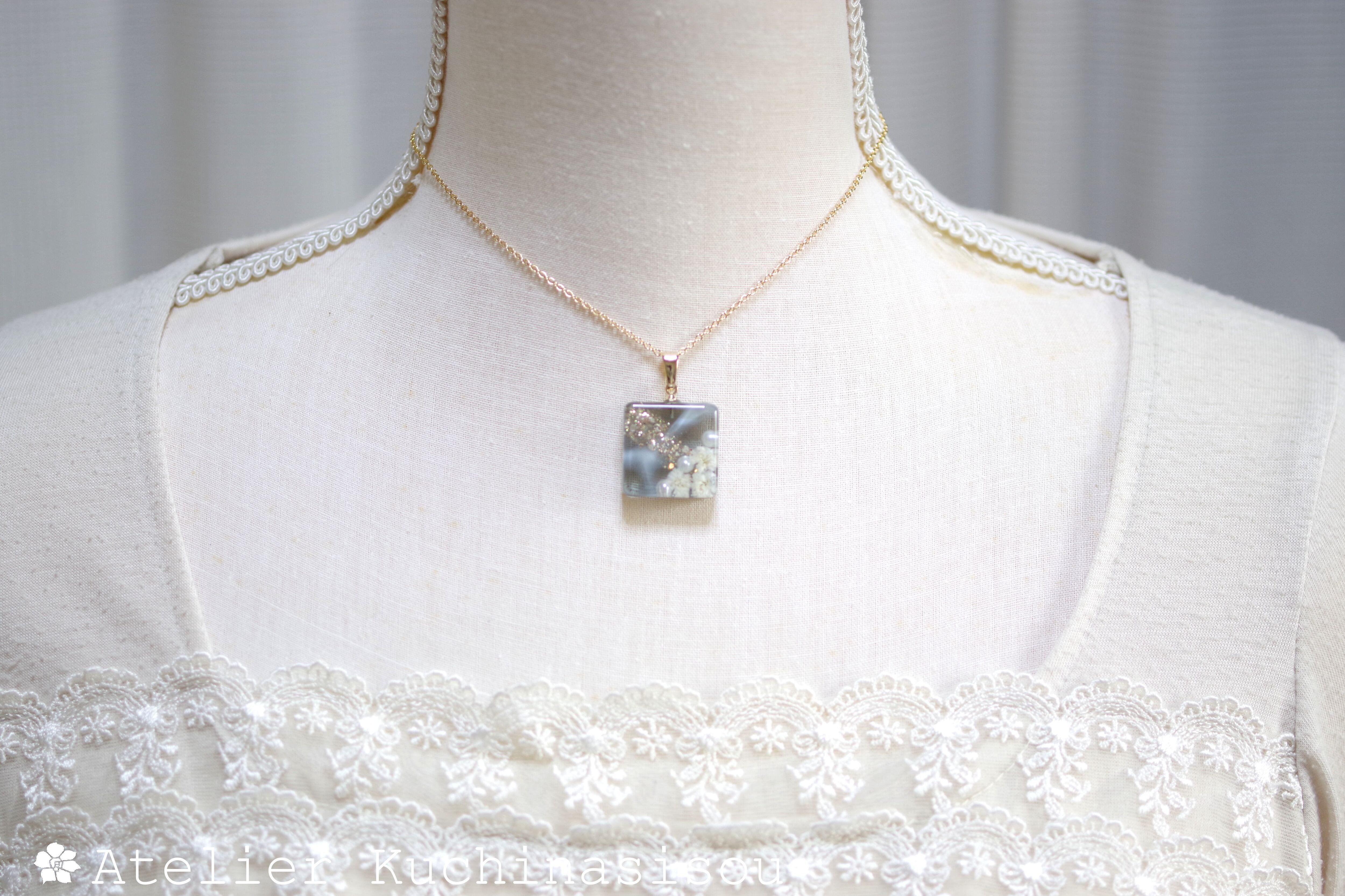 【受注製作】レジンアート スクエアペンダント〈明るい夜〉