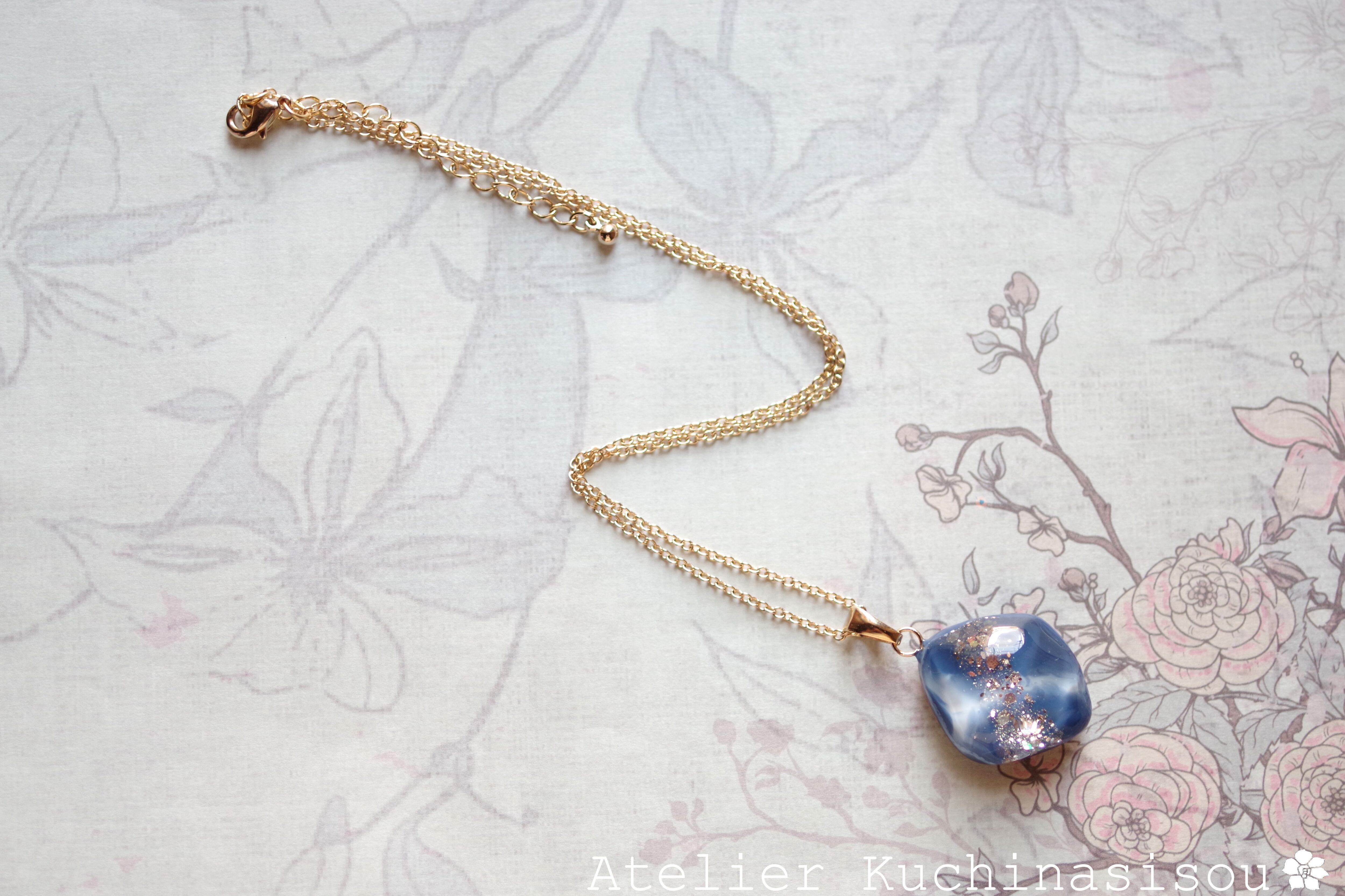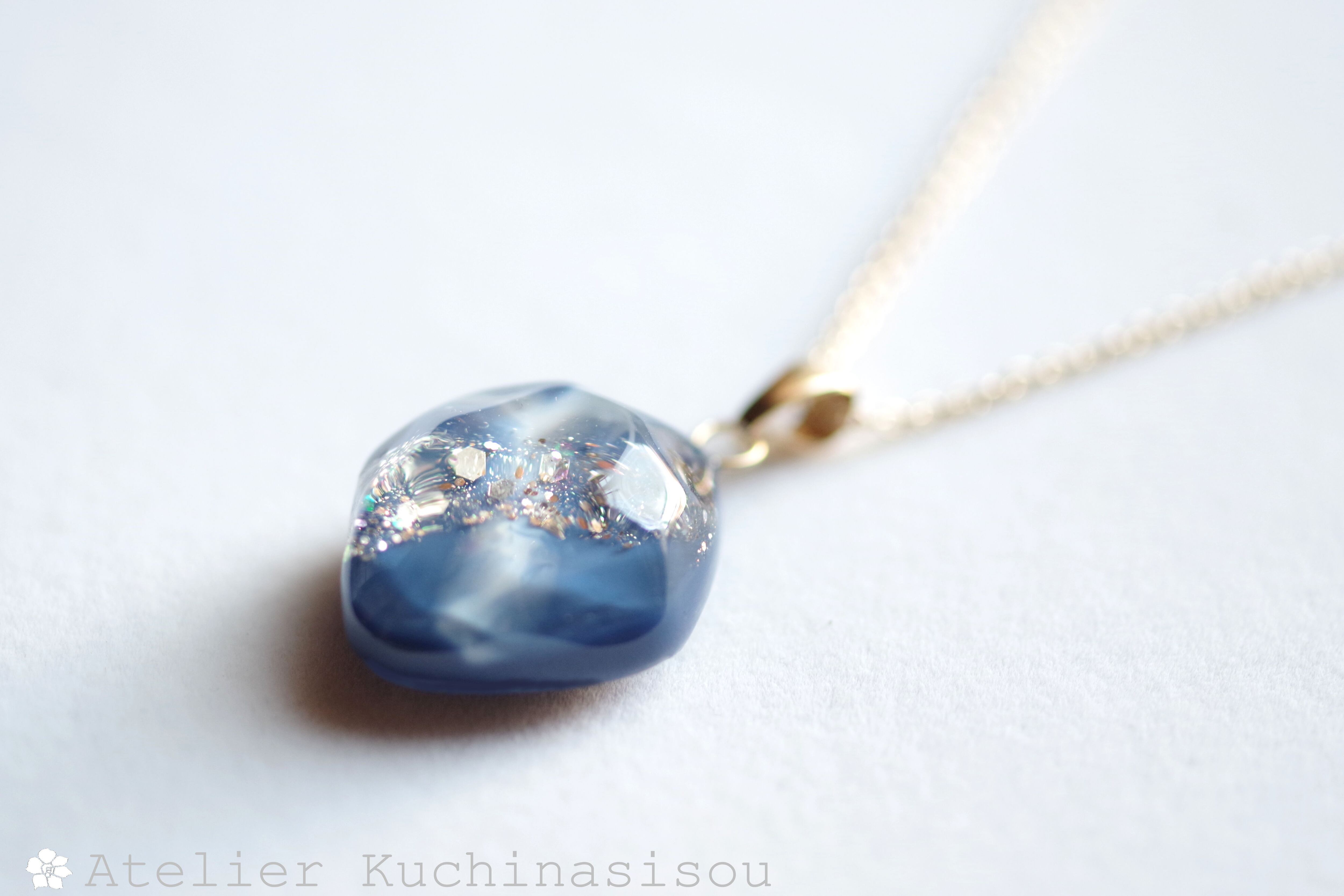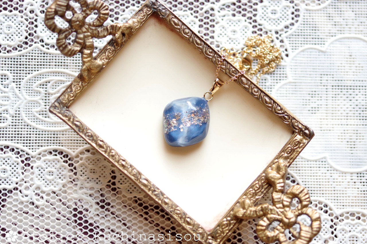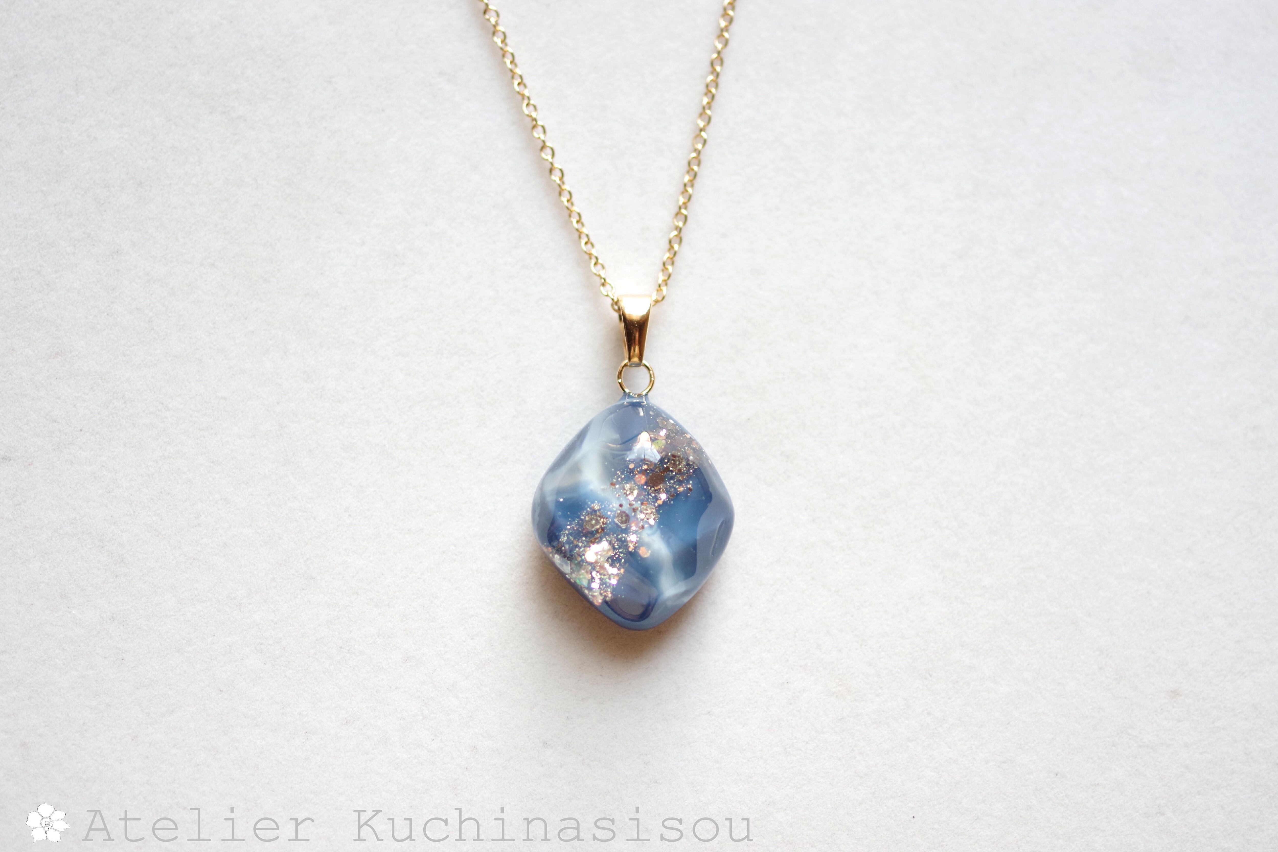 レジンアート 鉱物ペンダント〈胸の潮騒〉