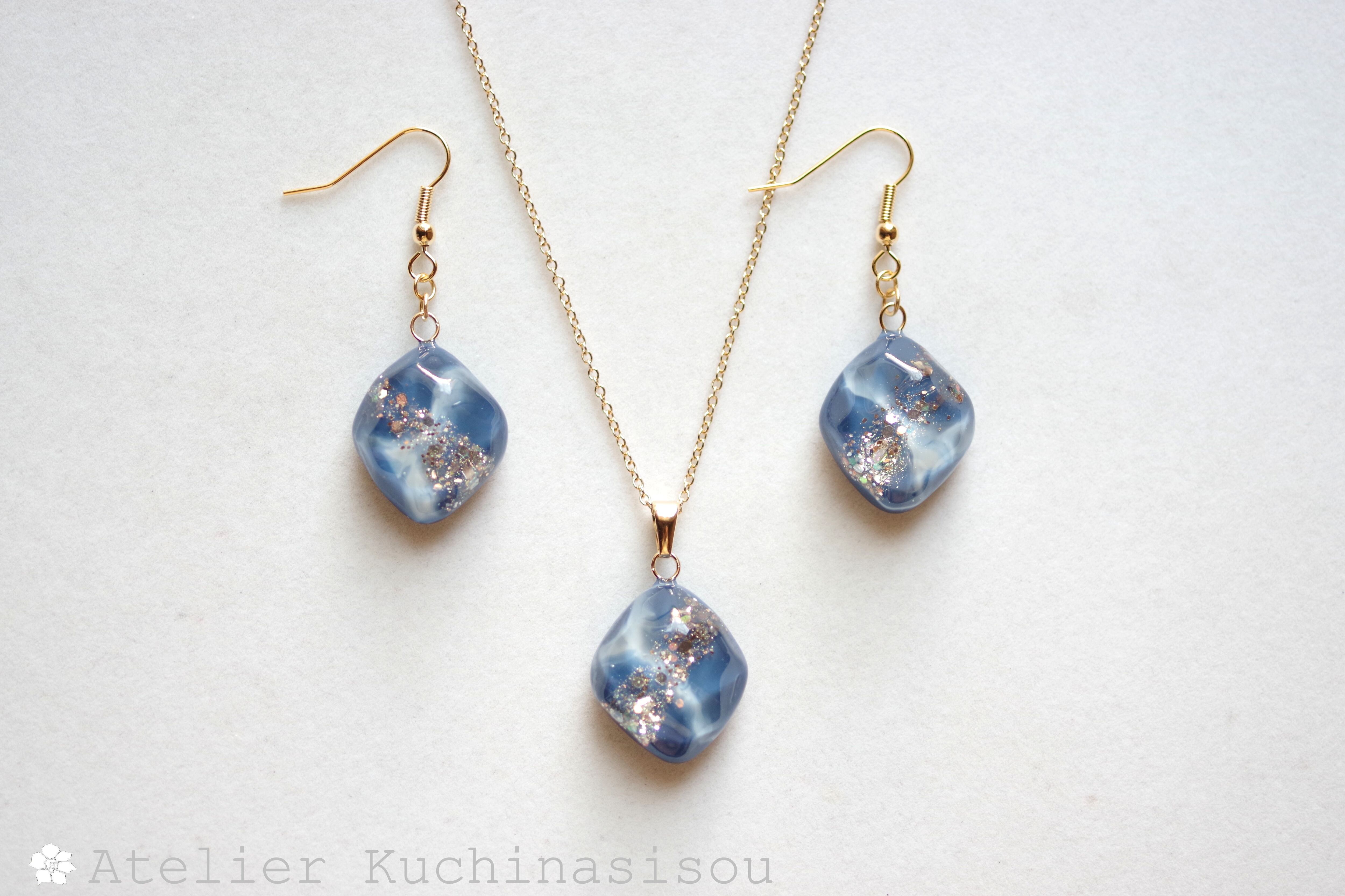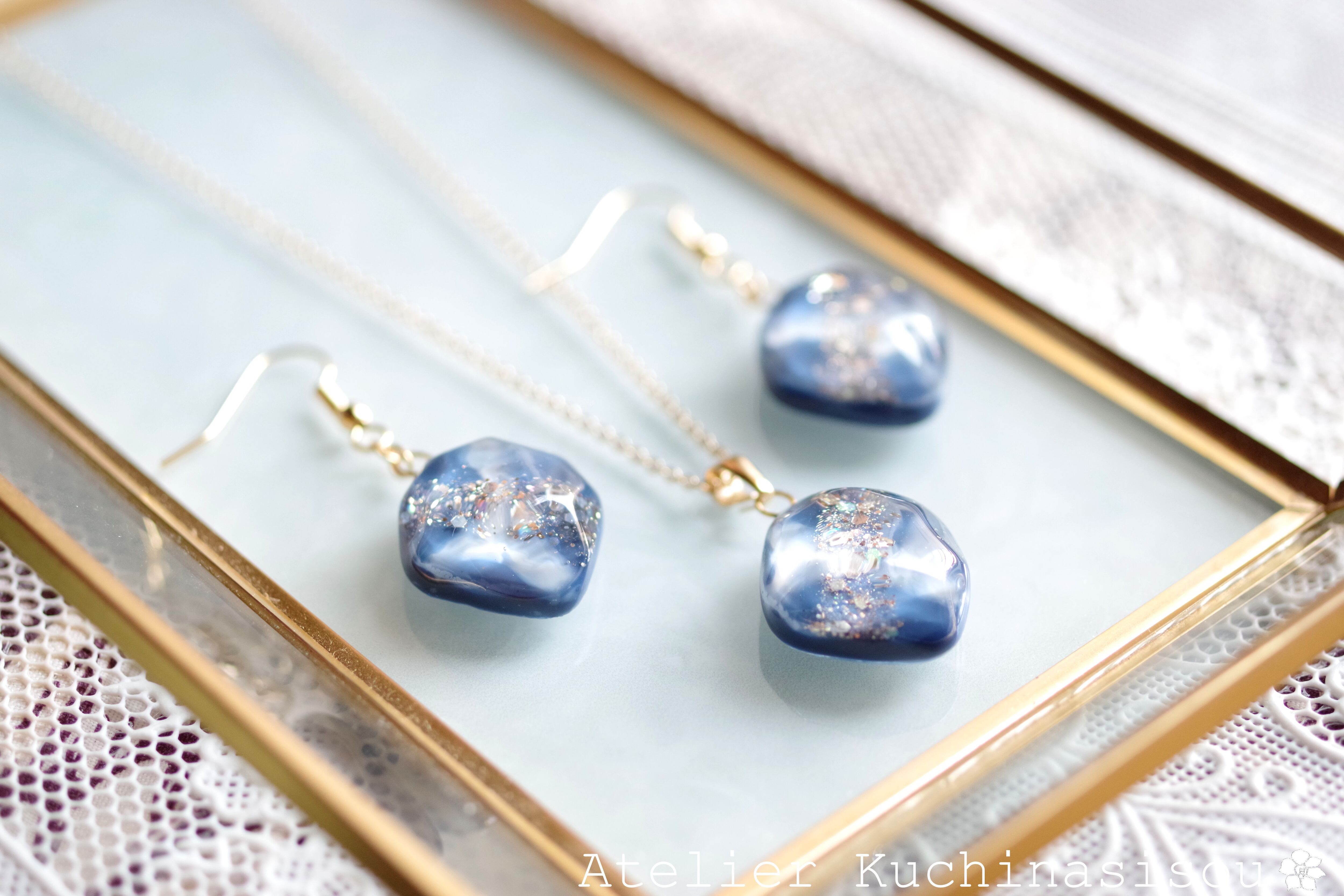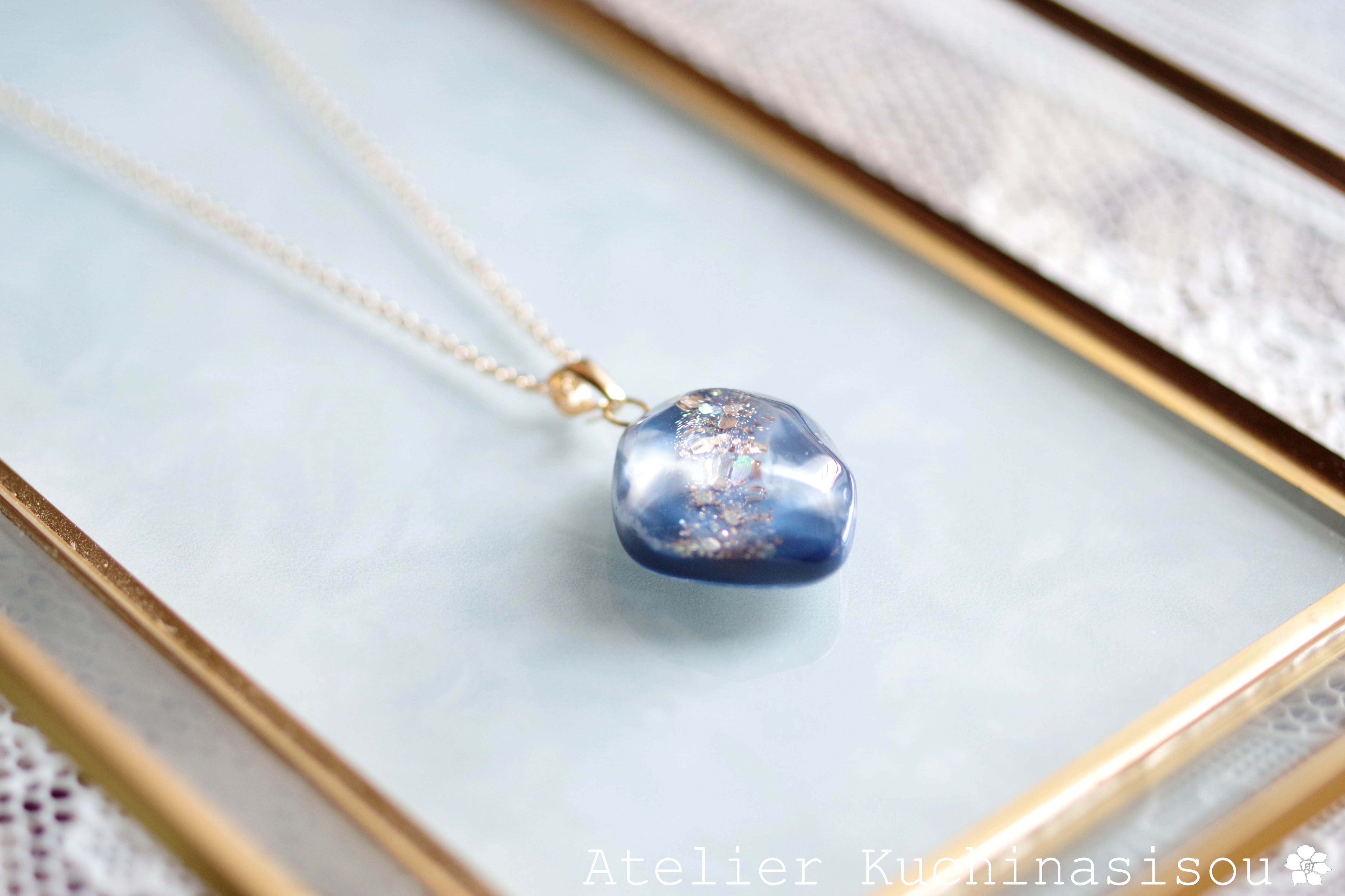 レジンアート 鉱物ペンダント〈胸の潮騒〉
