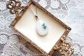 ドロップ型のレジンにお花を二輪咲かせた可憐なペンダントです。