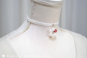 光沢のある真珠色がデコルテを明るく照らすチョーカーです。