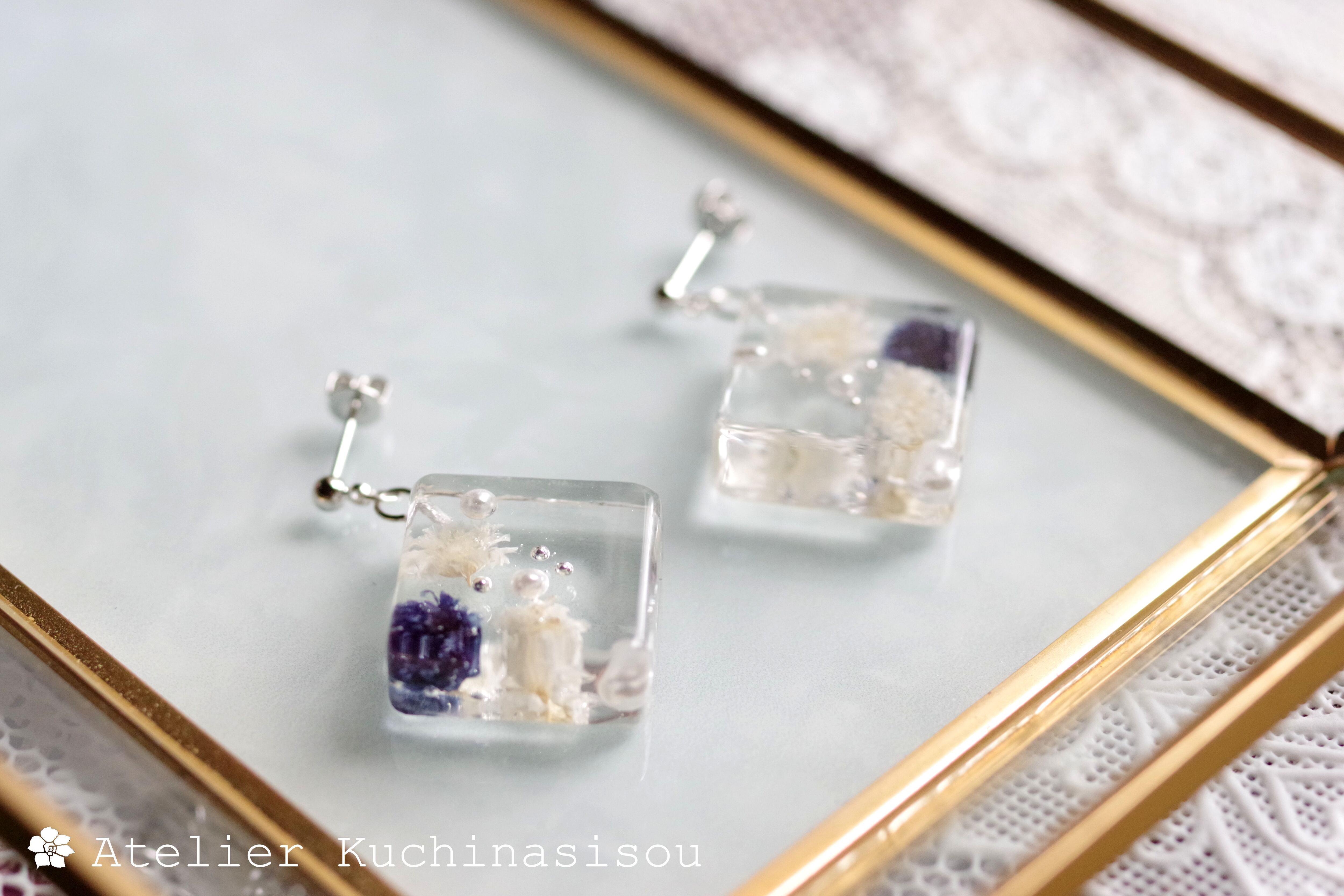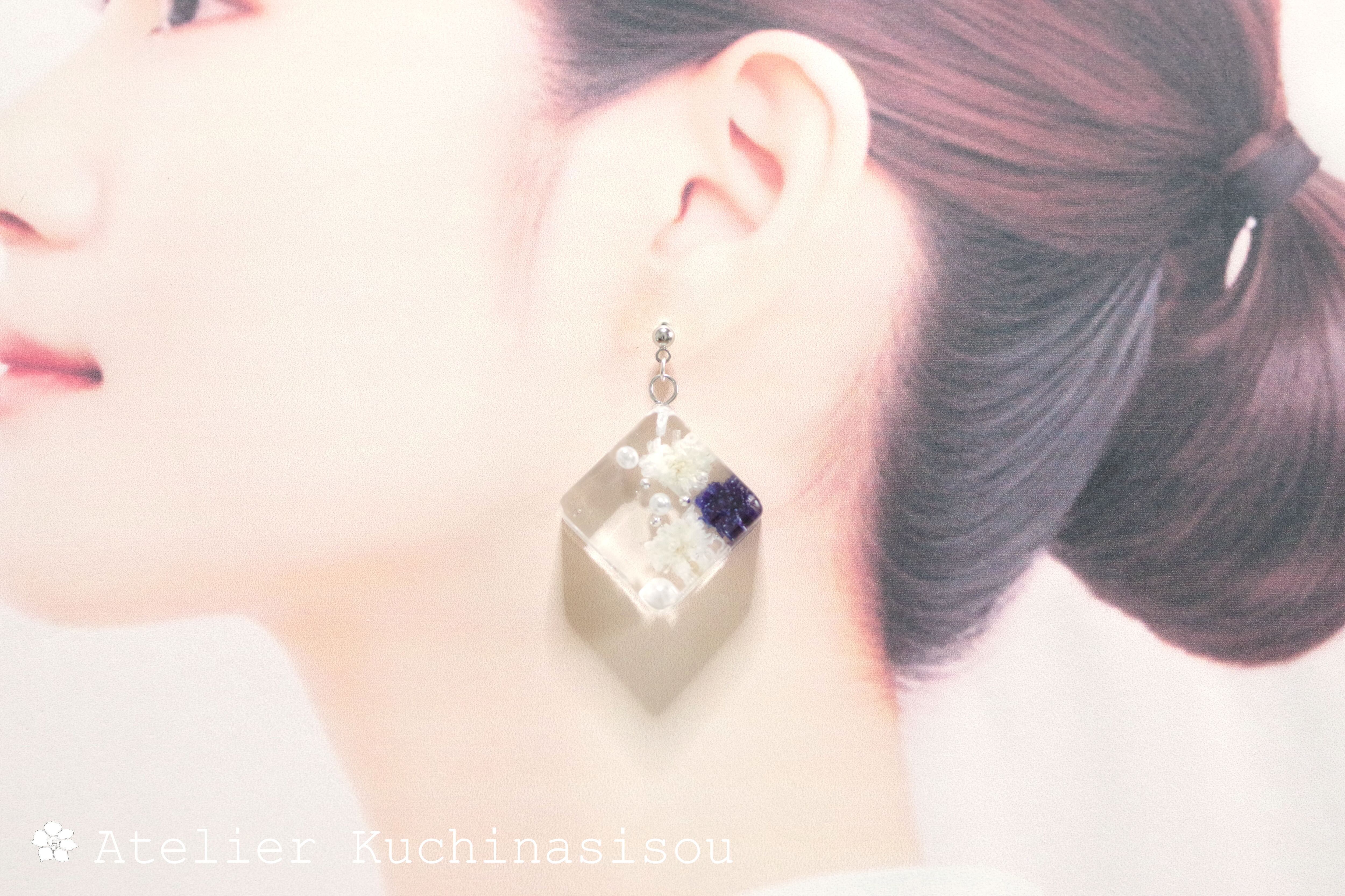 レジンアート スクエアピアス〈過去からの声〉