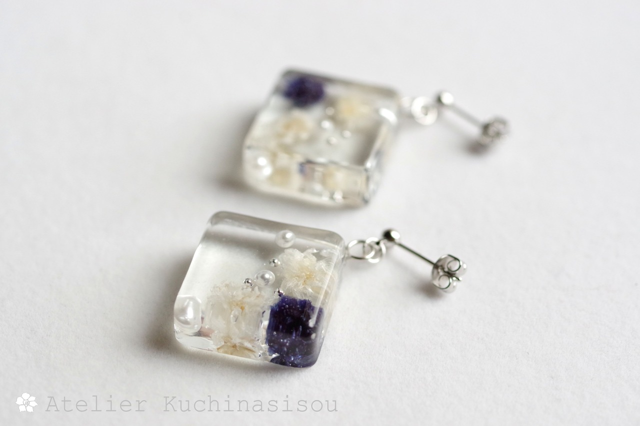レジンでスクエアピアスを作りました♪