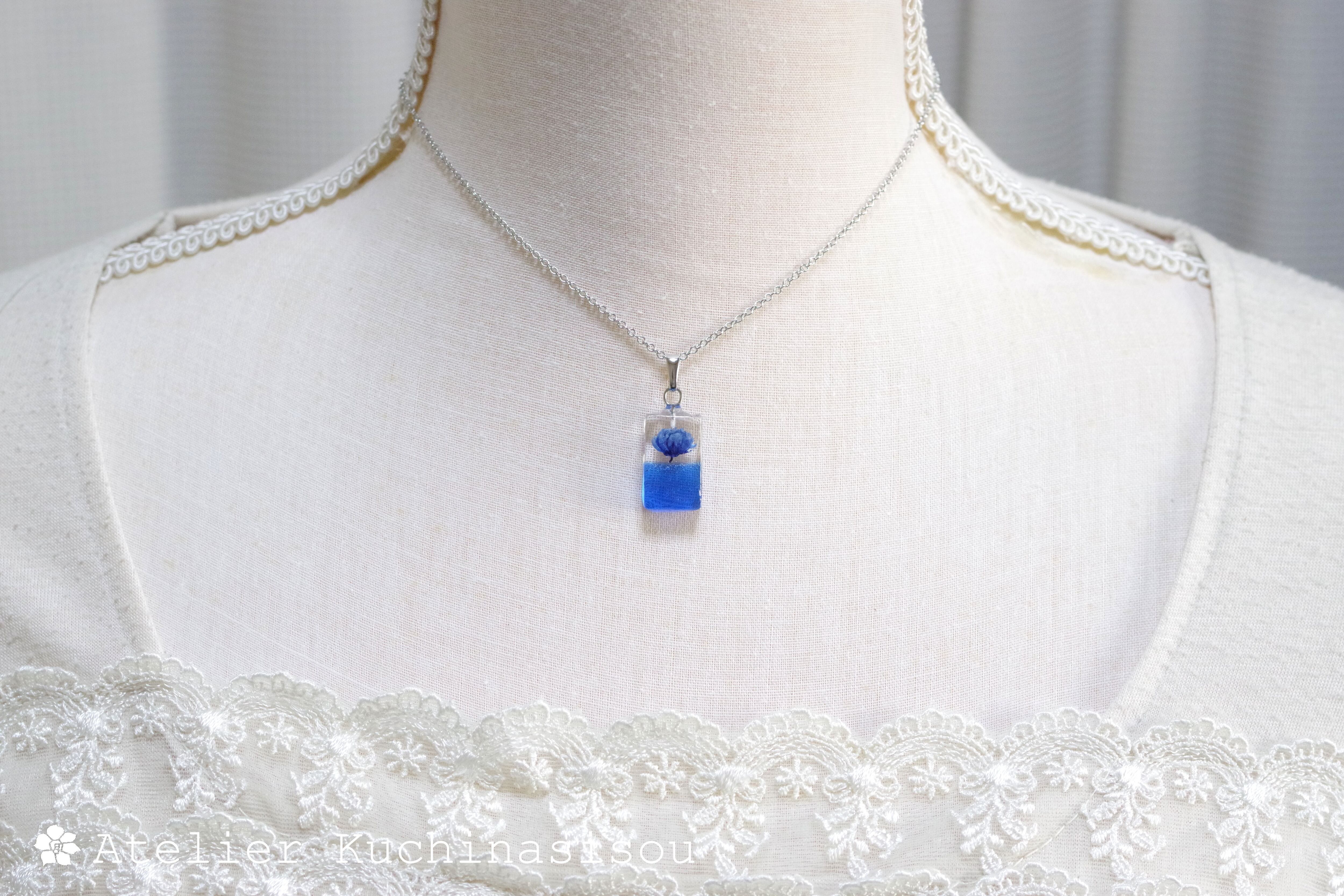 青色の海から青色の花が咲いているような、シンプルながらも可憐さのあるペンダント。