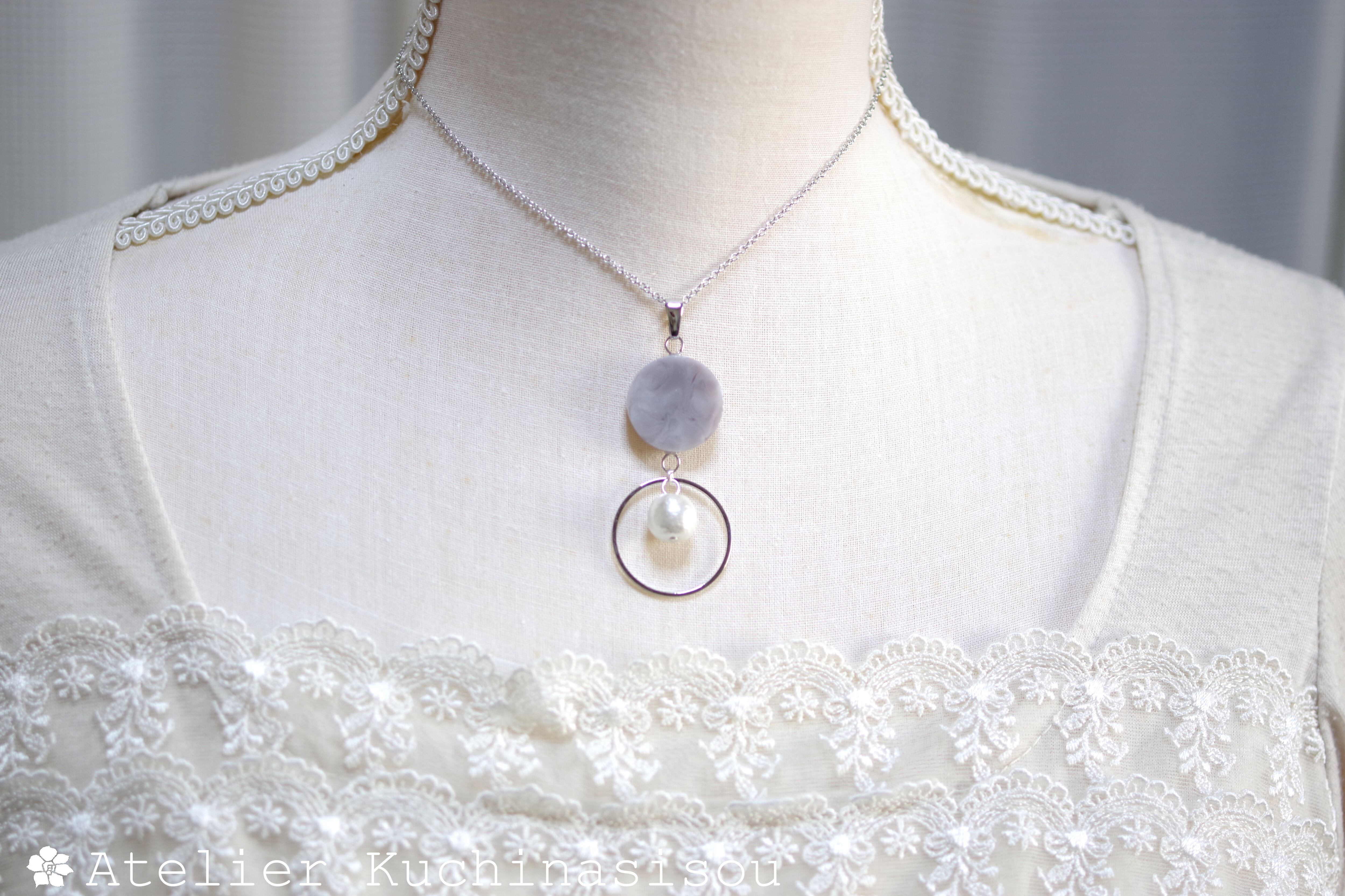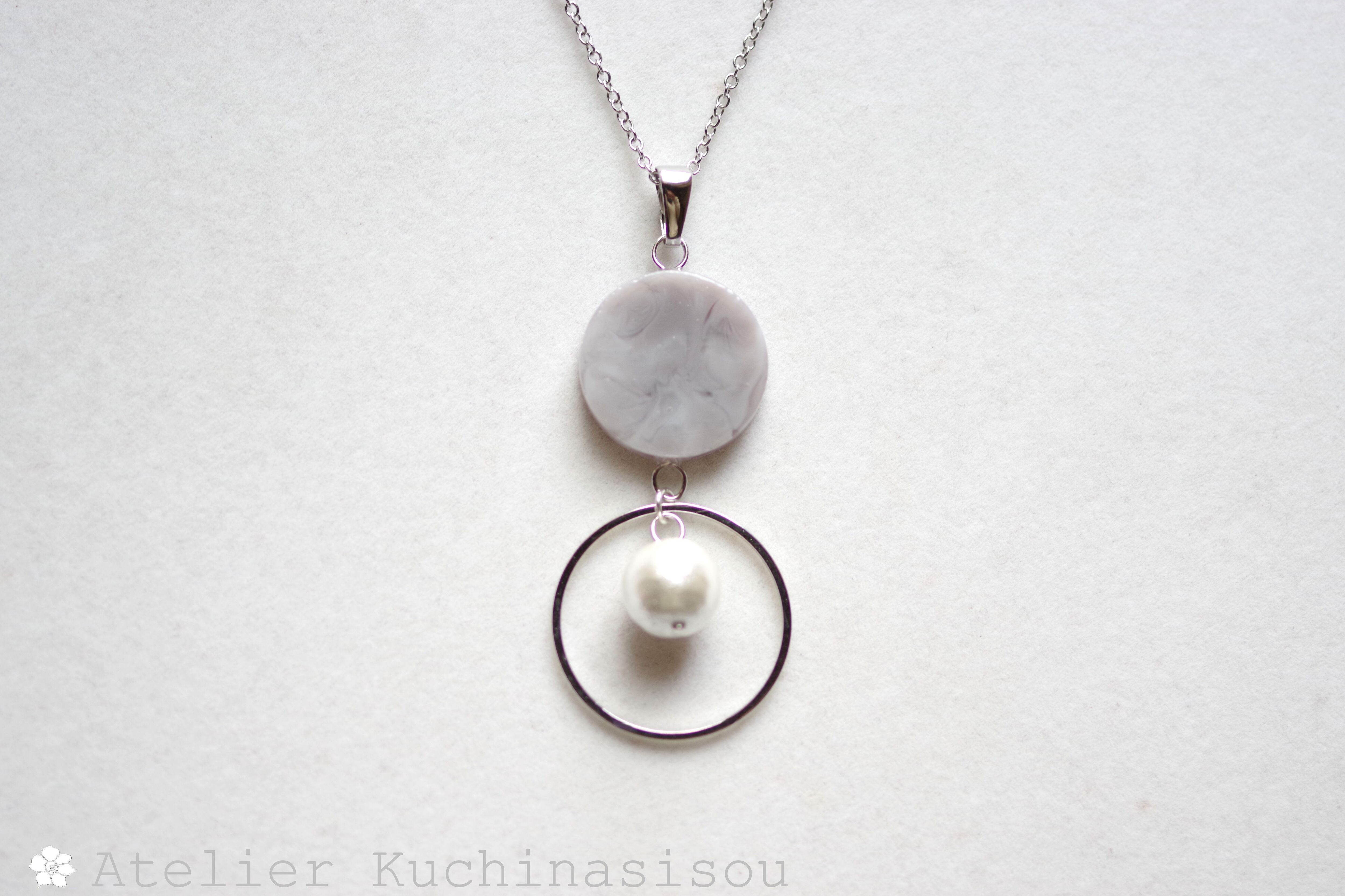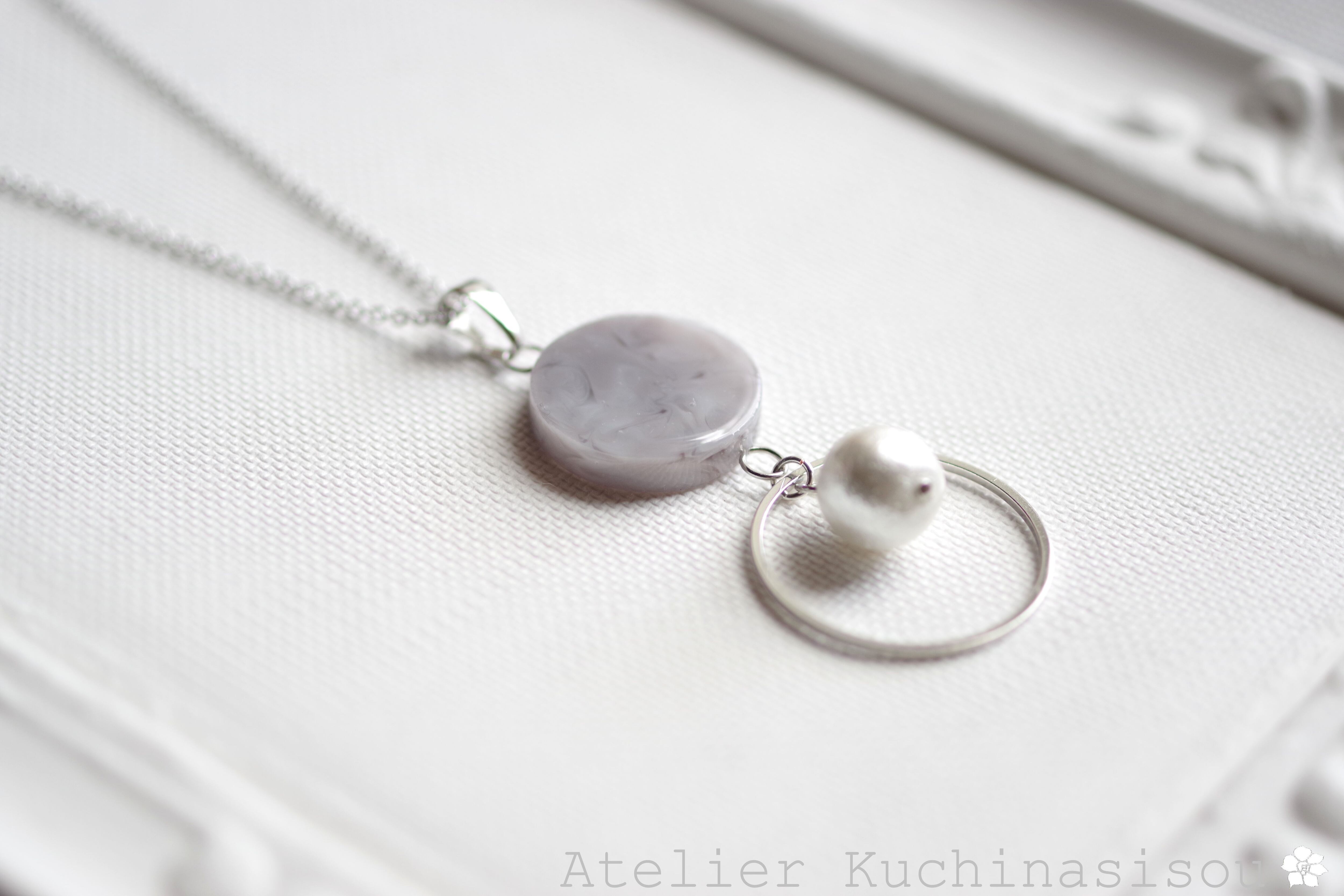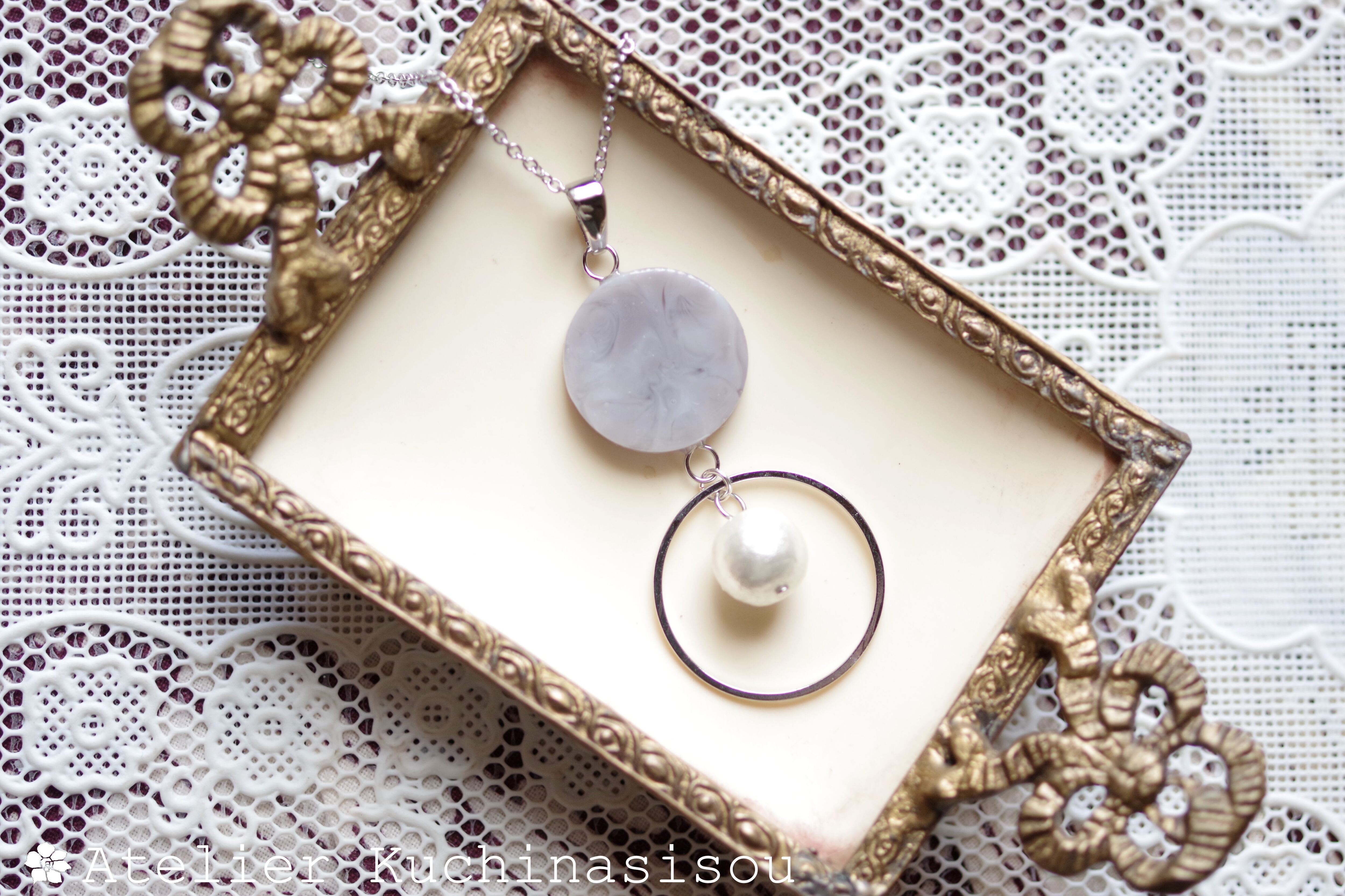 レジンアート ラウンドモチーフとコットンパールとリングのペンダント〈雲に抱かれて〉
