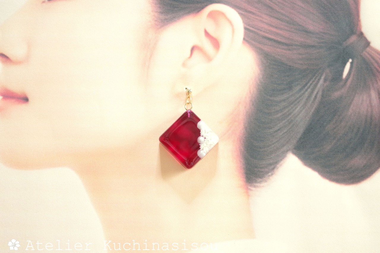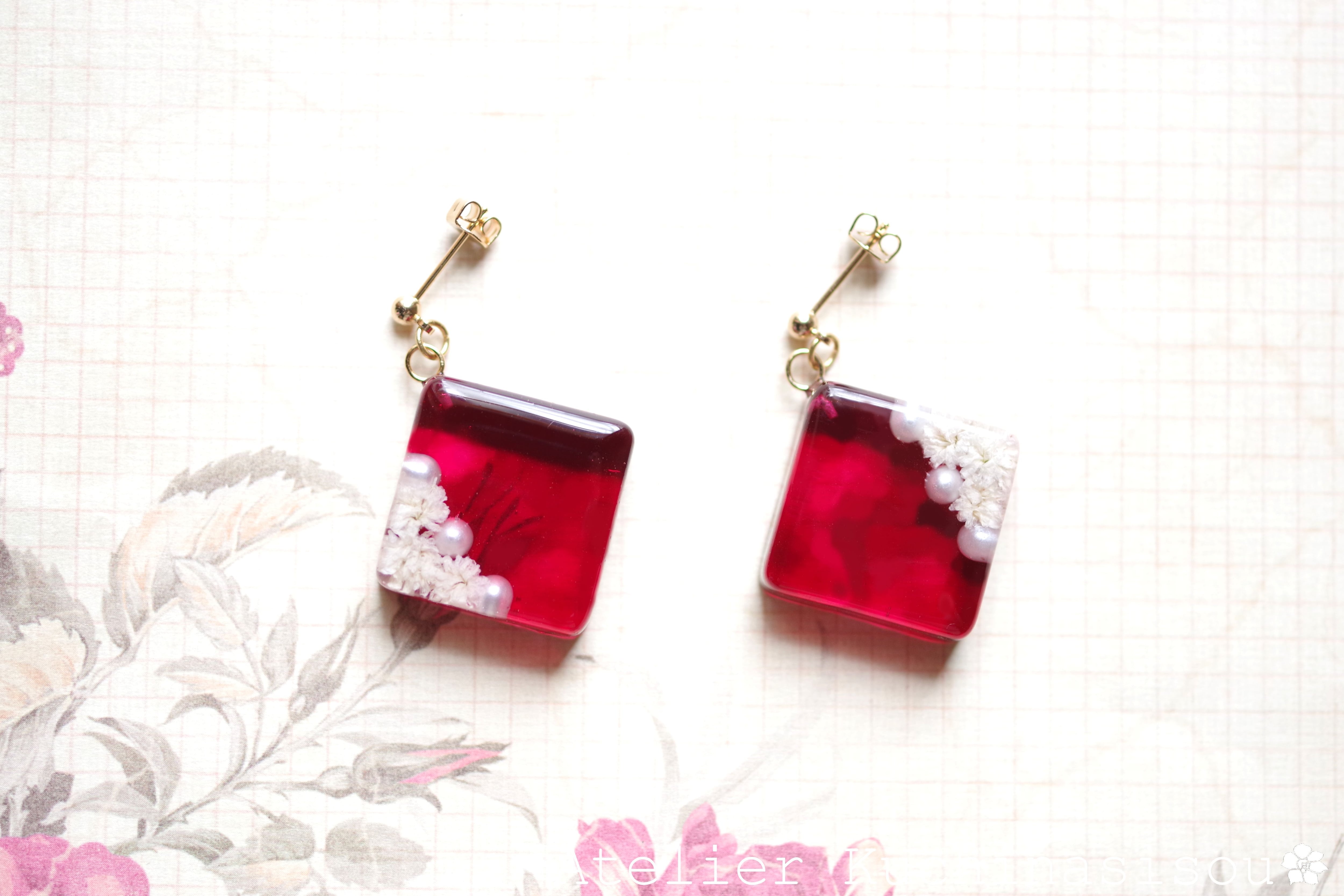 レジンでスクエアピアスを作りました♪