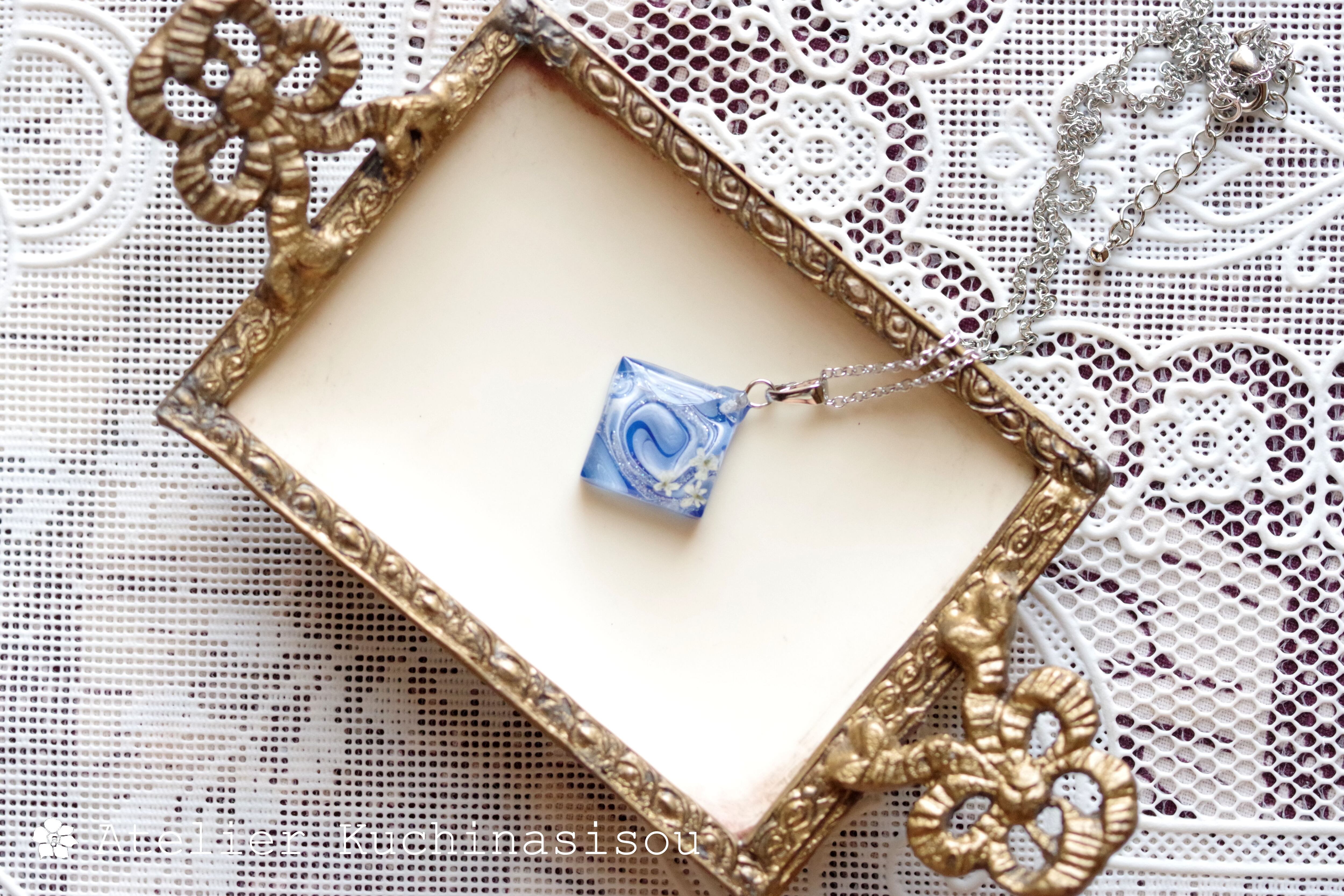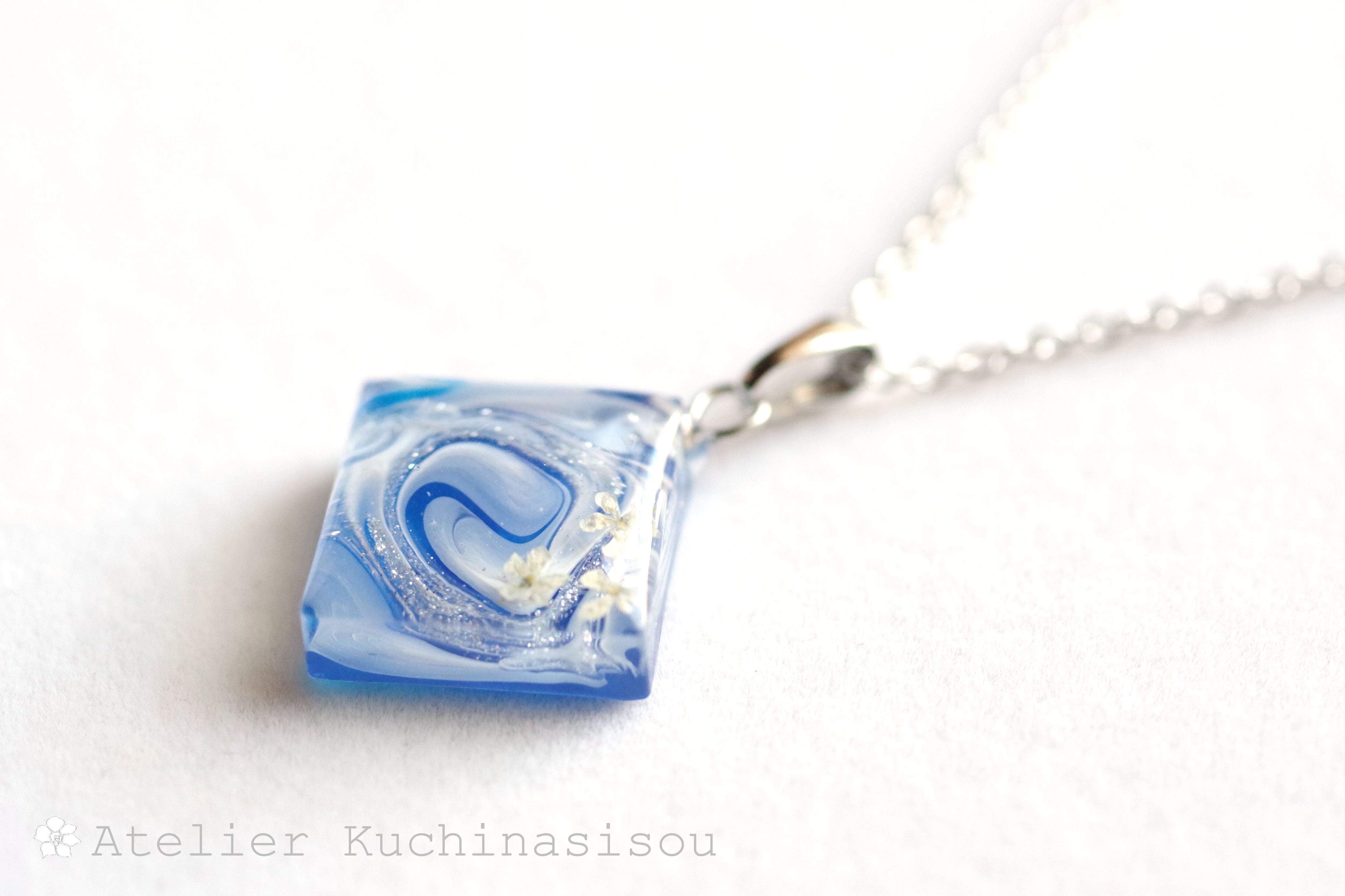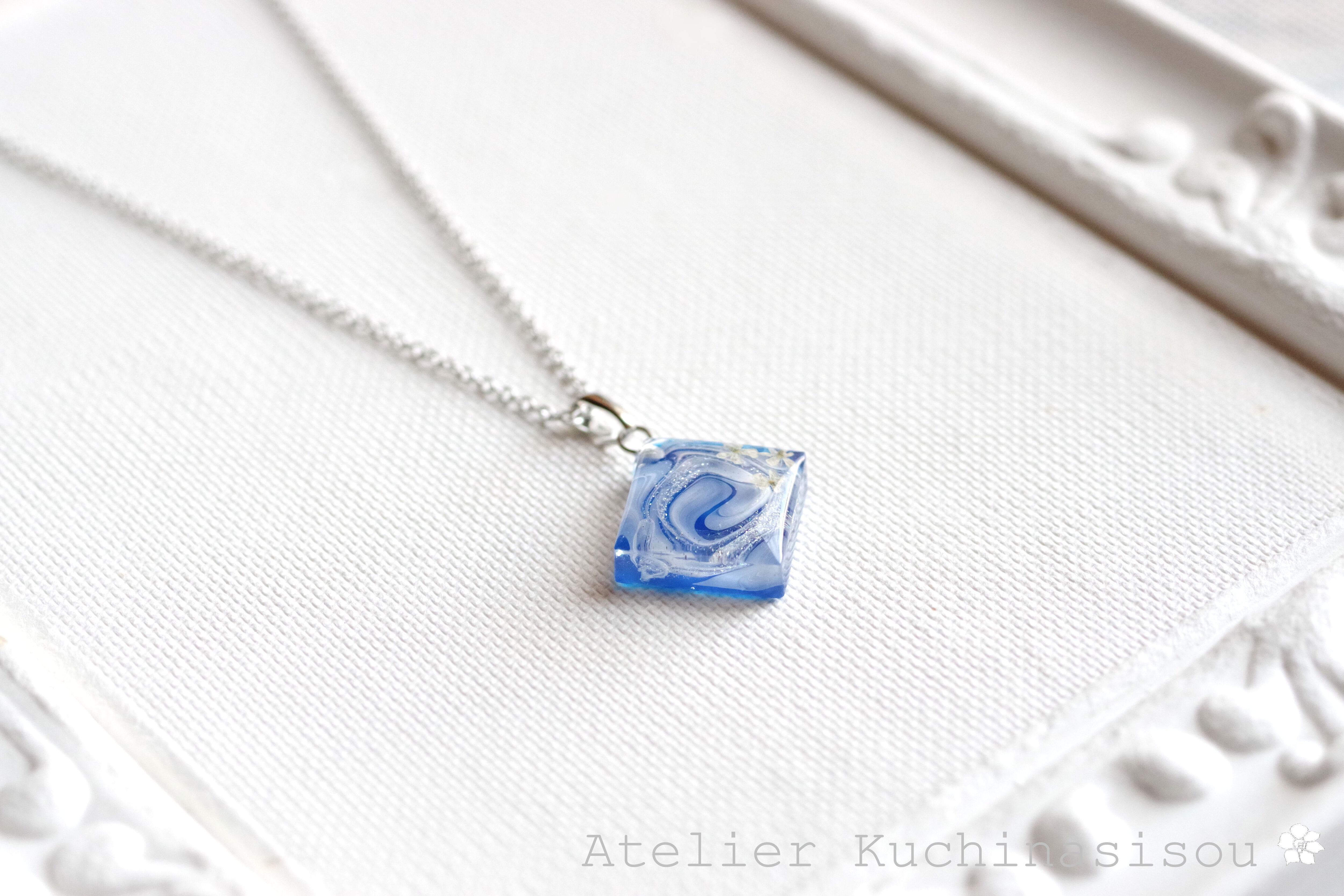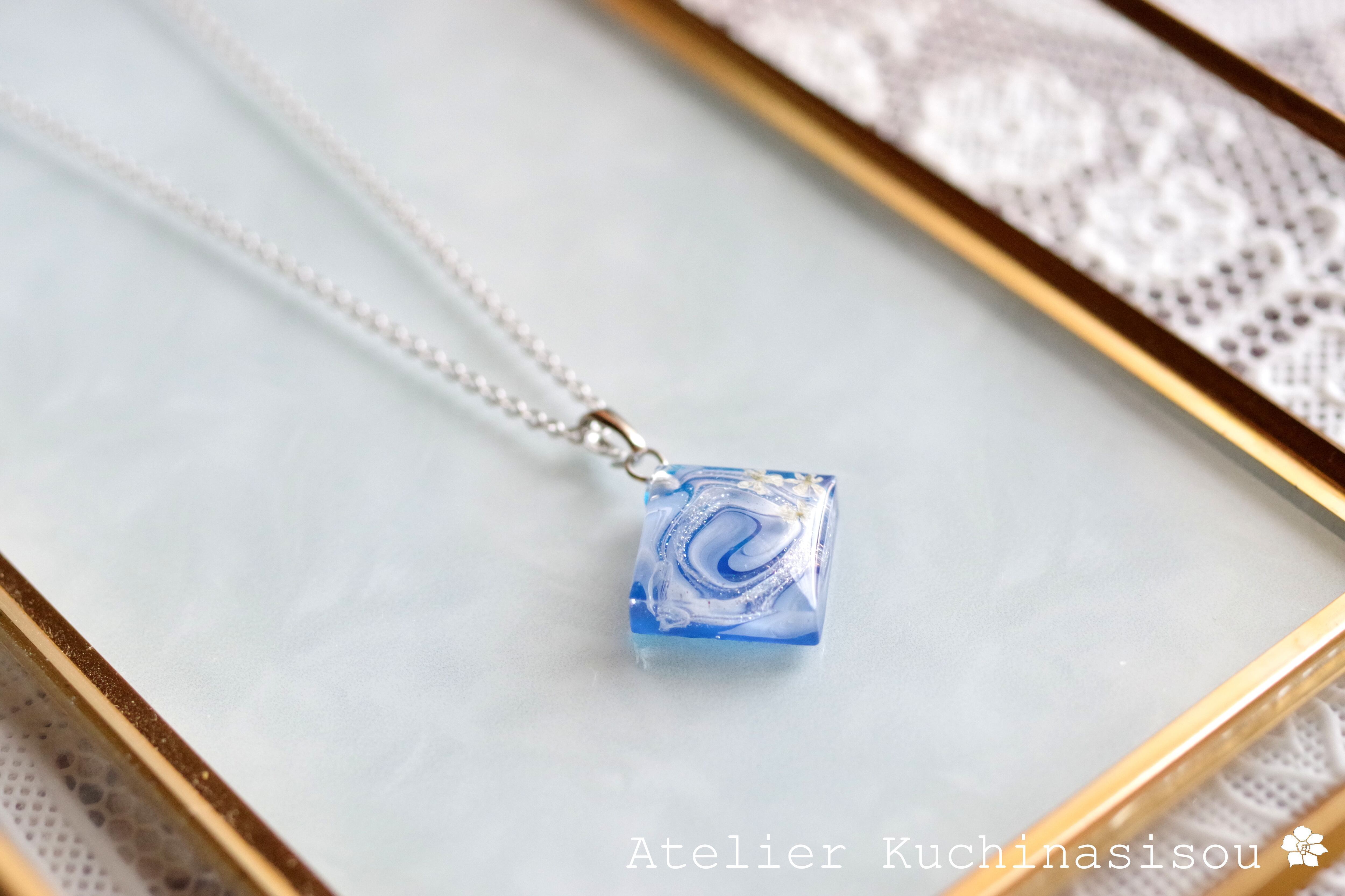 レジンアート スクエアペンダント〈瑠璃の花〉