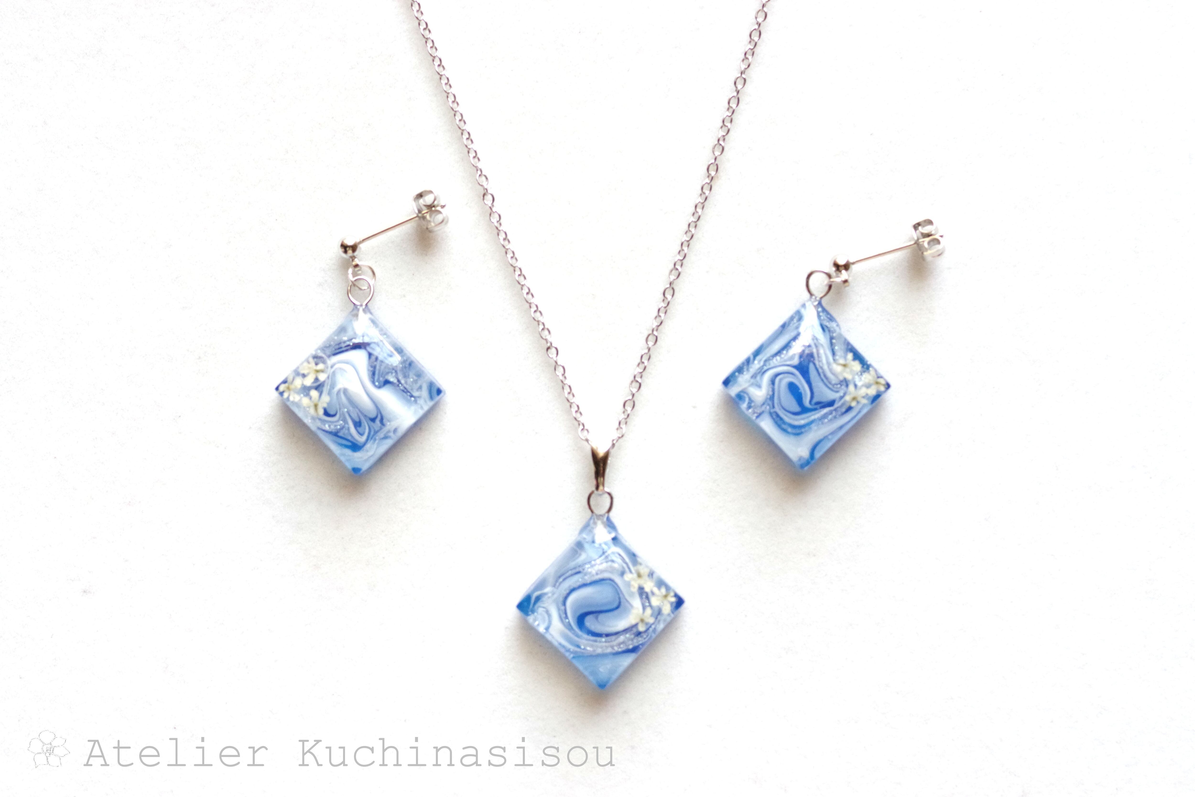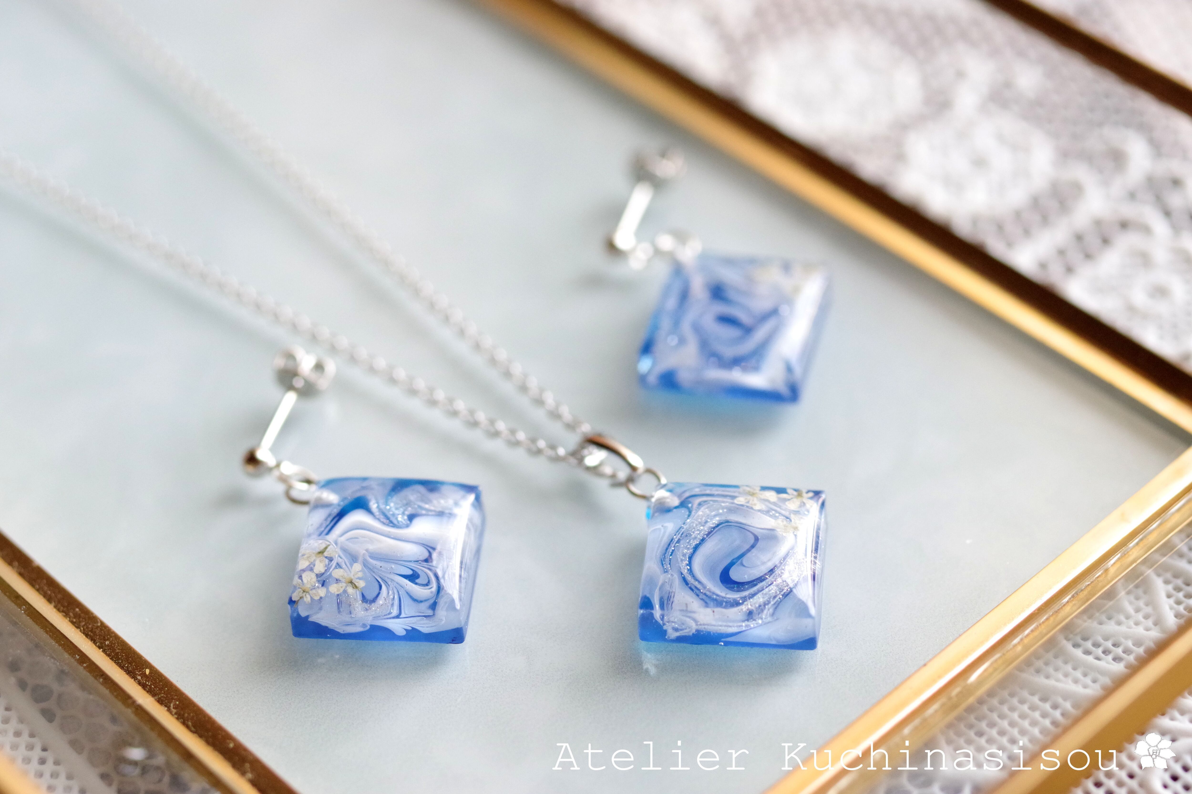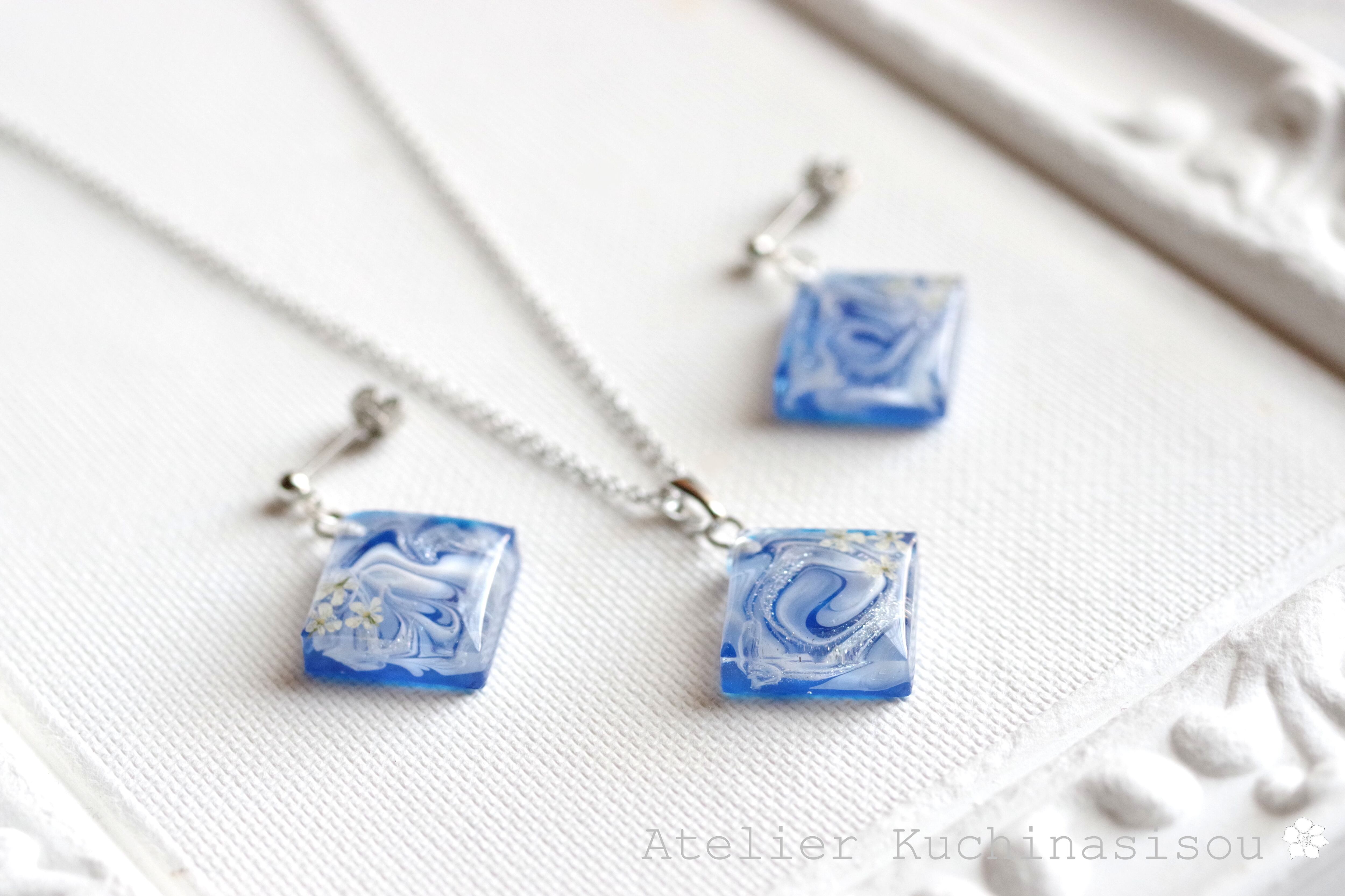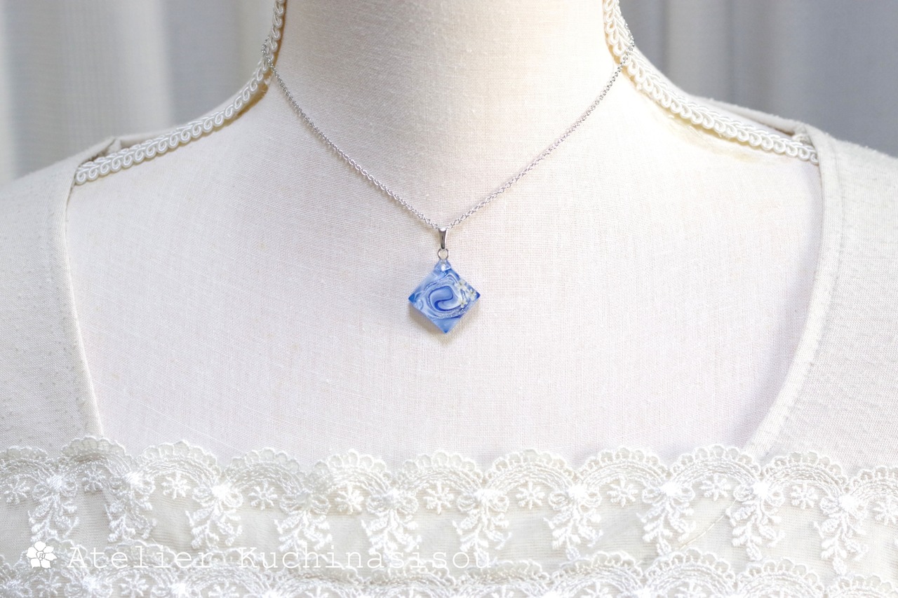 レジンアート スクエアペンダント〈瑠璃の花〉