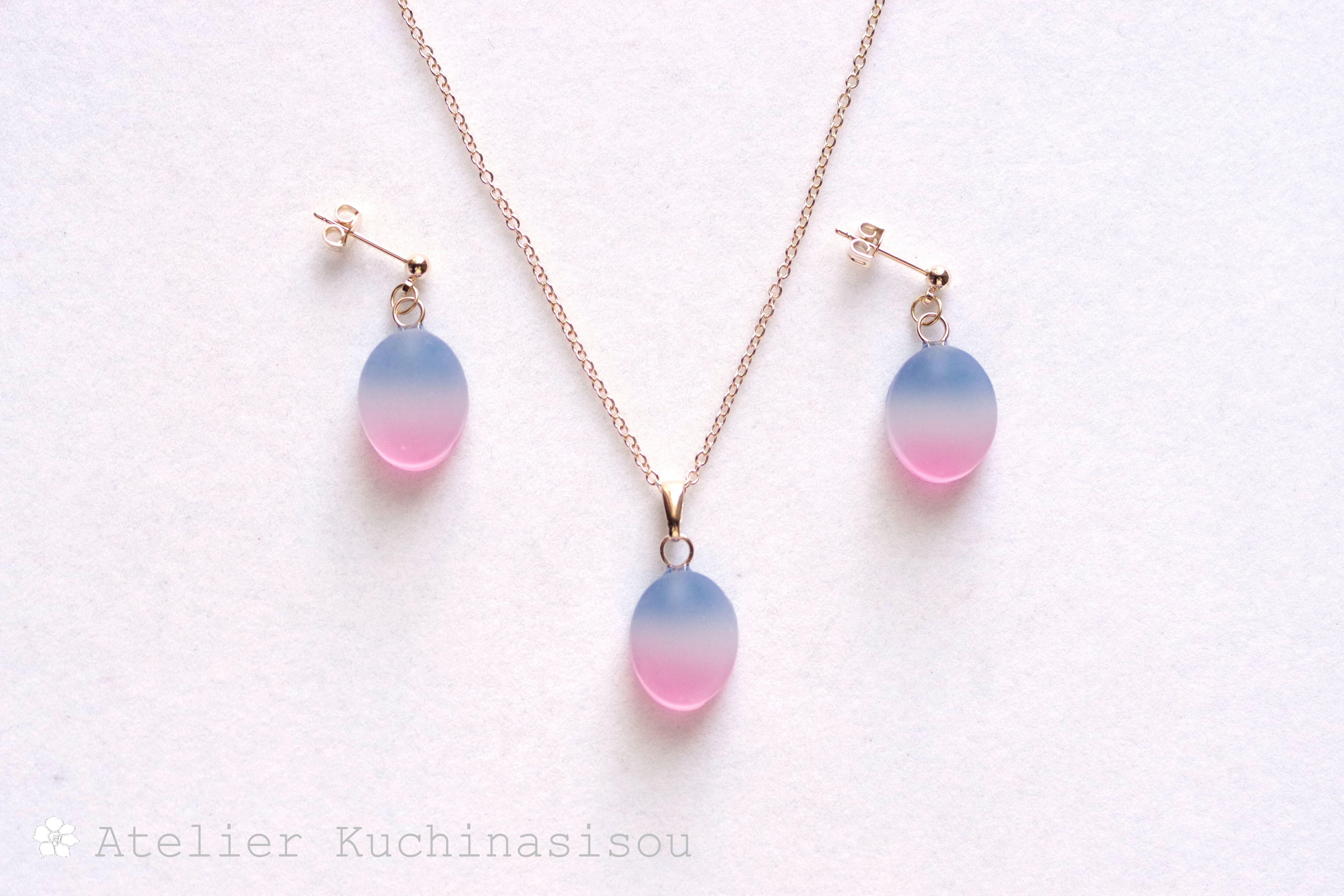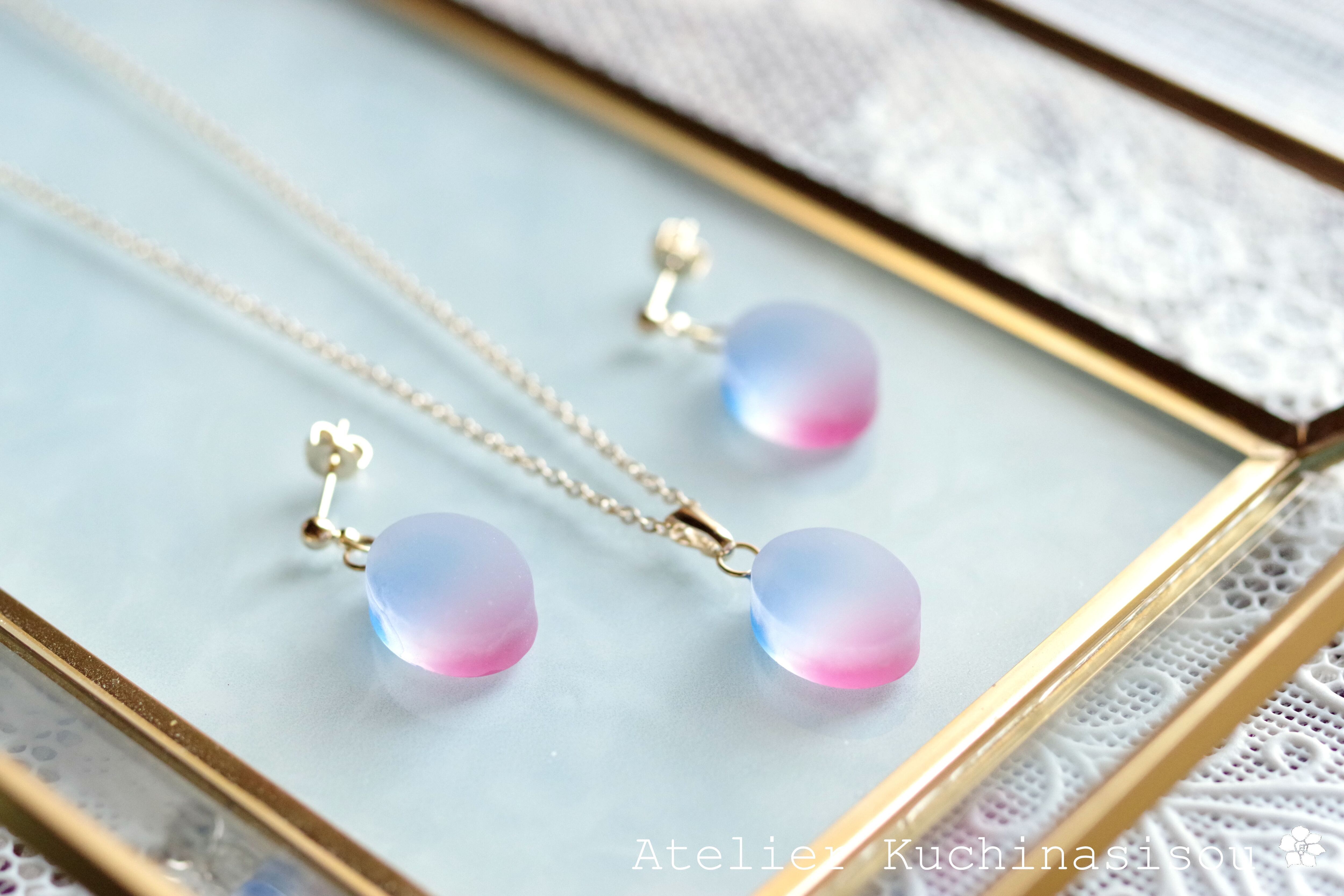 レジンアート シーグラス風のペンダント〈夕闇の余韻〉