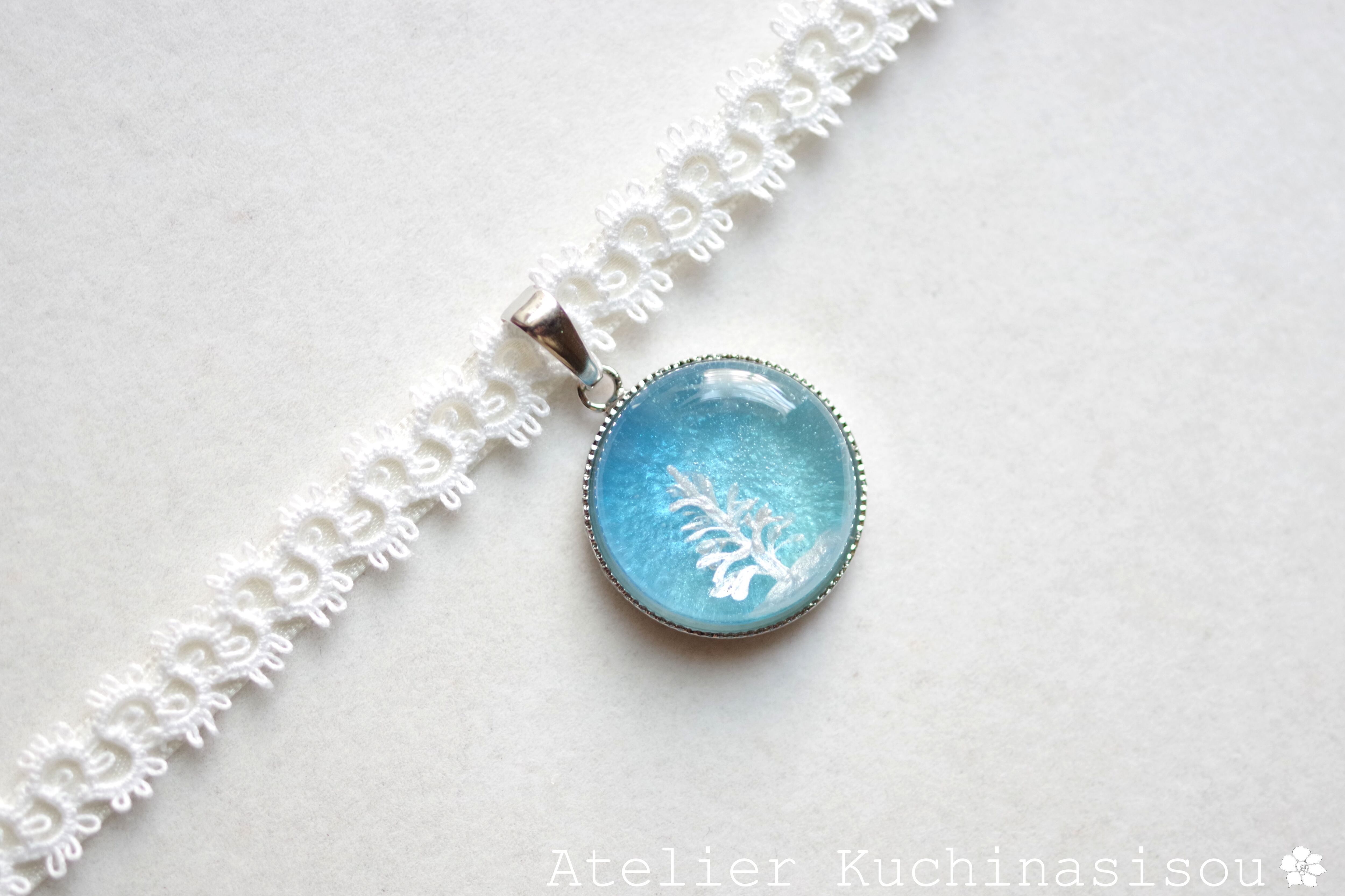 【受注製作】レジンアート ラウンドモチーフとタティングレースとサテンリボンのチョーカー〈蒼穹の果て〉