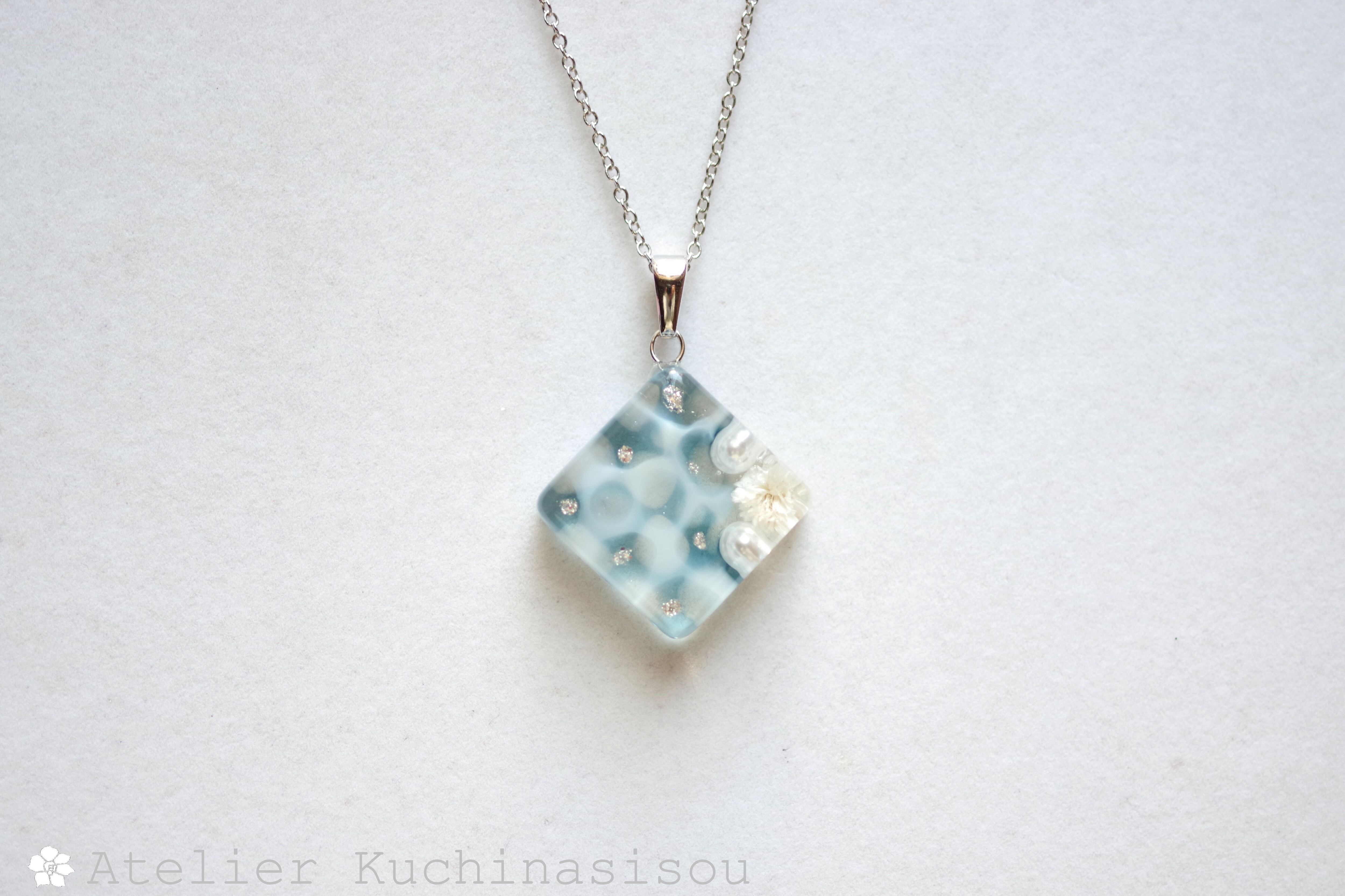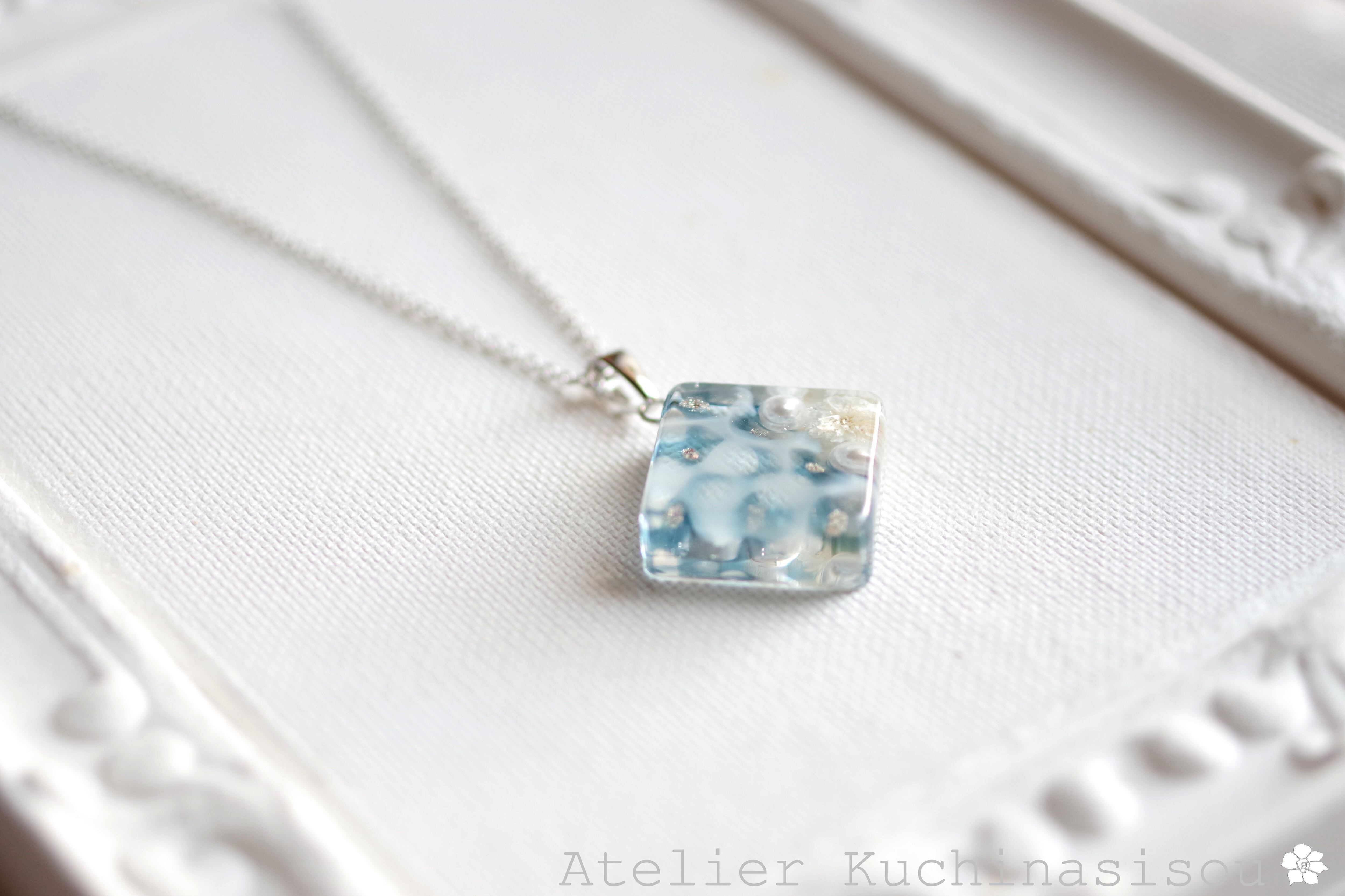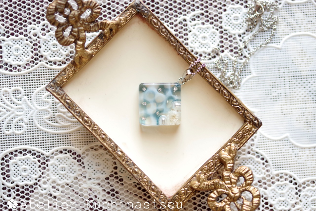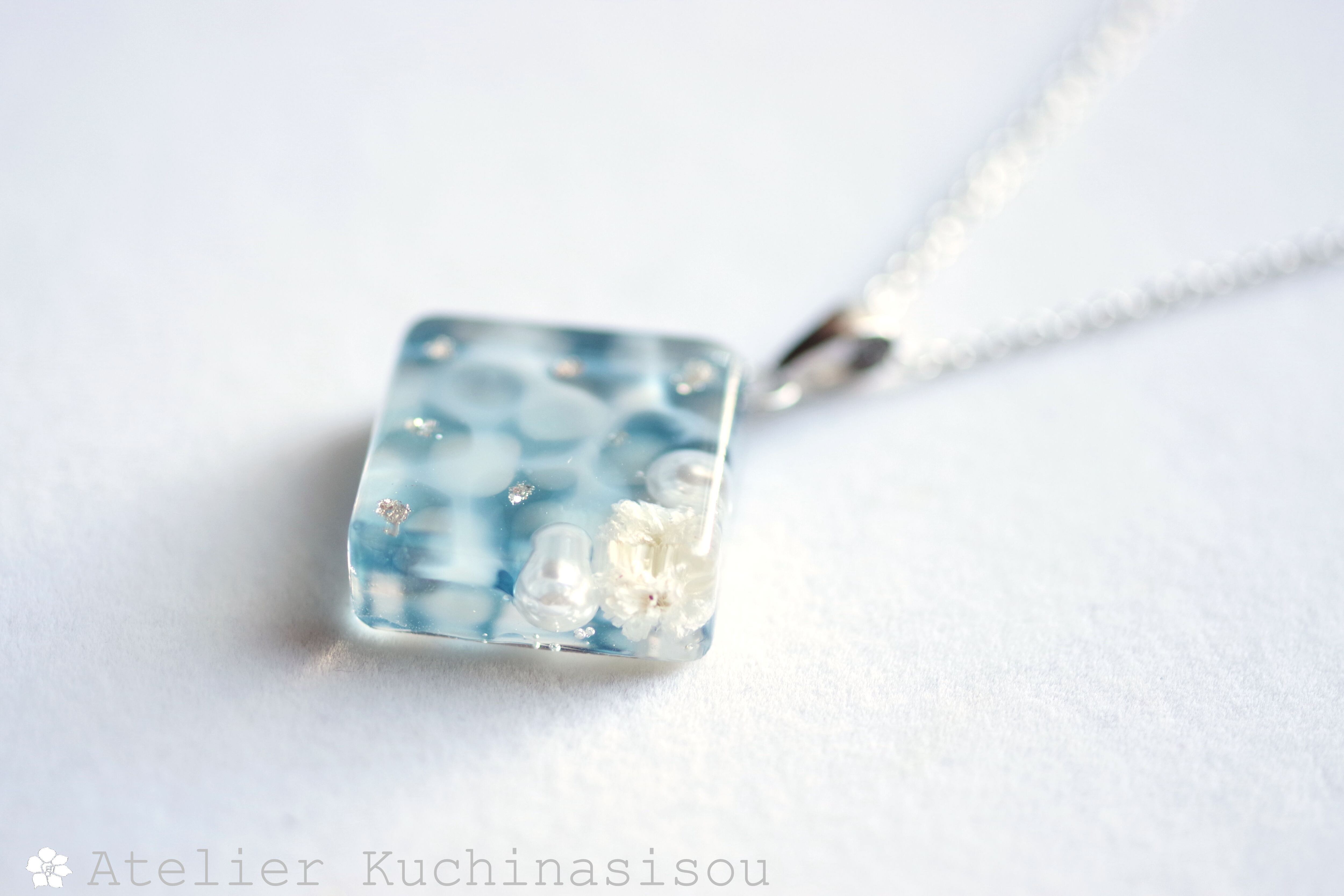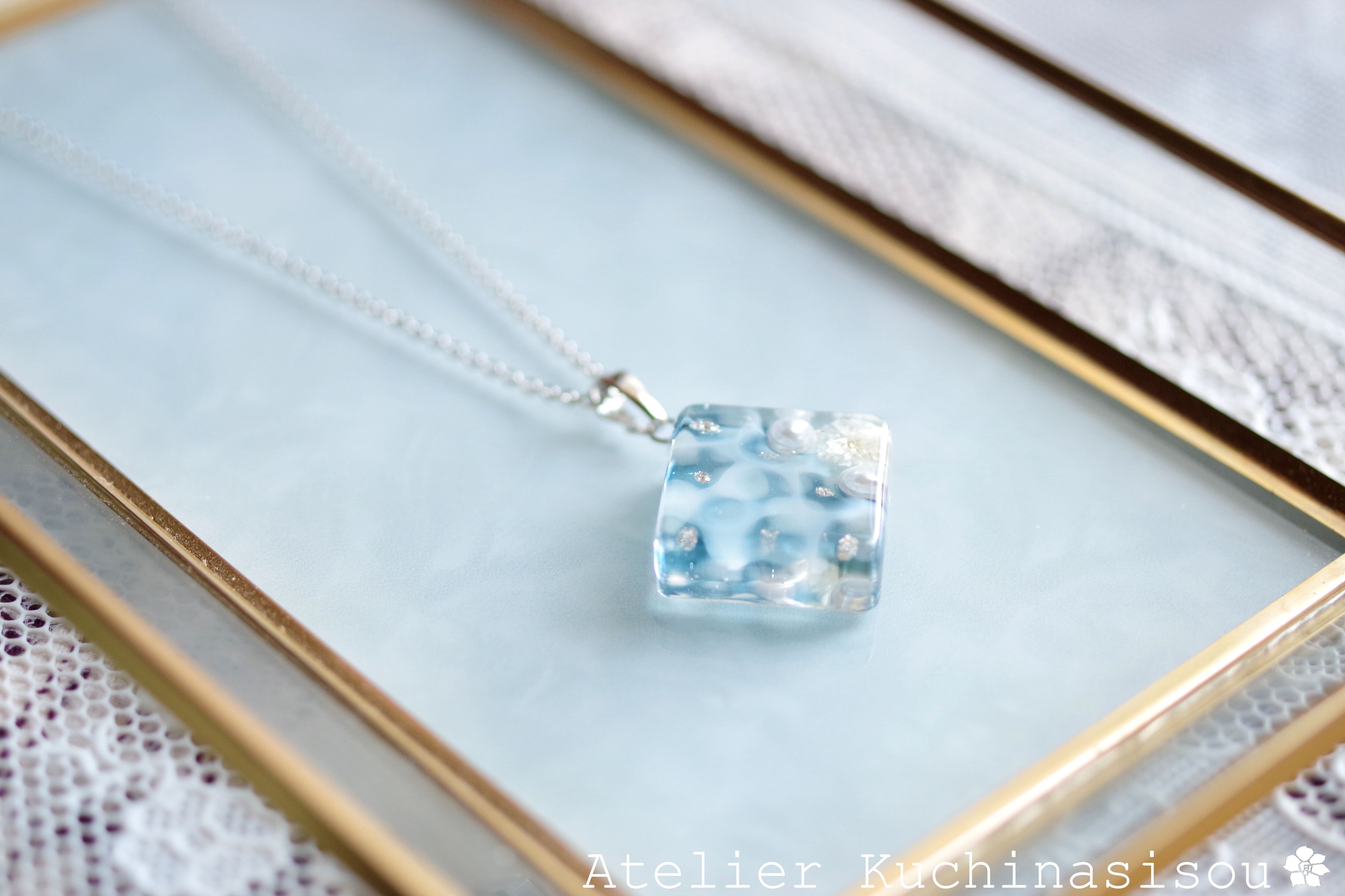 レジンアート スクエアペンダント〈水紋・コバルトブルー〉