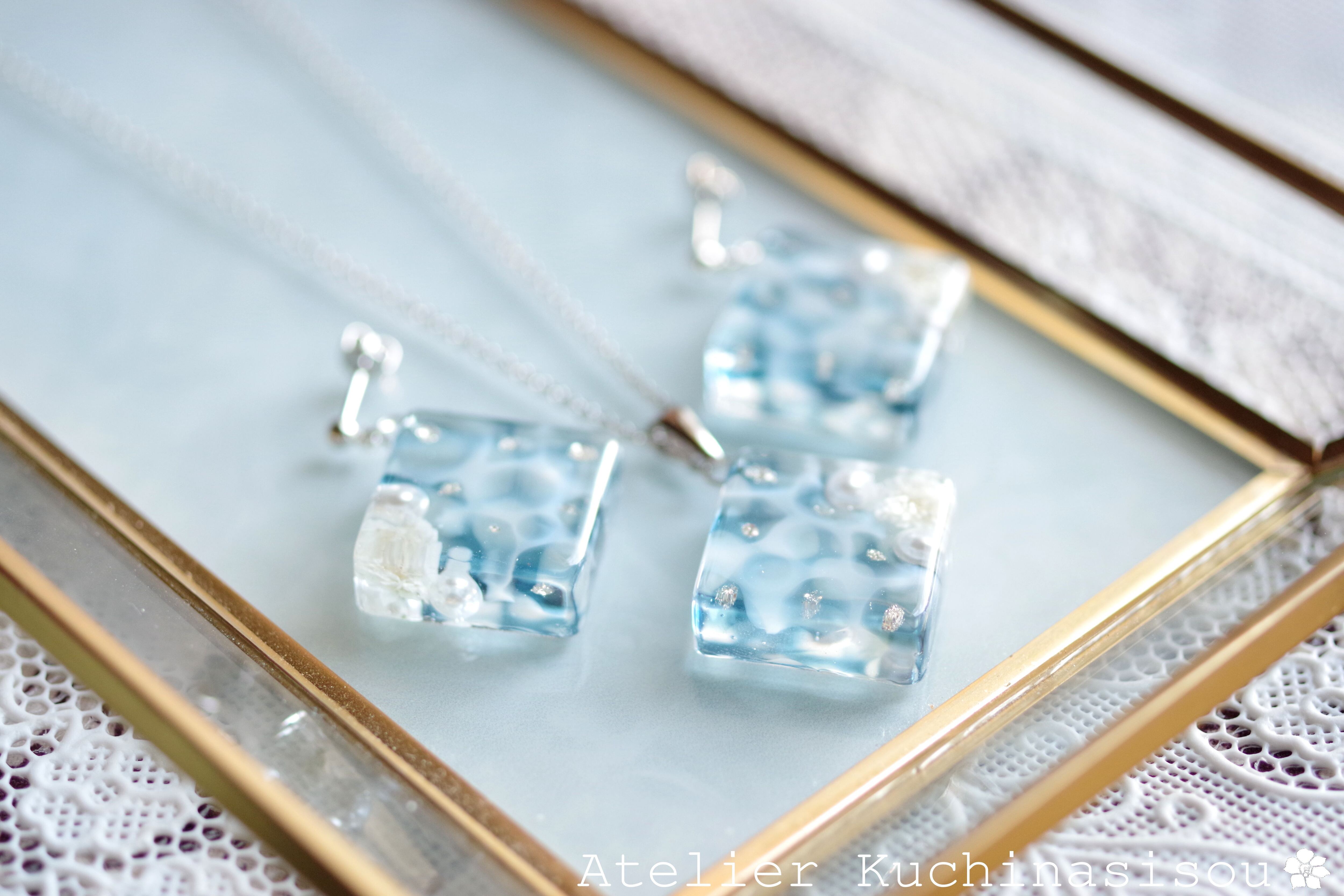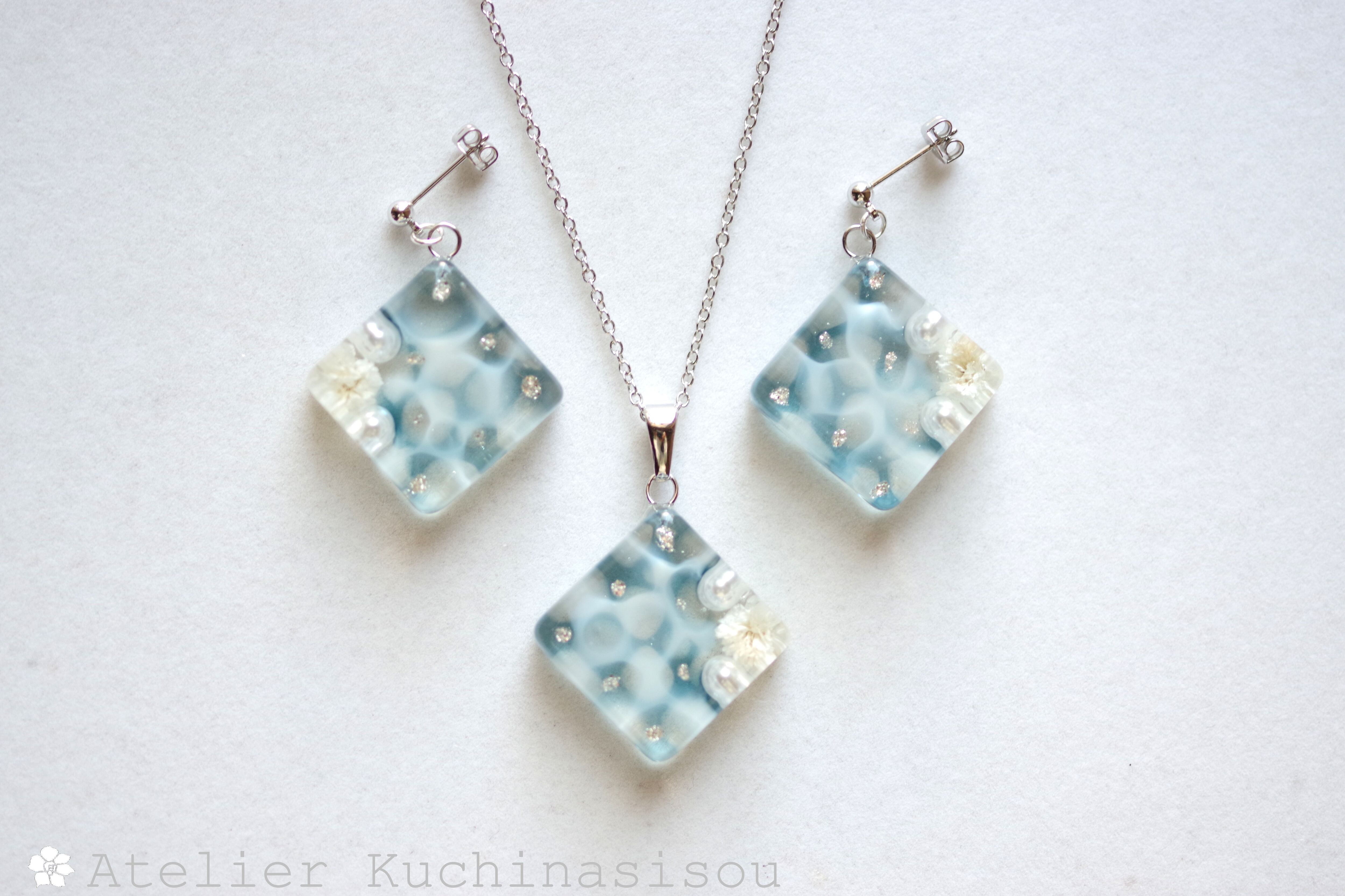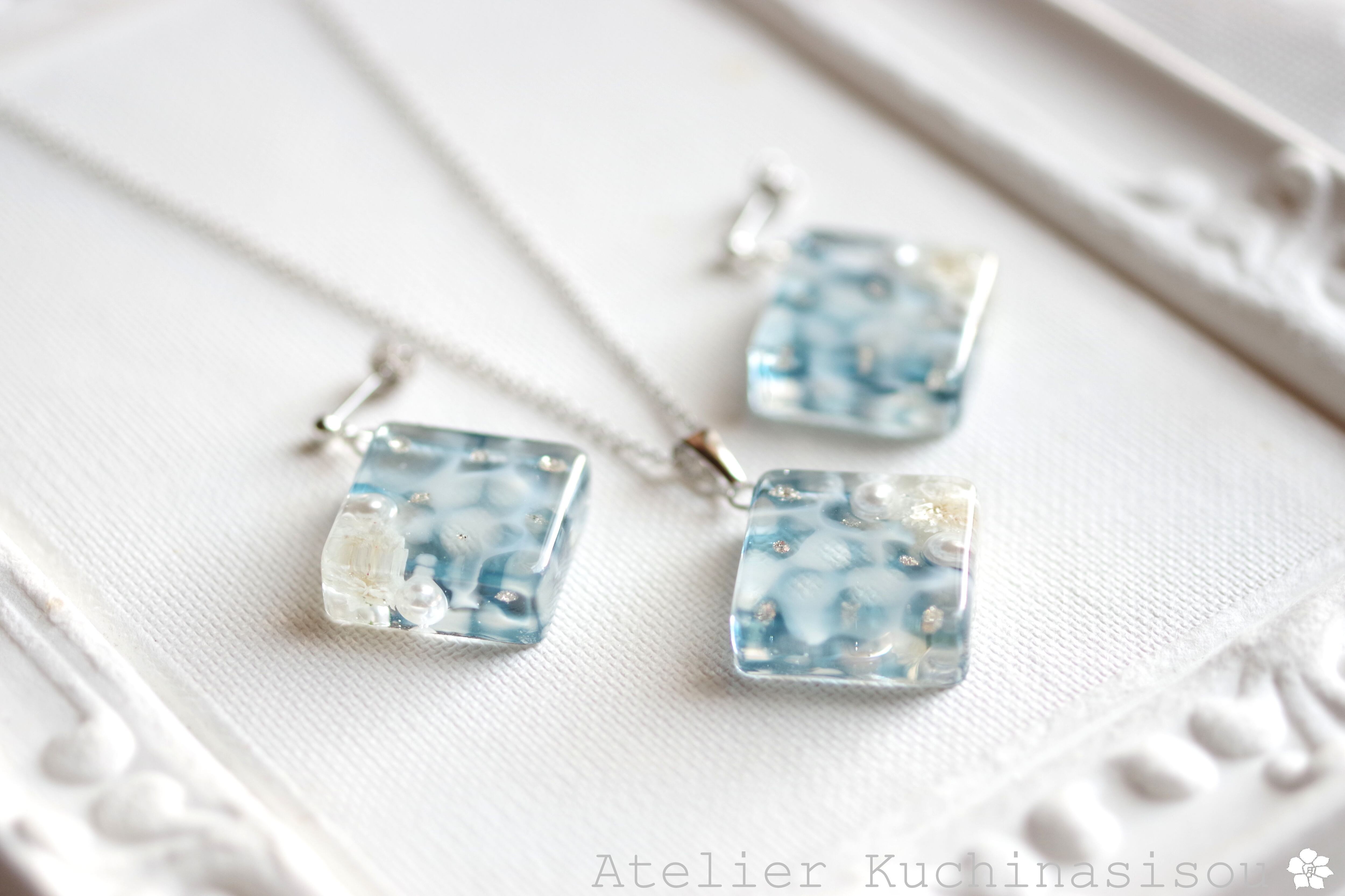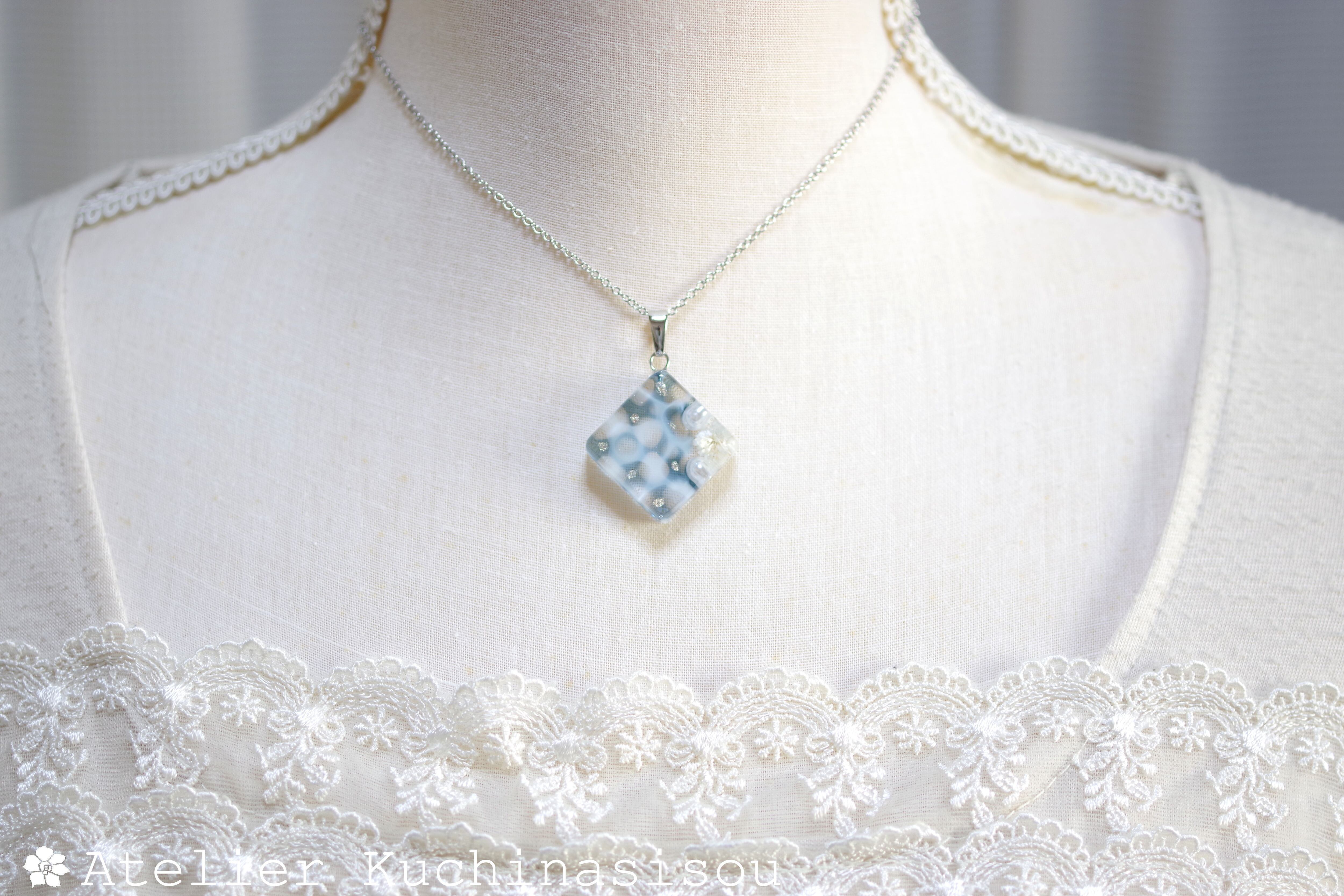 レジンアート スクエアペンダント〈水紋・コバルトブルー〉