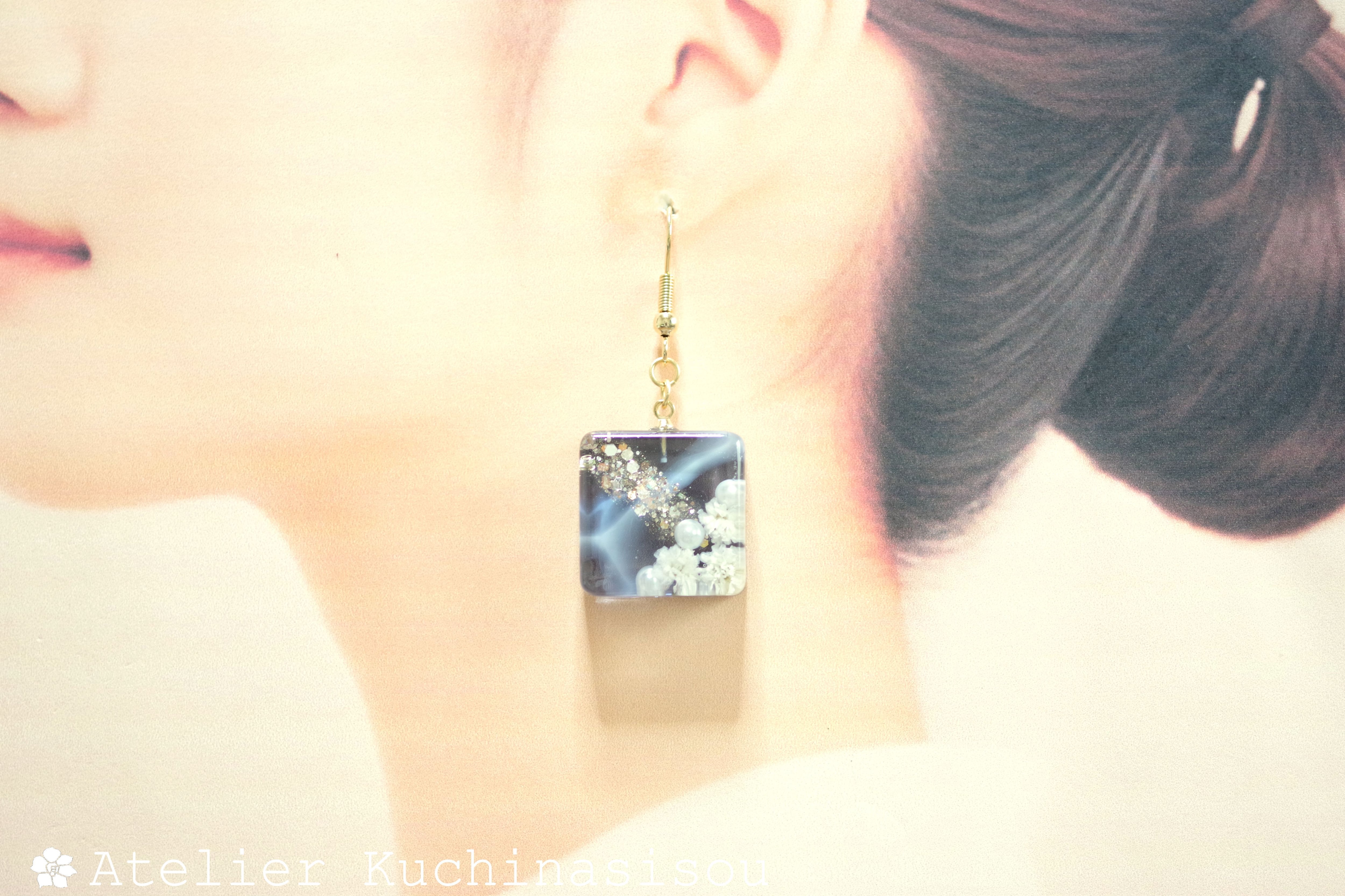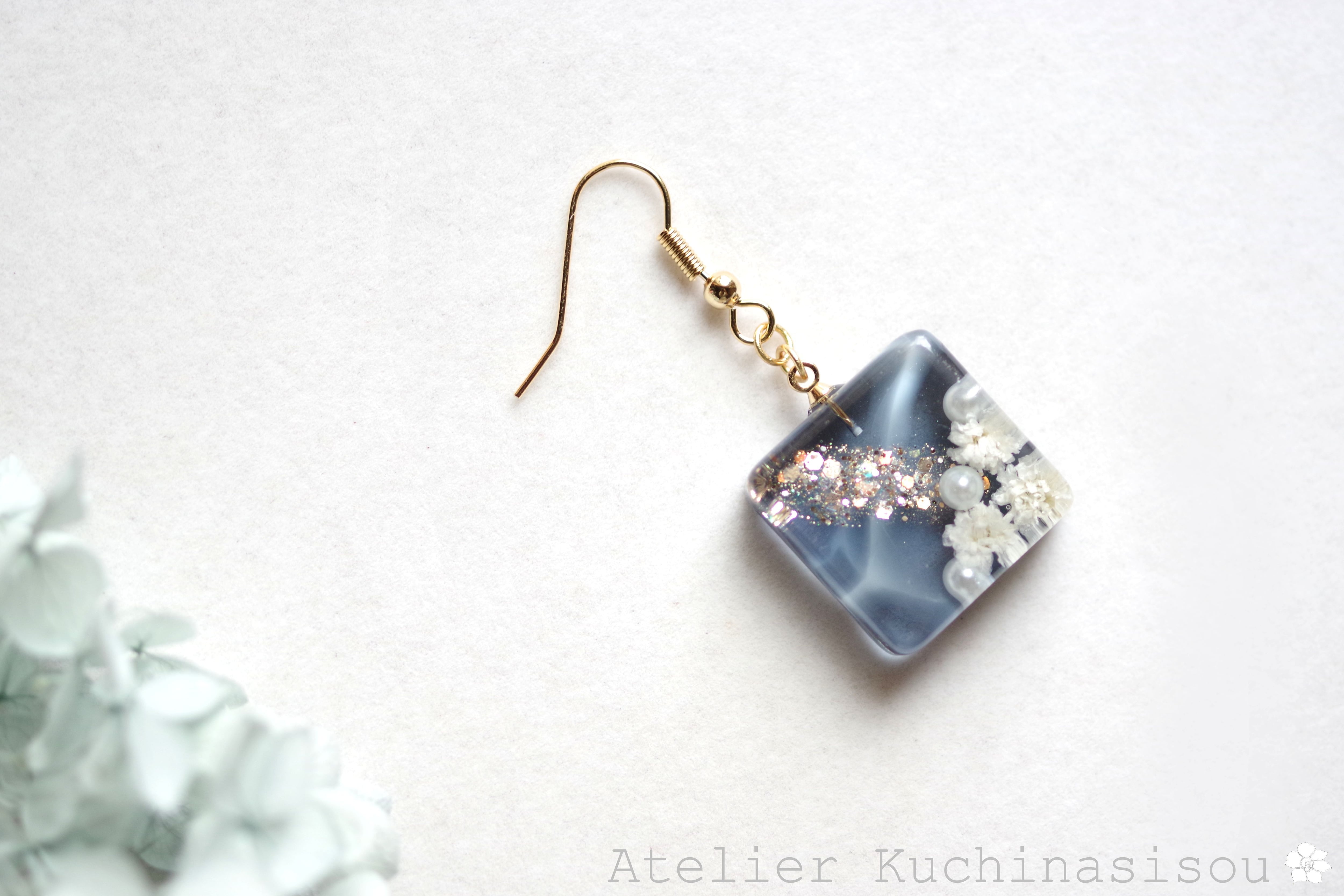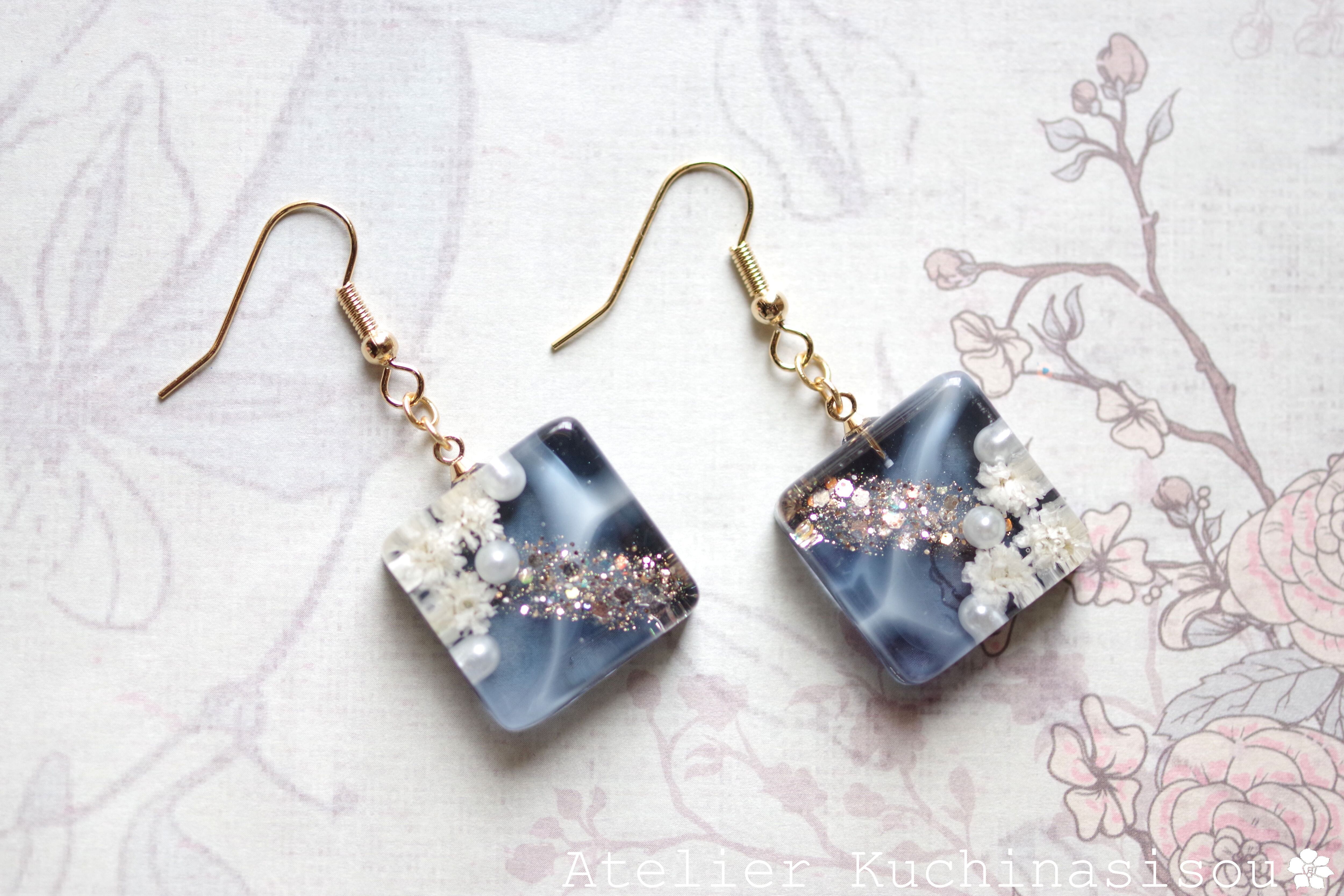 レジンでスクエアピアスを作りました♪