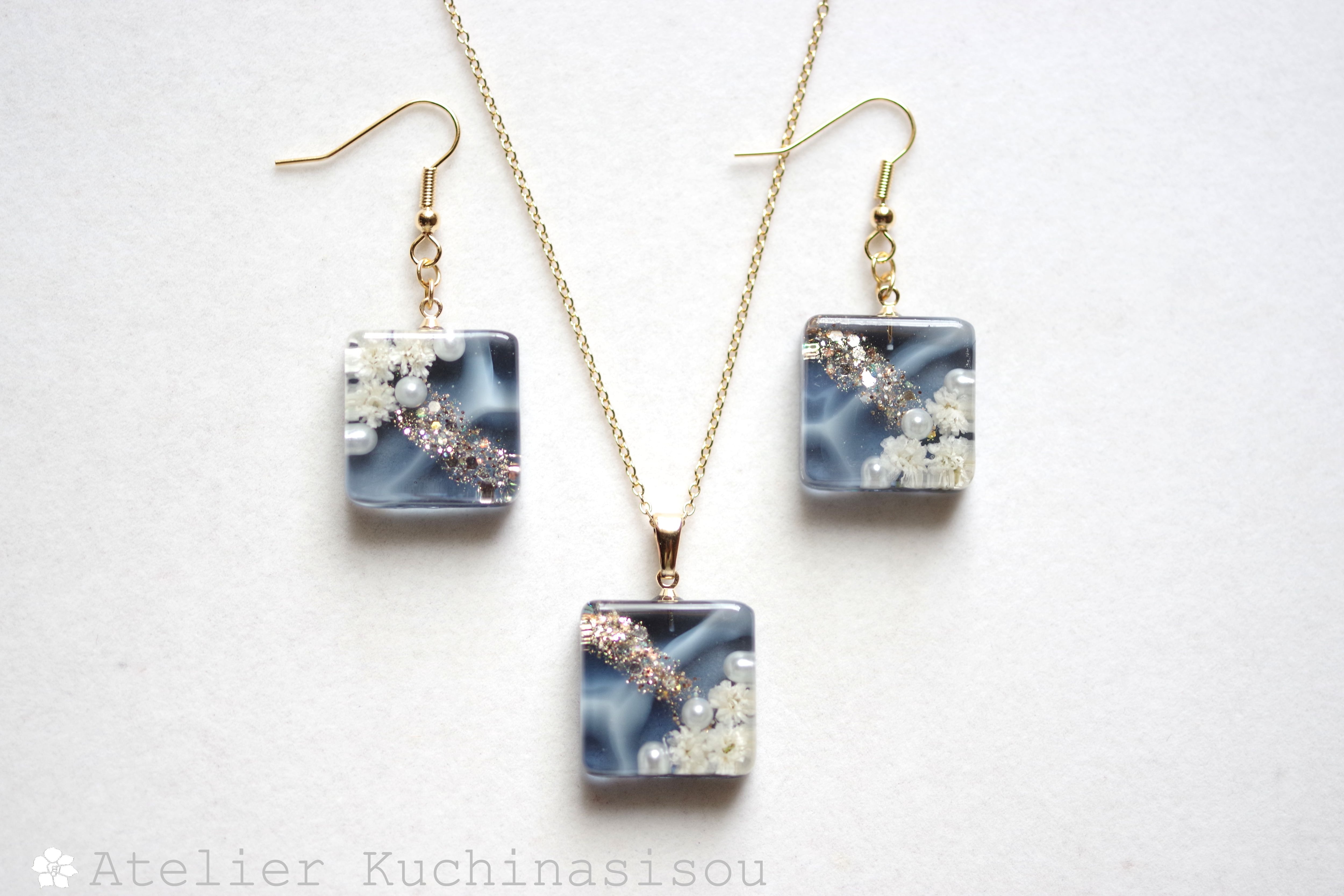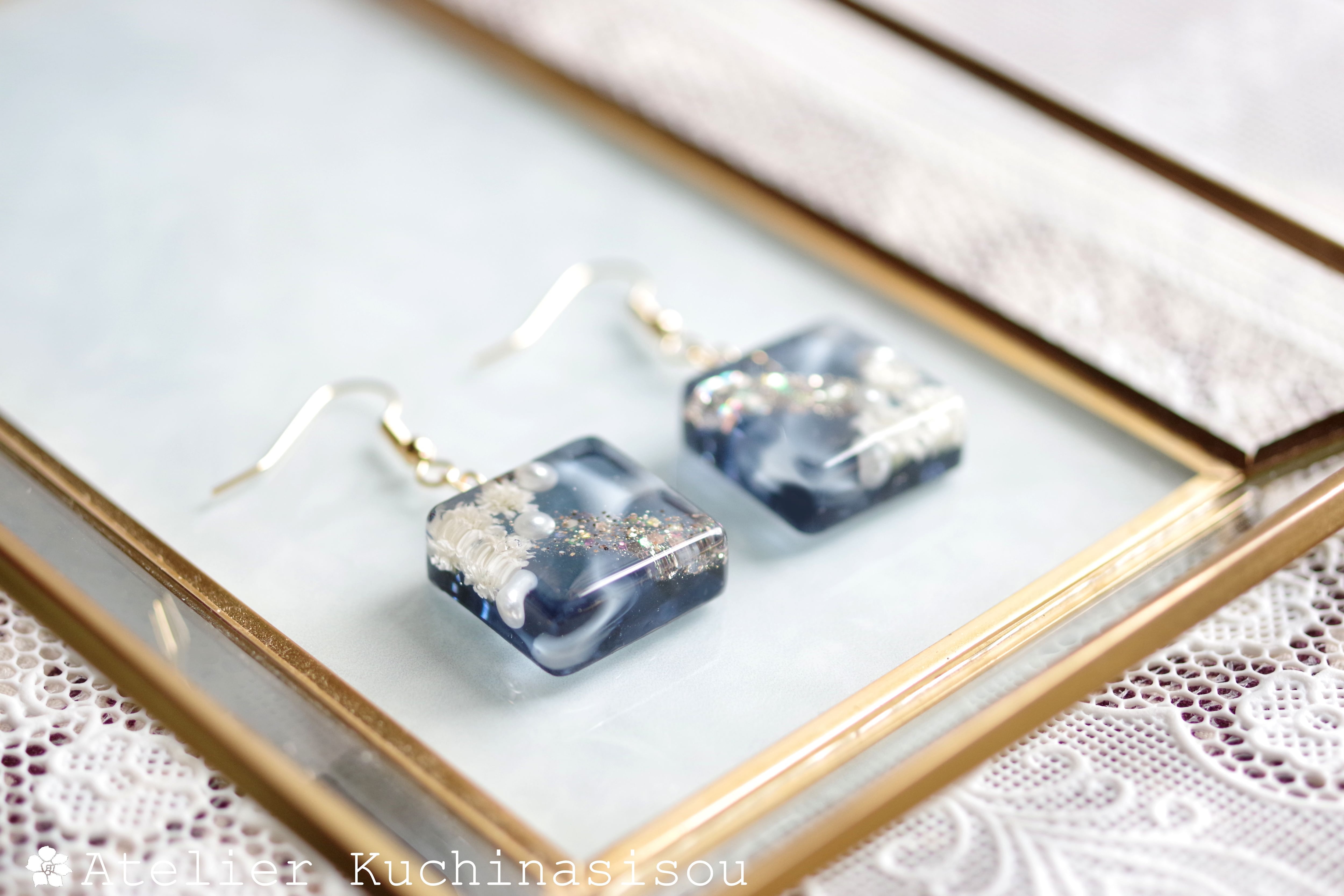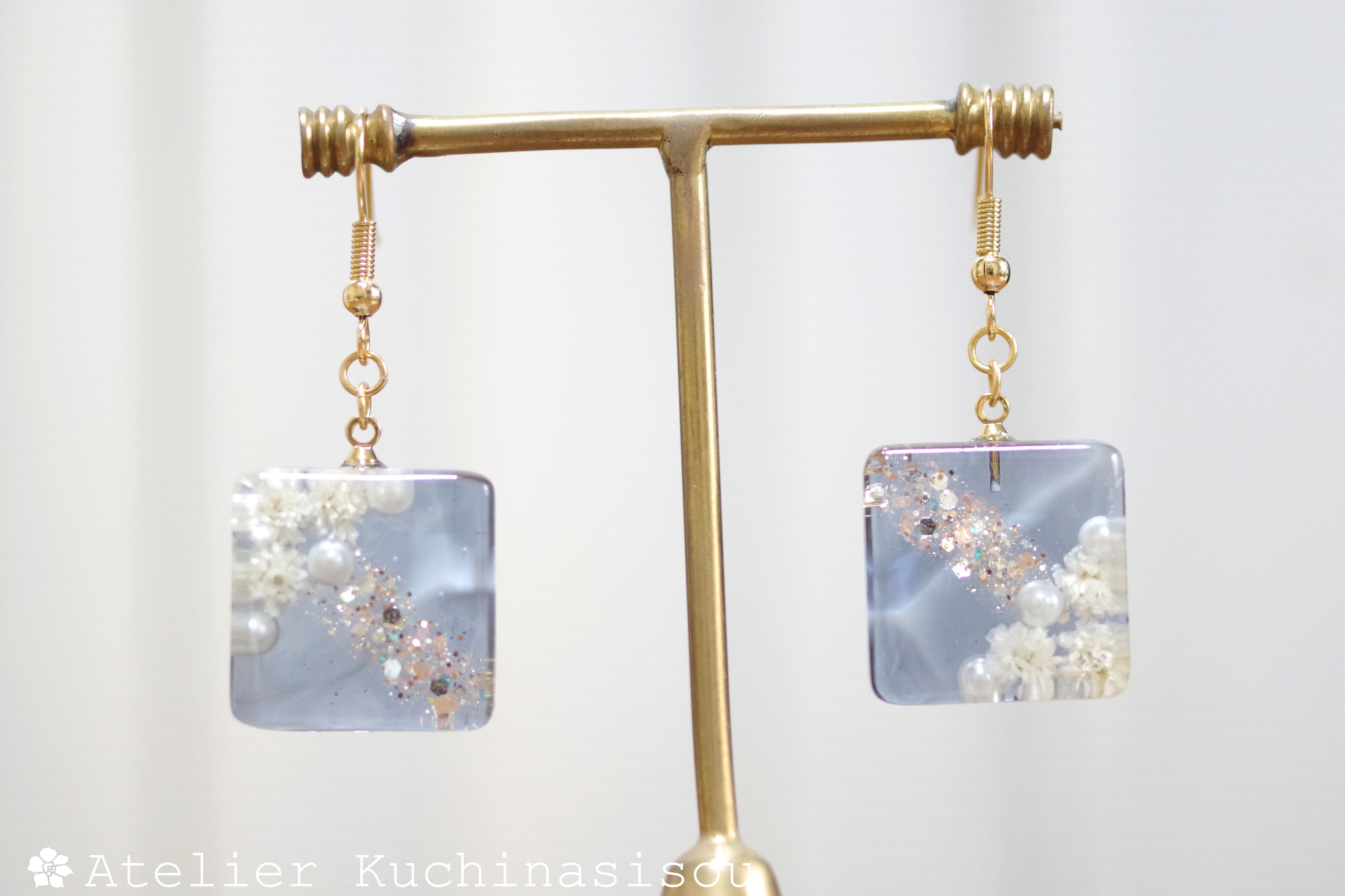 レジンでスクエアピアスを作りました♪