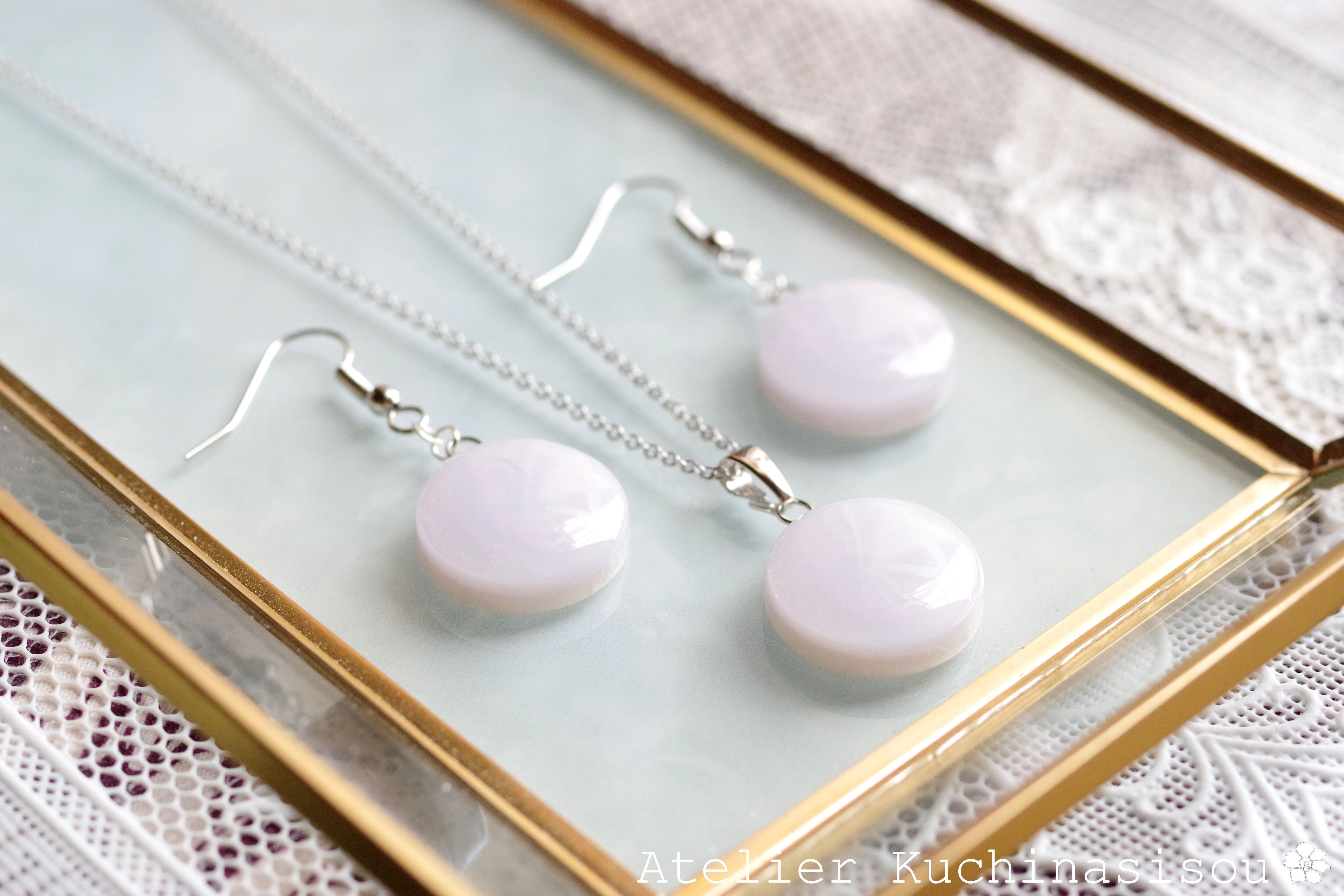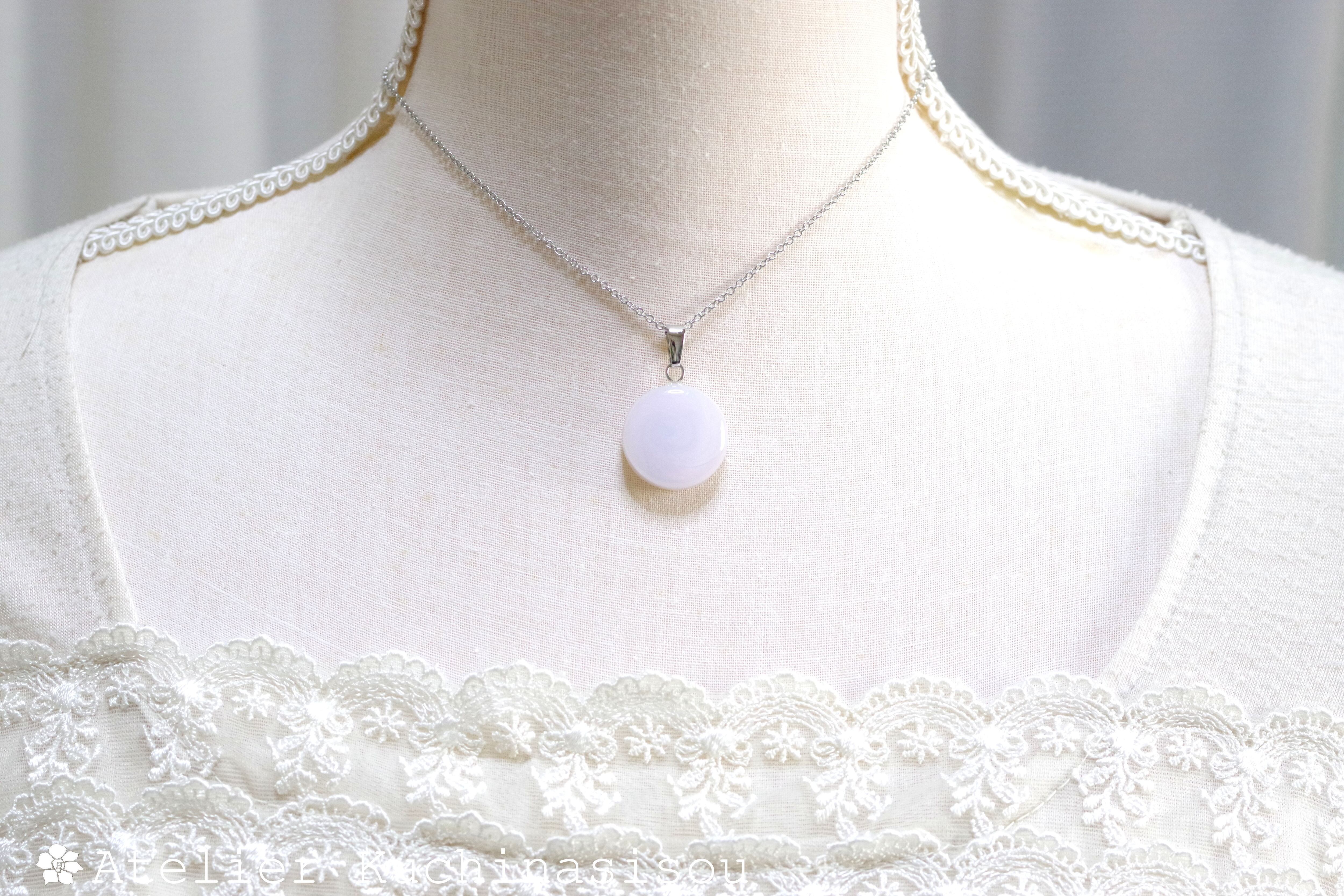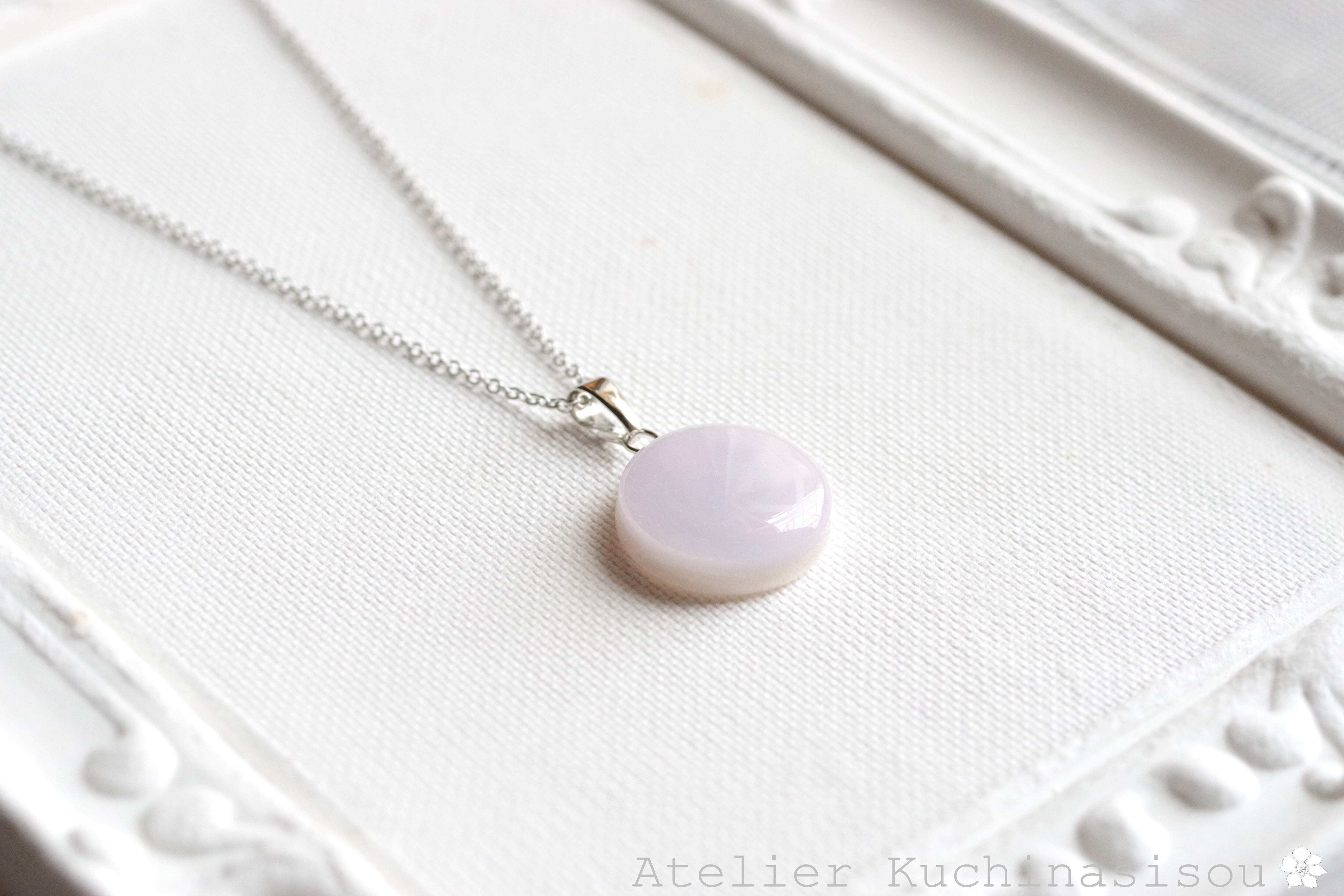 三種類の淡い淡いパープルのマーブル模様が、まるでなめらかな陶器を思わせるペンダント。