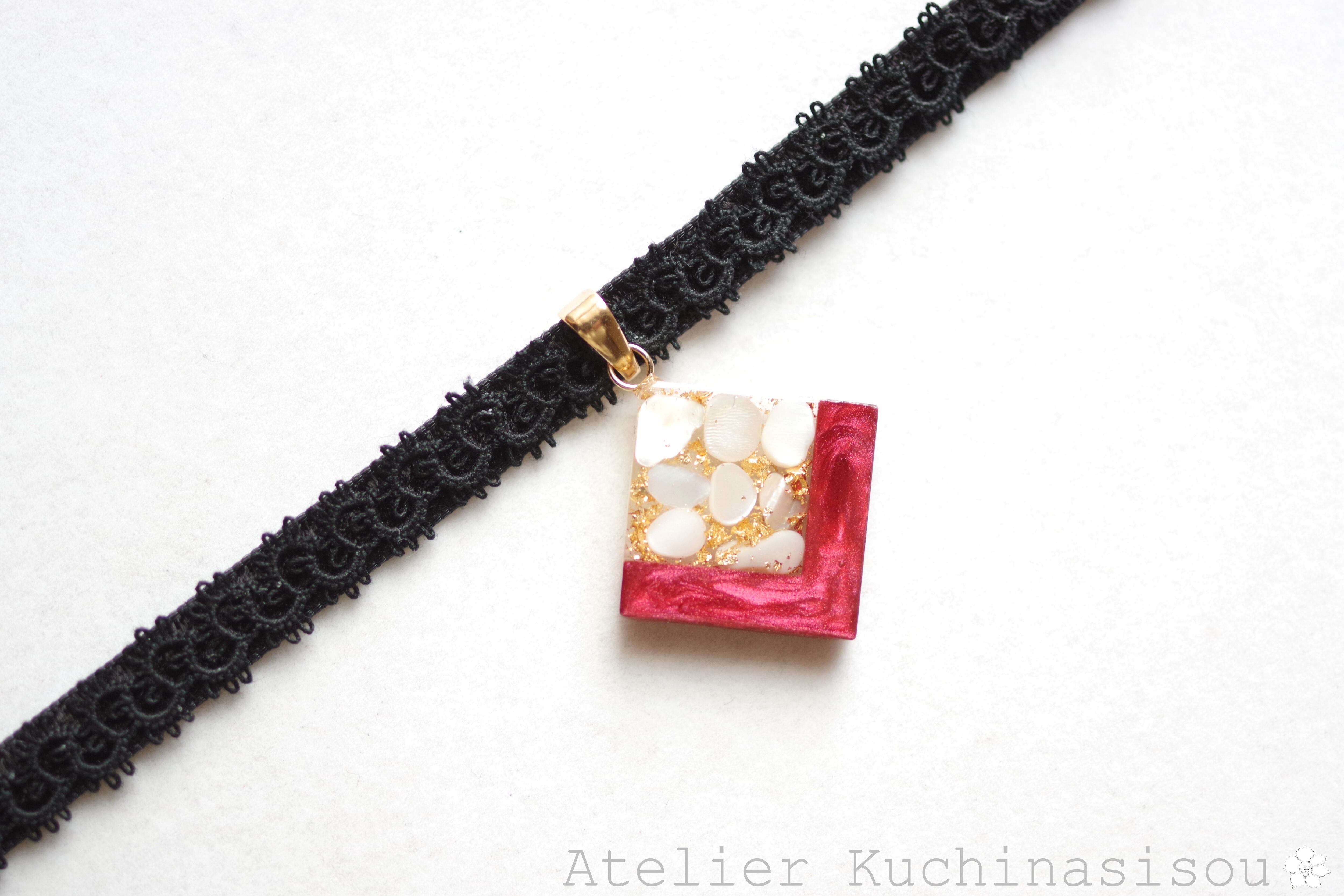 レジンでスクエアモチーフのチョーカーを作りました♪