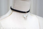 【受注製作】レジンアート ラウンドモチーフとタティングレースとベルベットリボンのチョーカー〈眠花〉