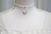 【受注製作】レジンアート ラウンドモチーフとタティングレースとサテンリボンのチョーカー〈眠花〉