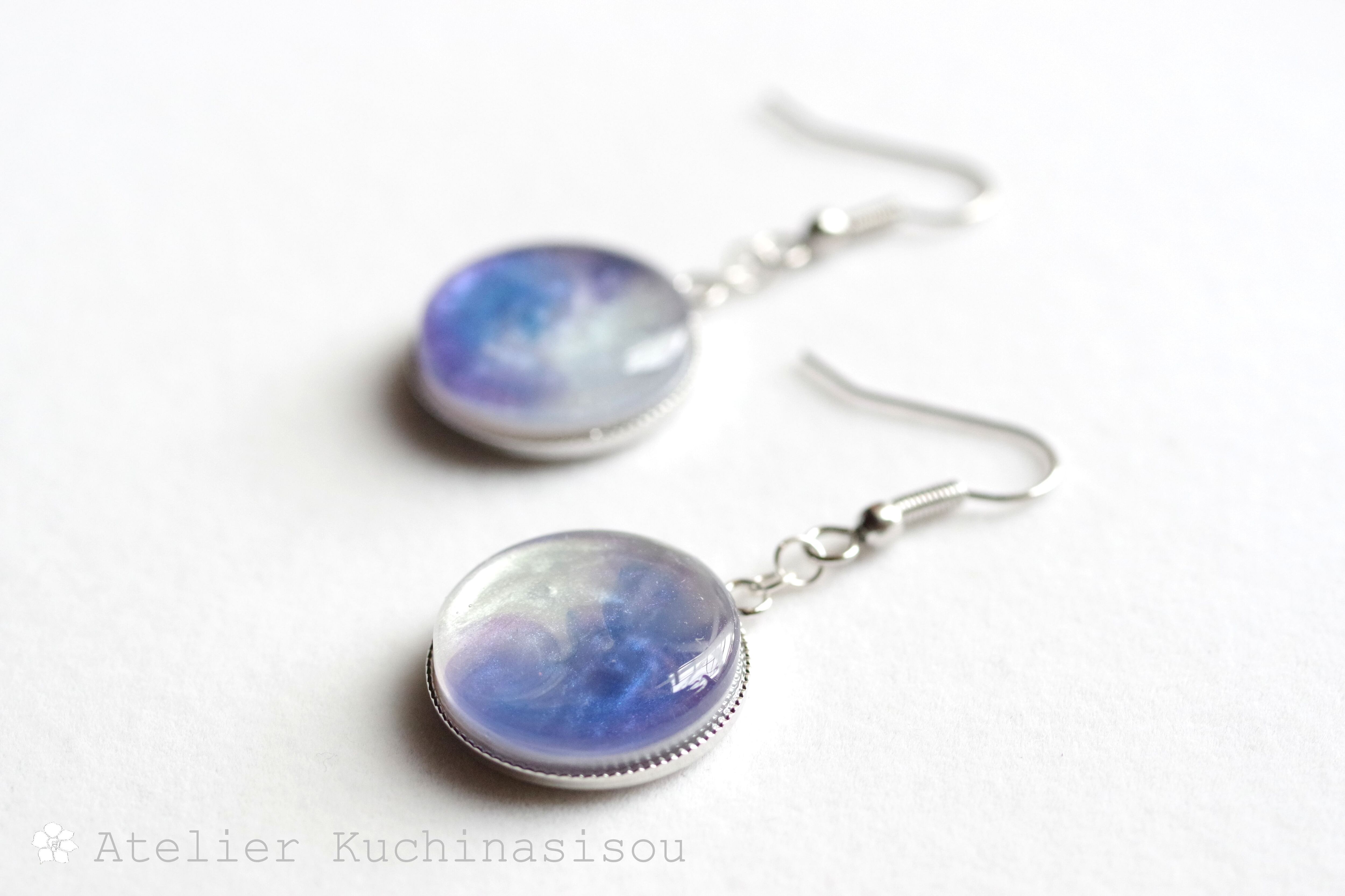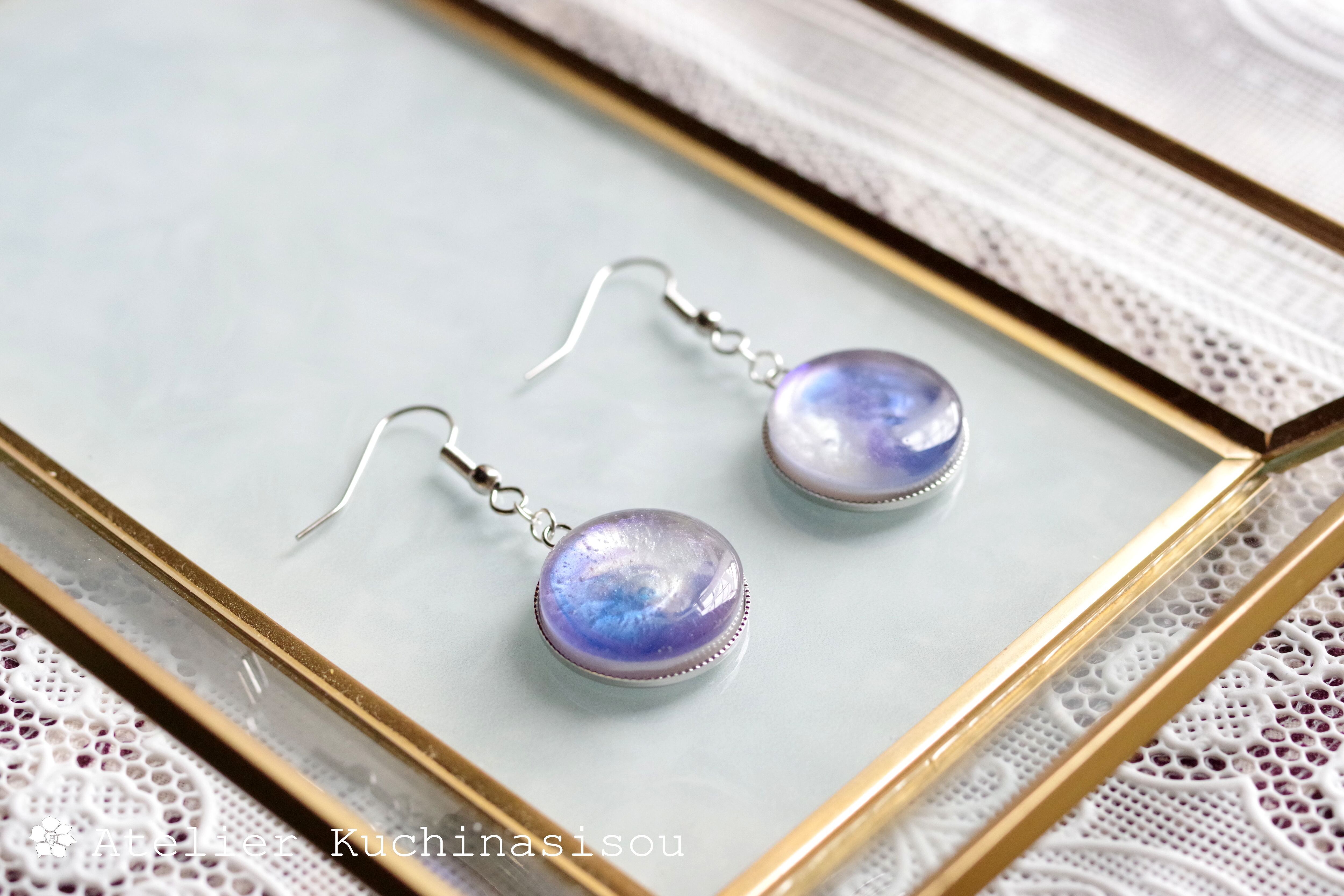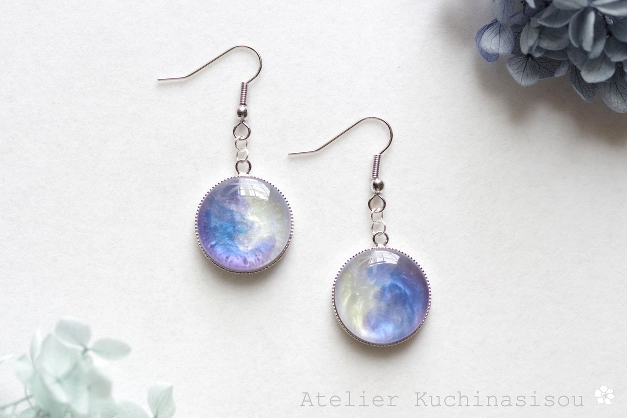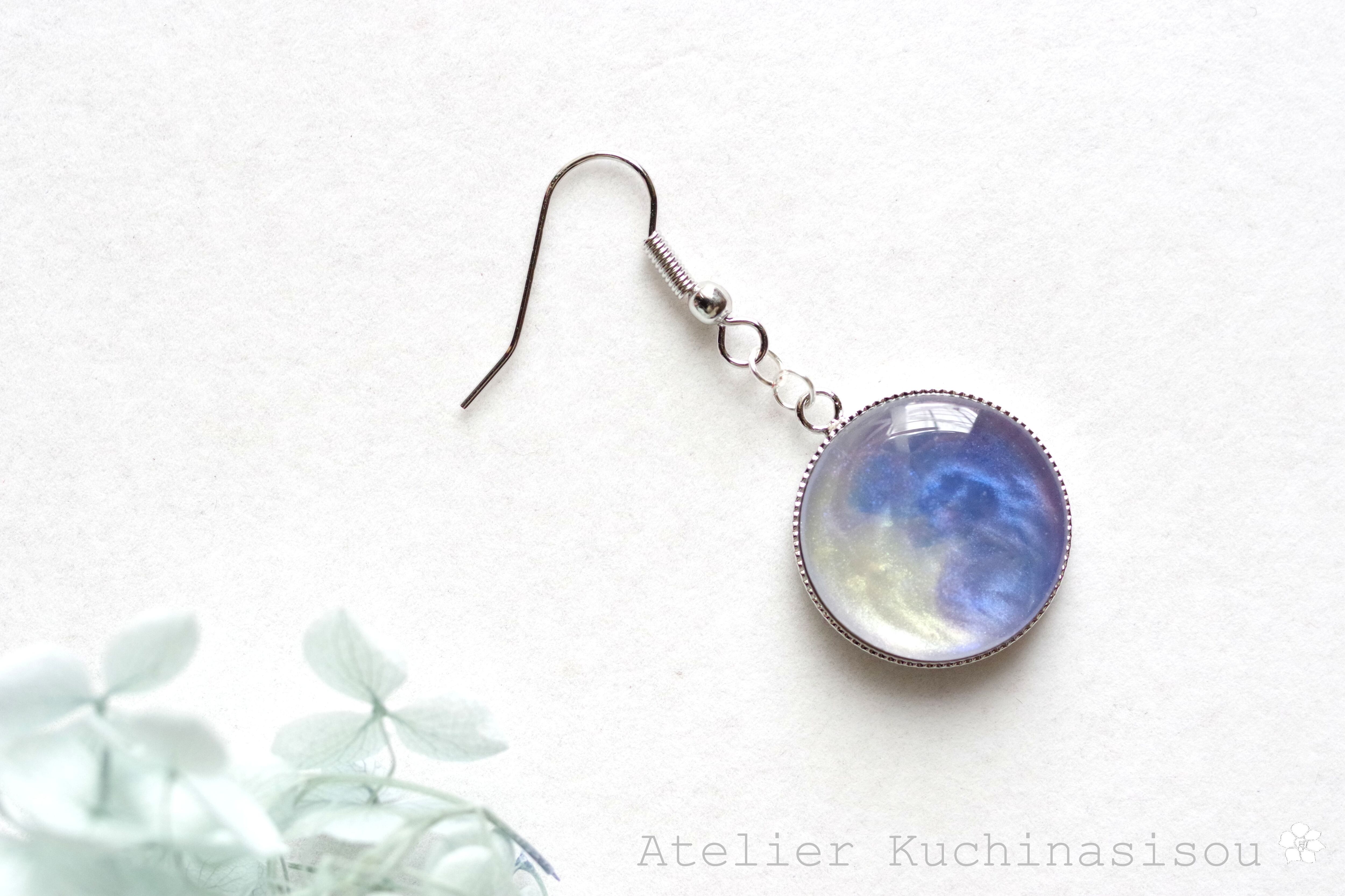 レジンアート ラウンドピアス〈夜明けの手紙〉