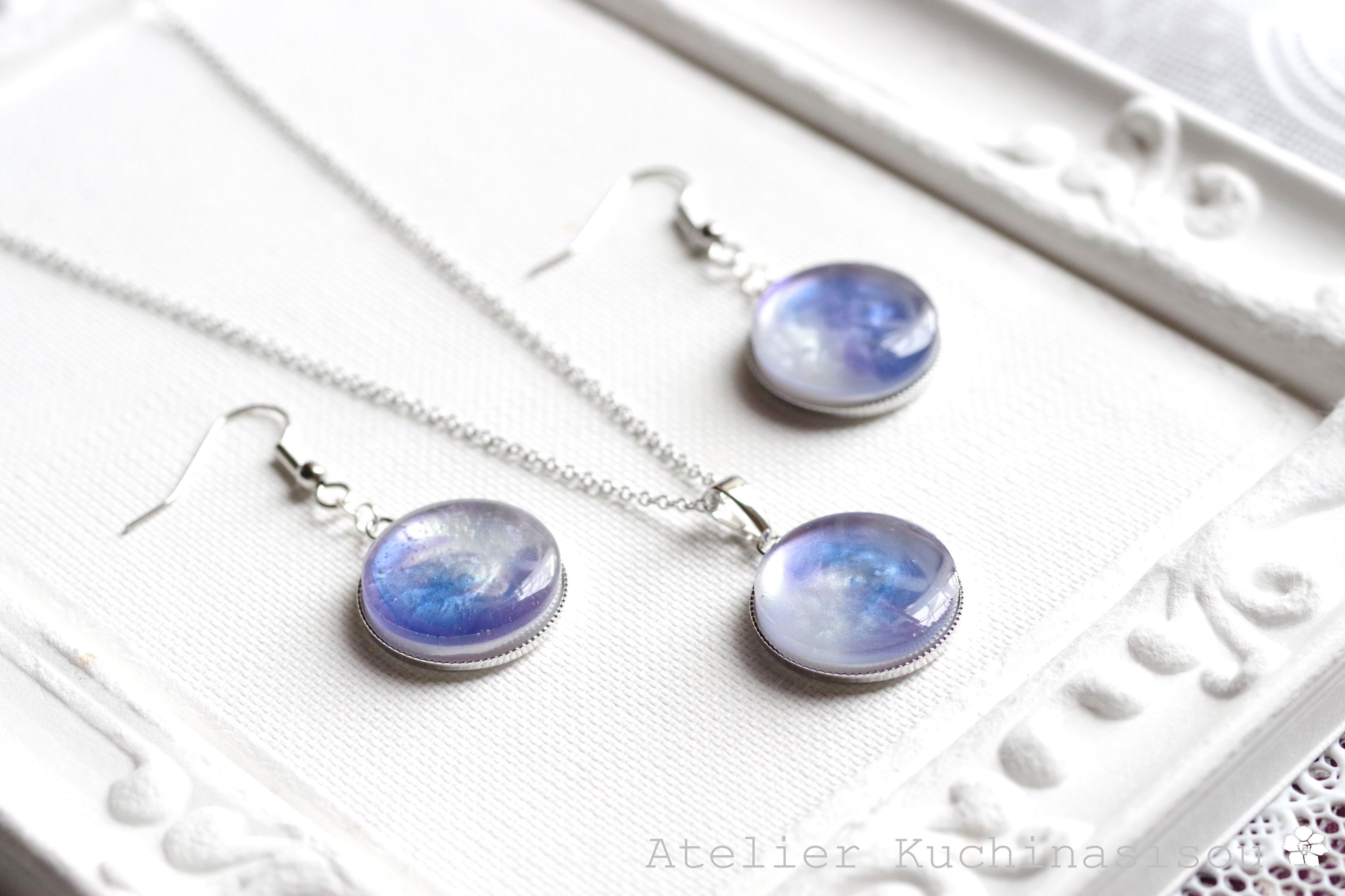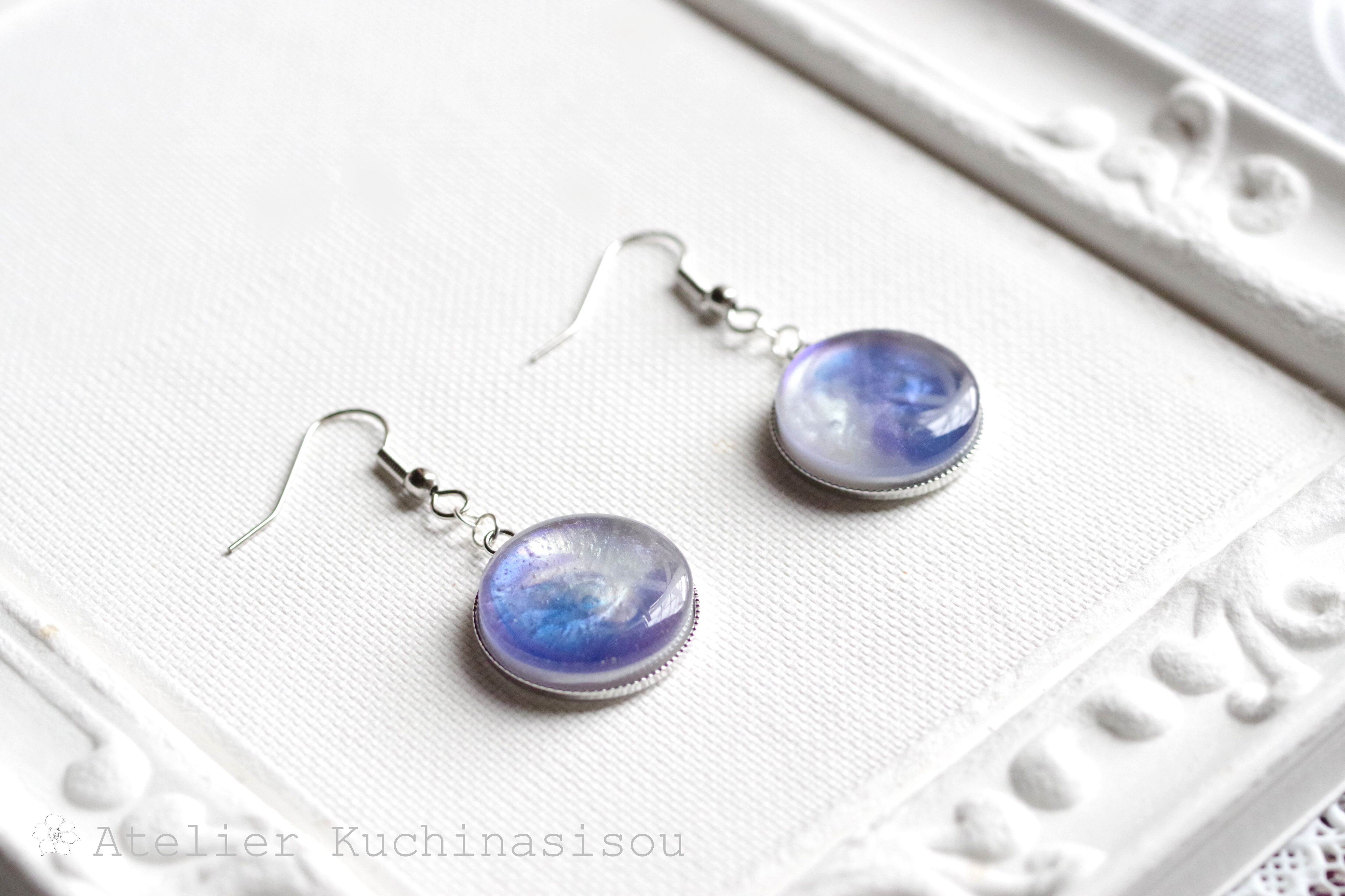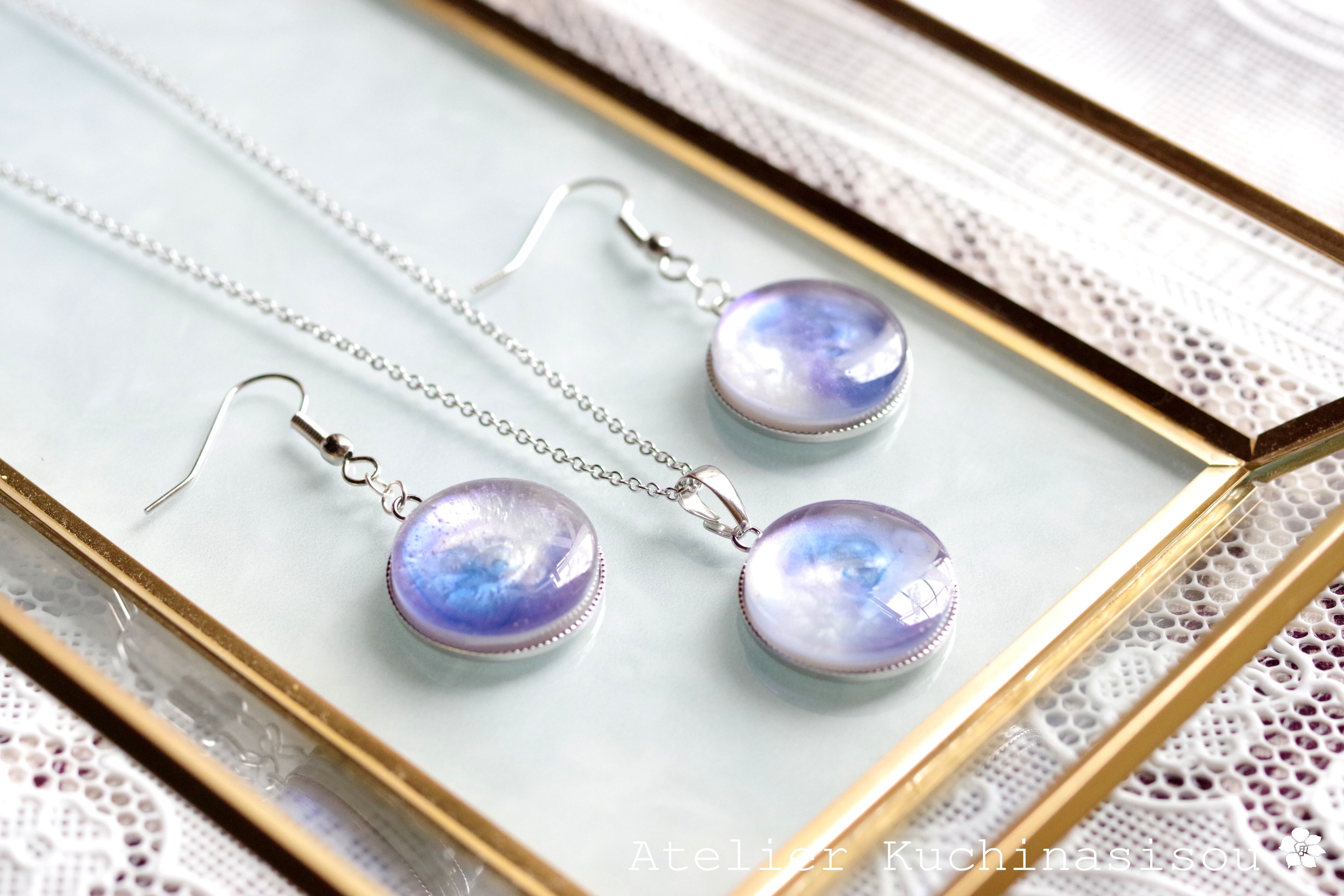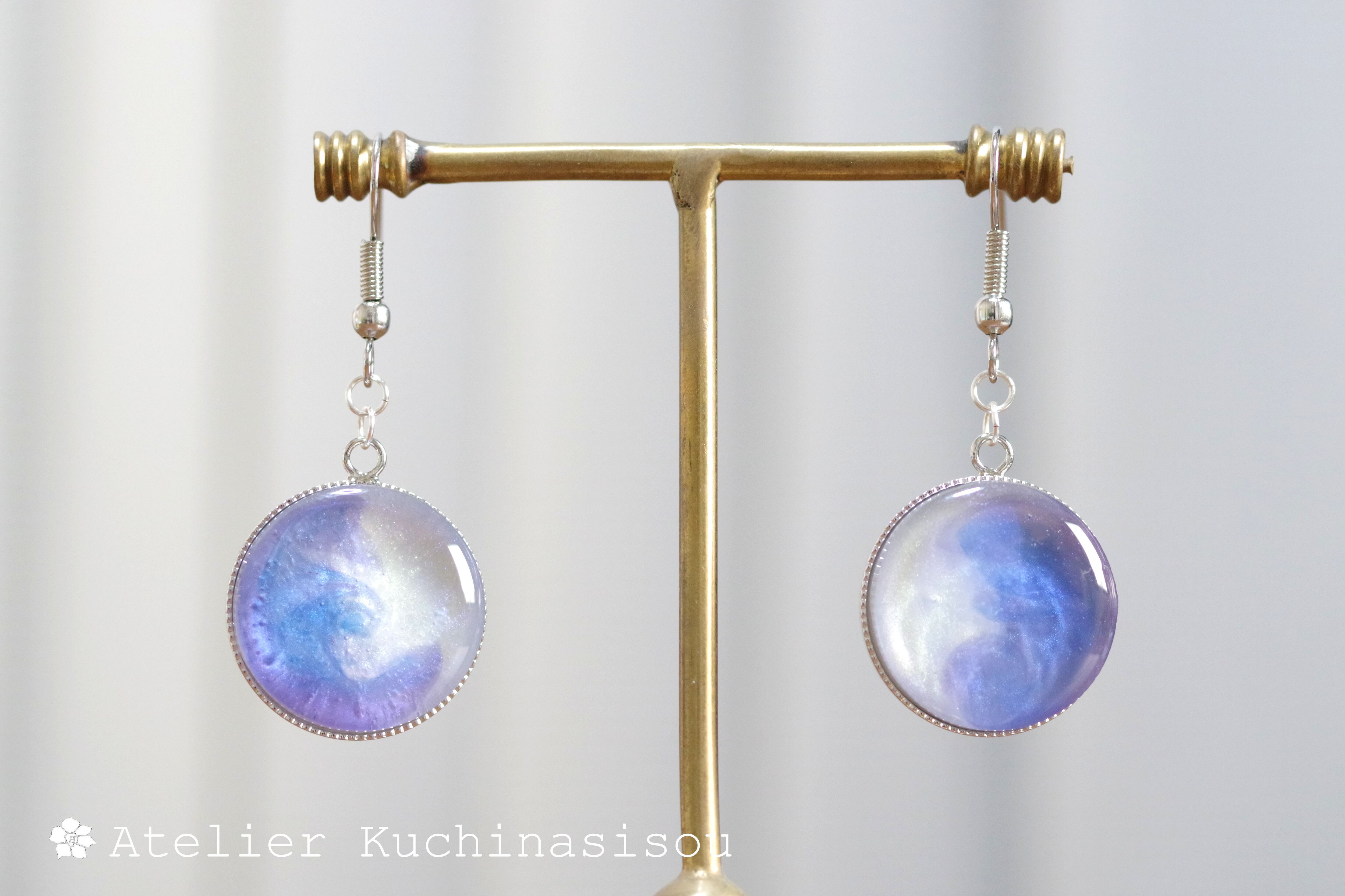 レジンアート ラウンドピアス〈夜明けの手紙〉