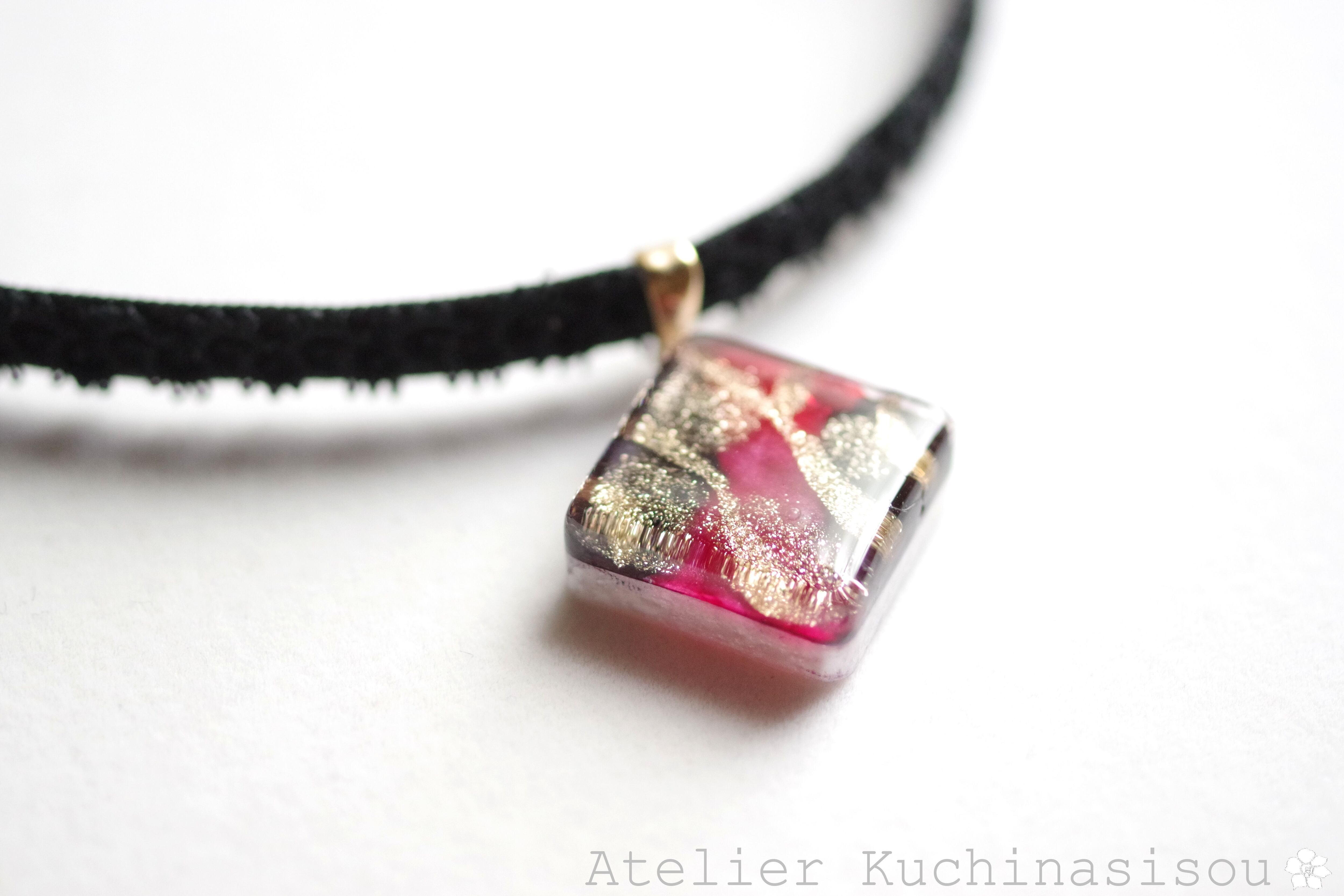 レジンでスクエアモチーフのチョーカーを作りました♪