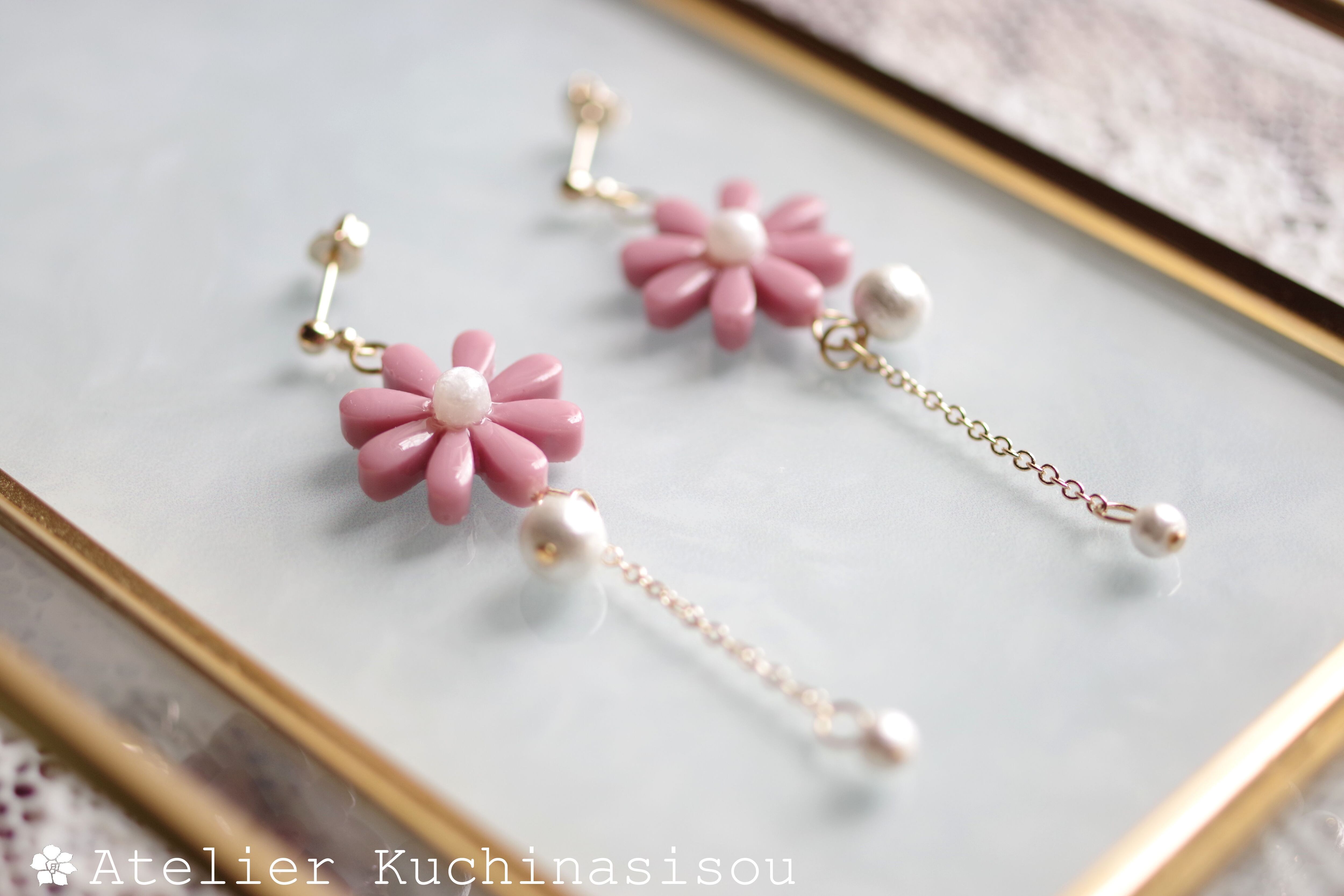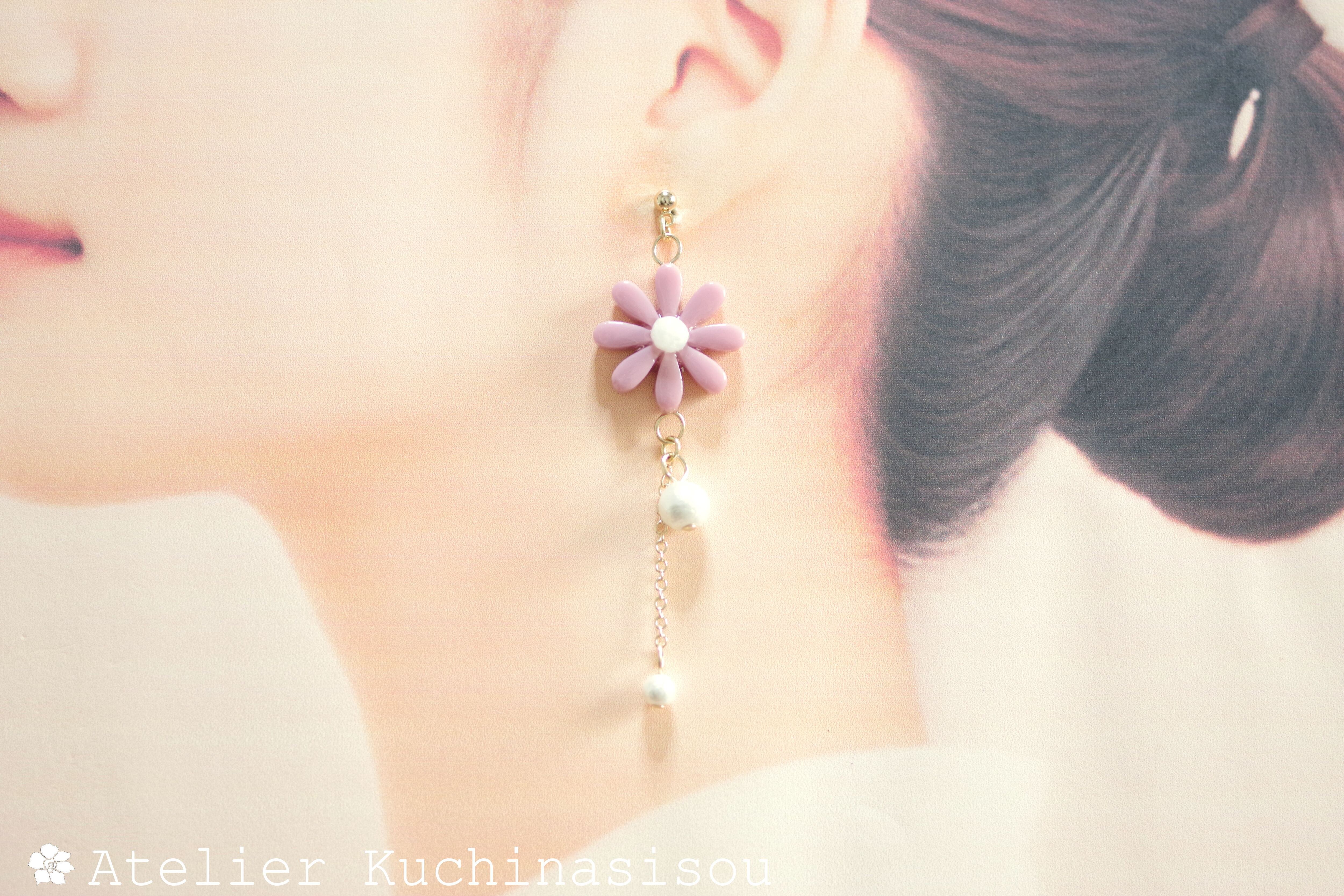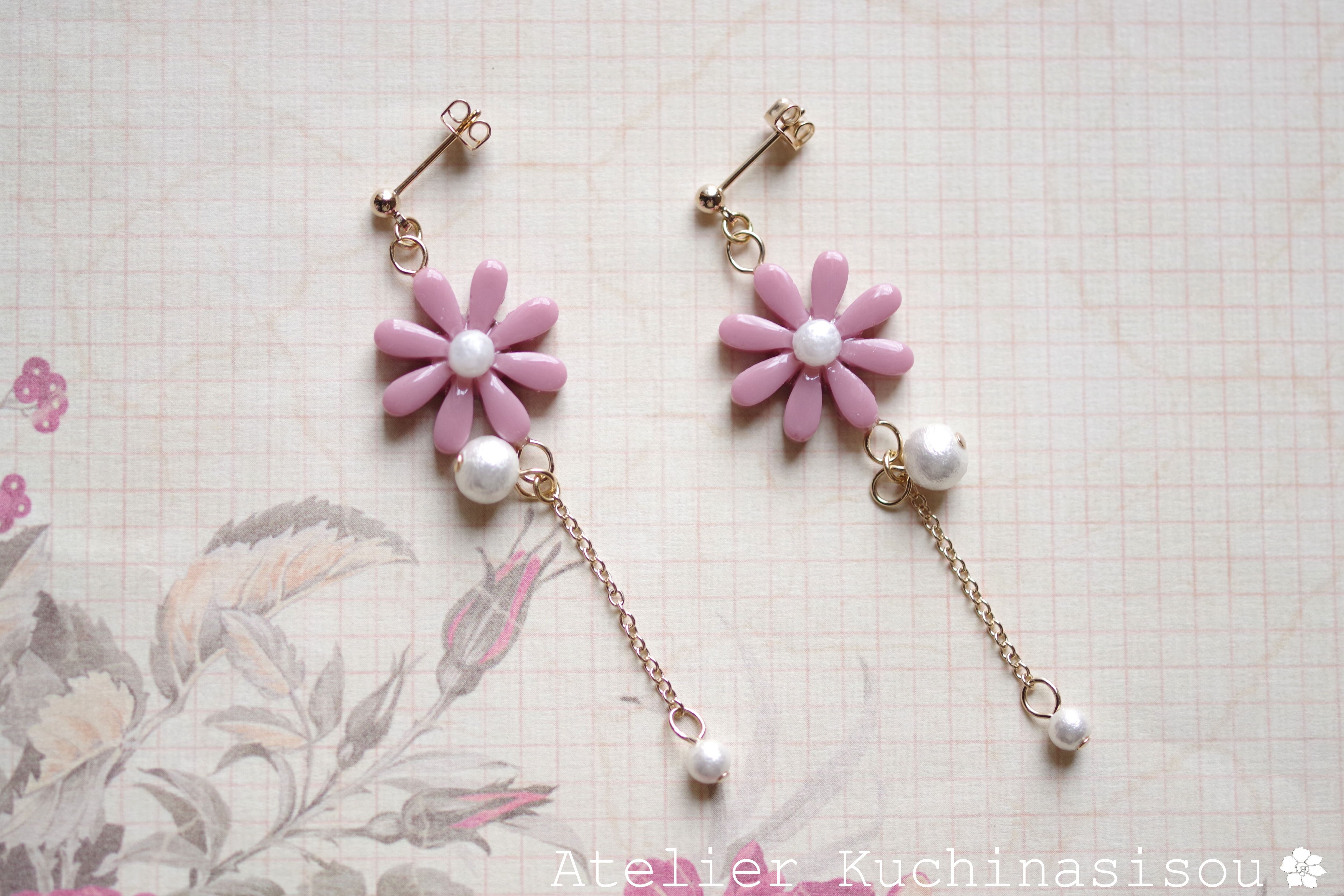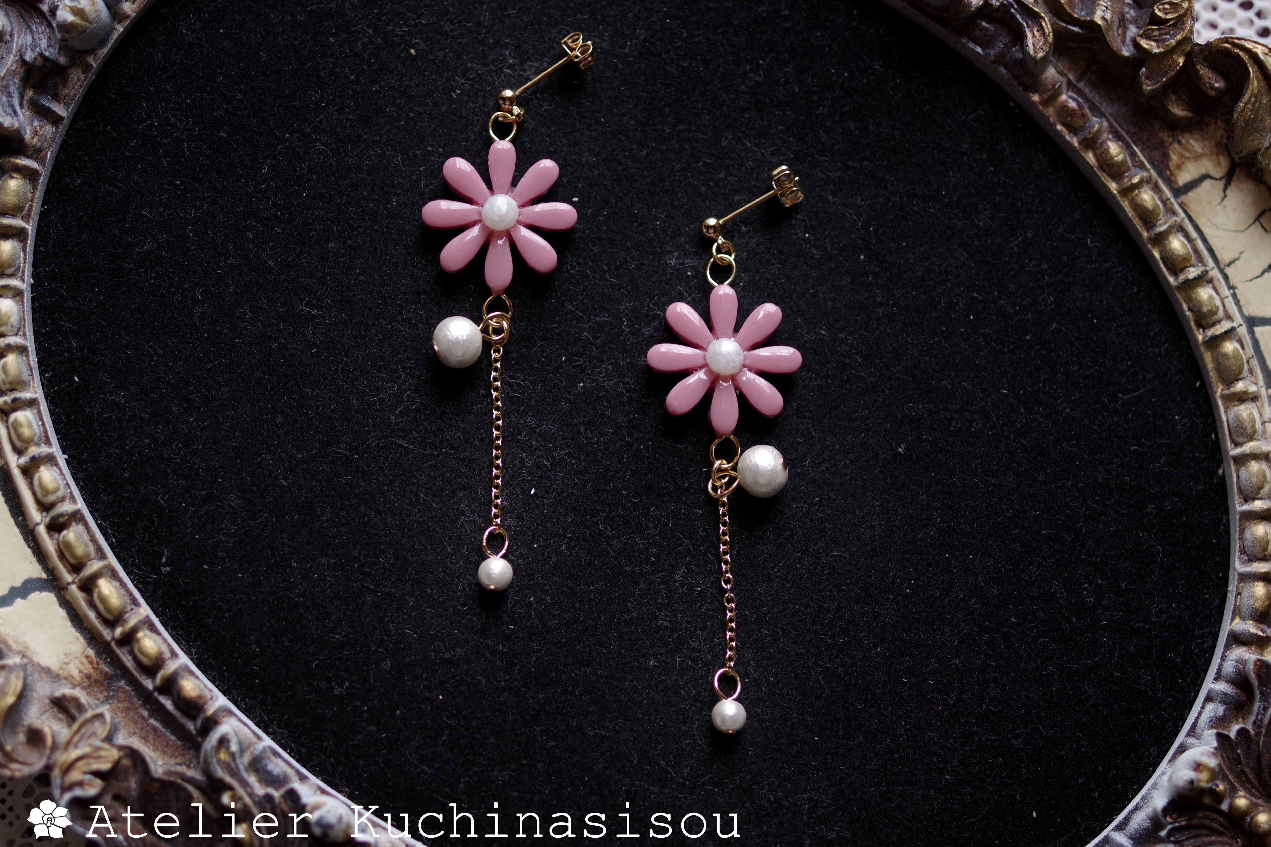 レジンアート お花とコットンパールのピアス〈愛を乞う〉