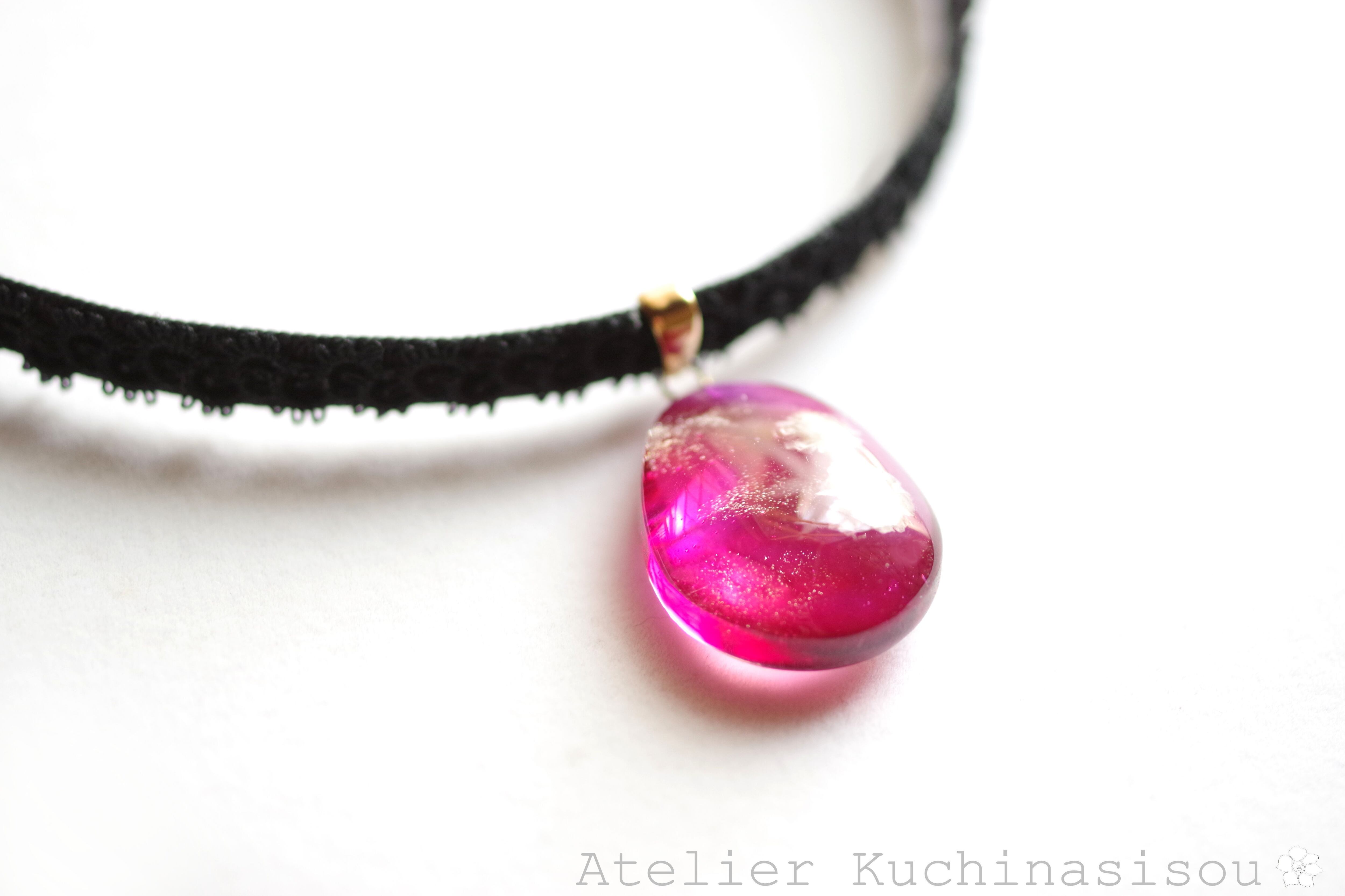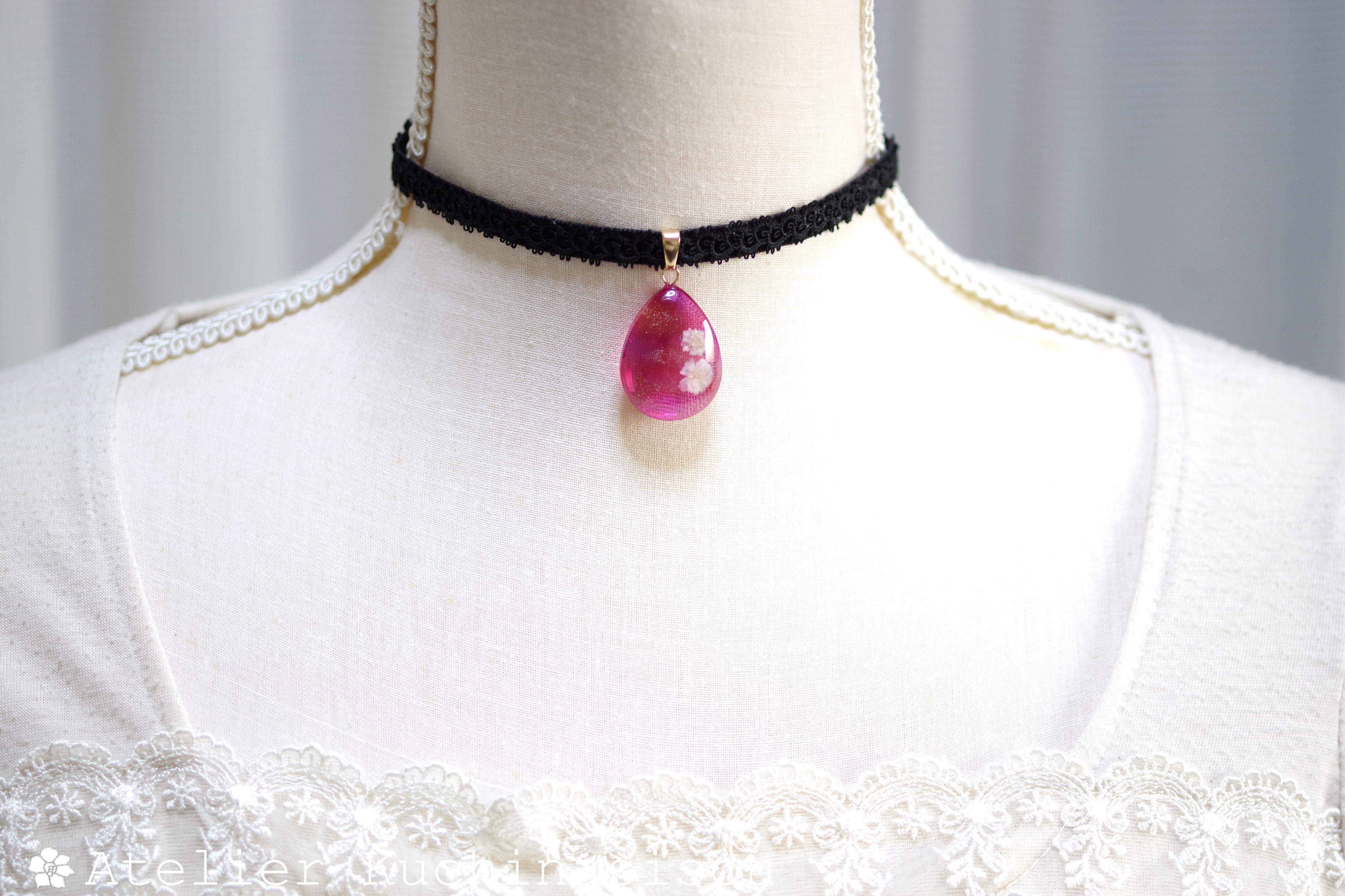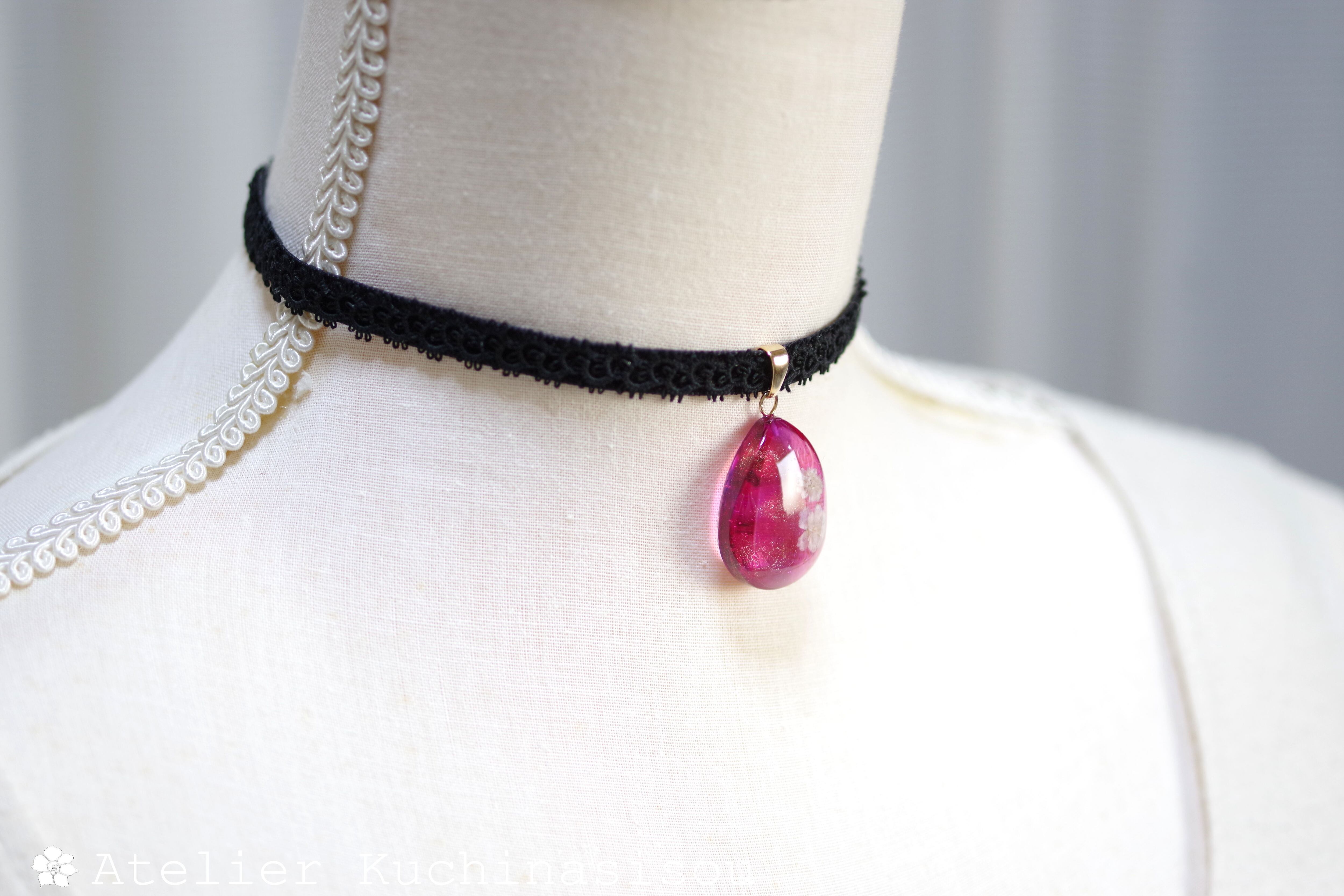 【受注製作】レジンアート ドロップモチーフとタティングレースとベルベットリボンのチョーカー〈彷徨う小指〉