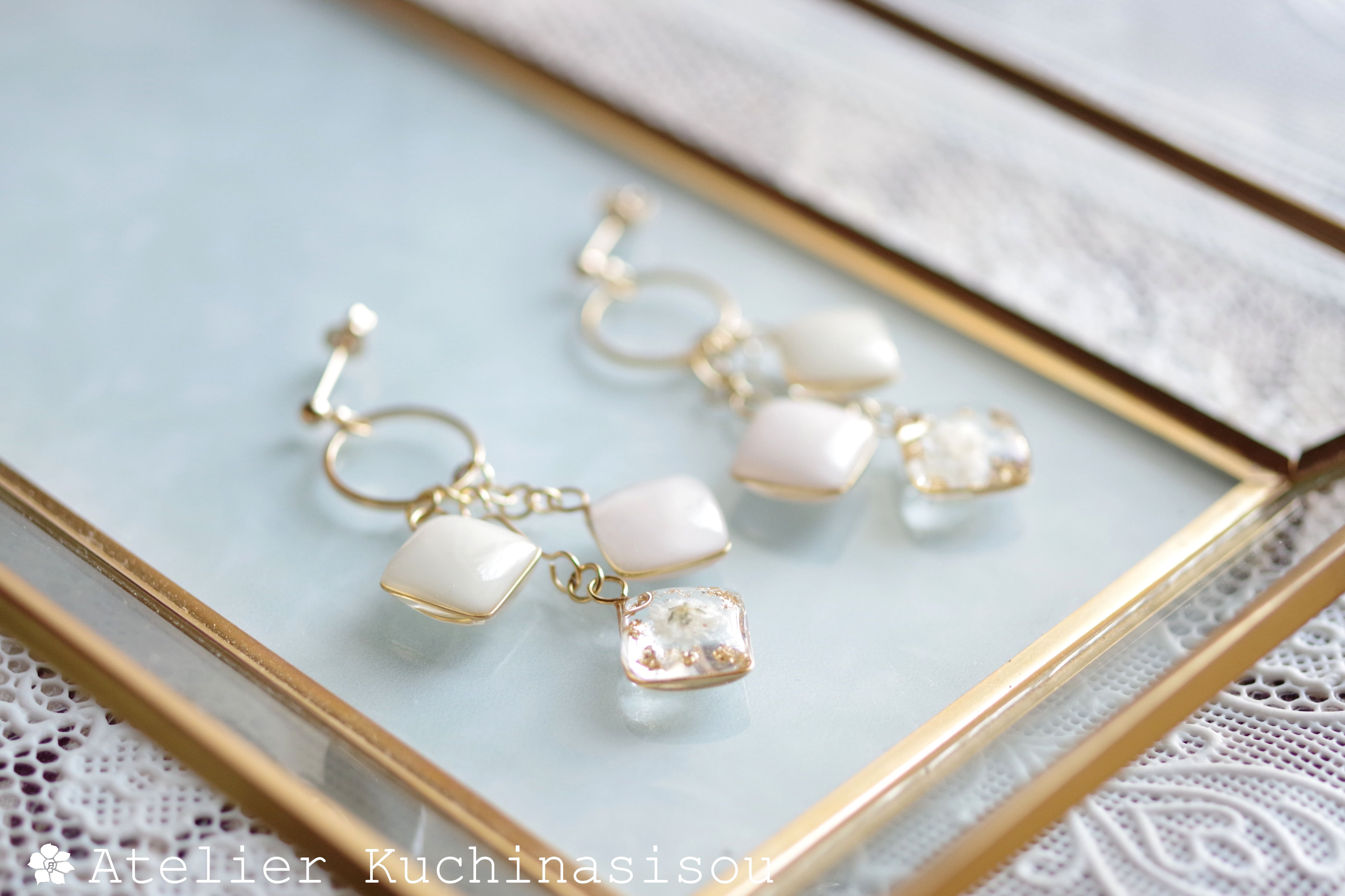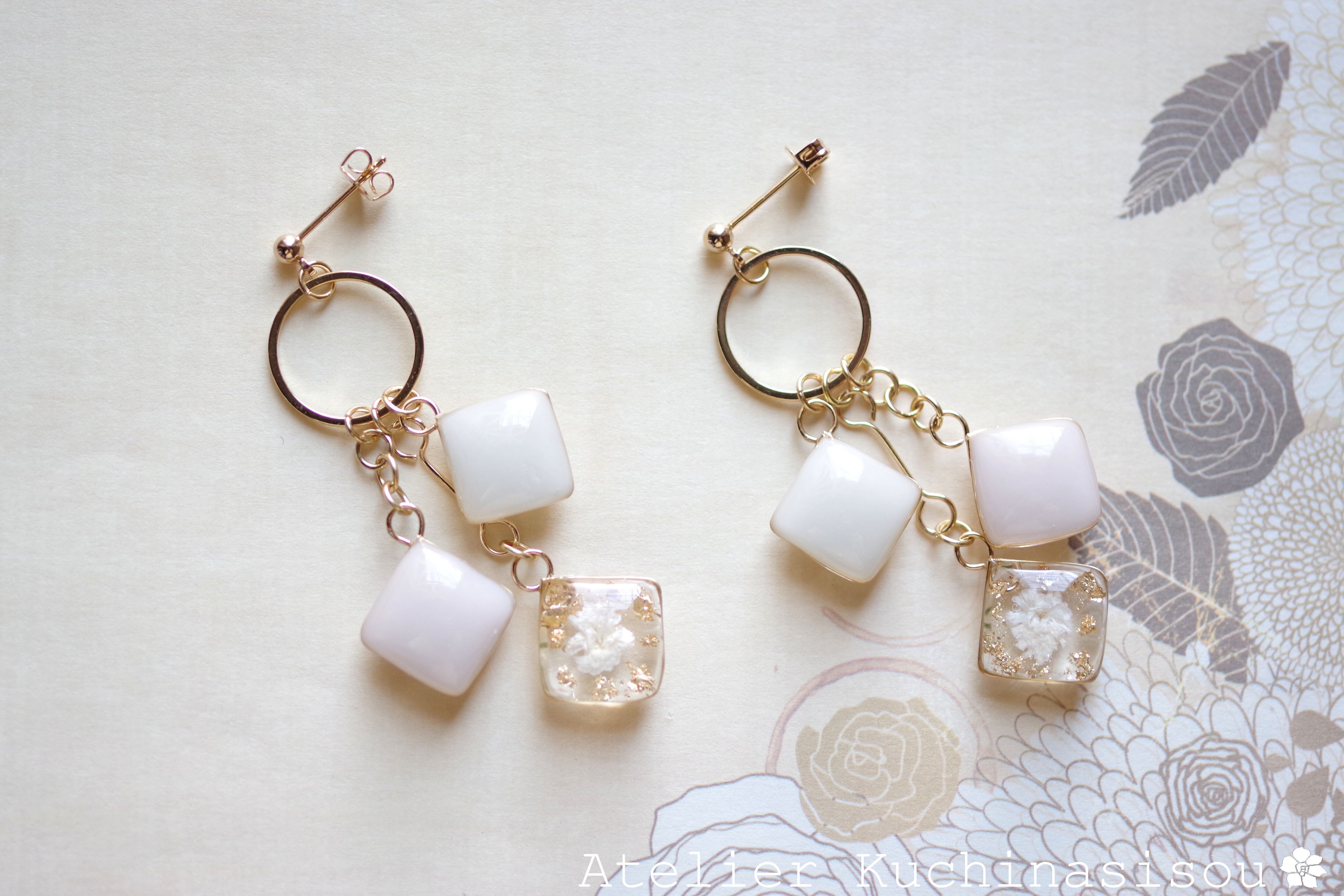 レジンでスクエアモチーフのピアスを作りました♪