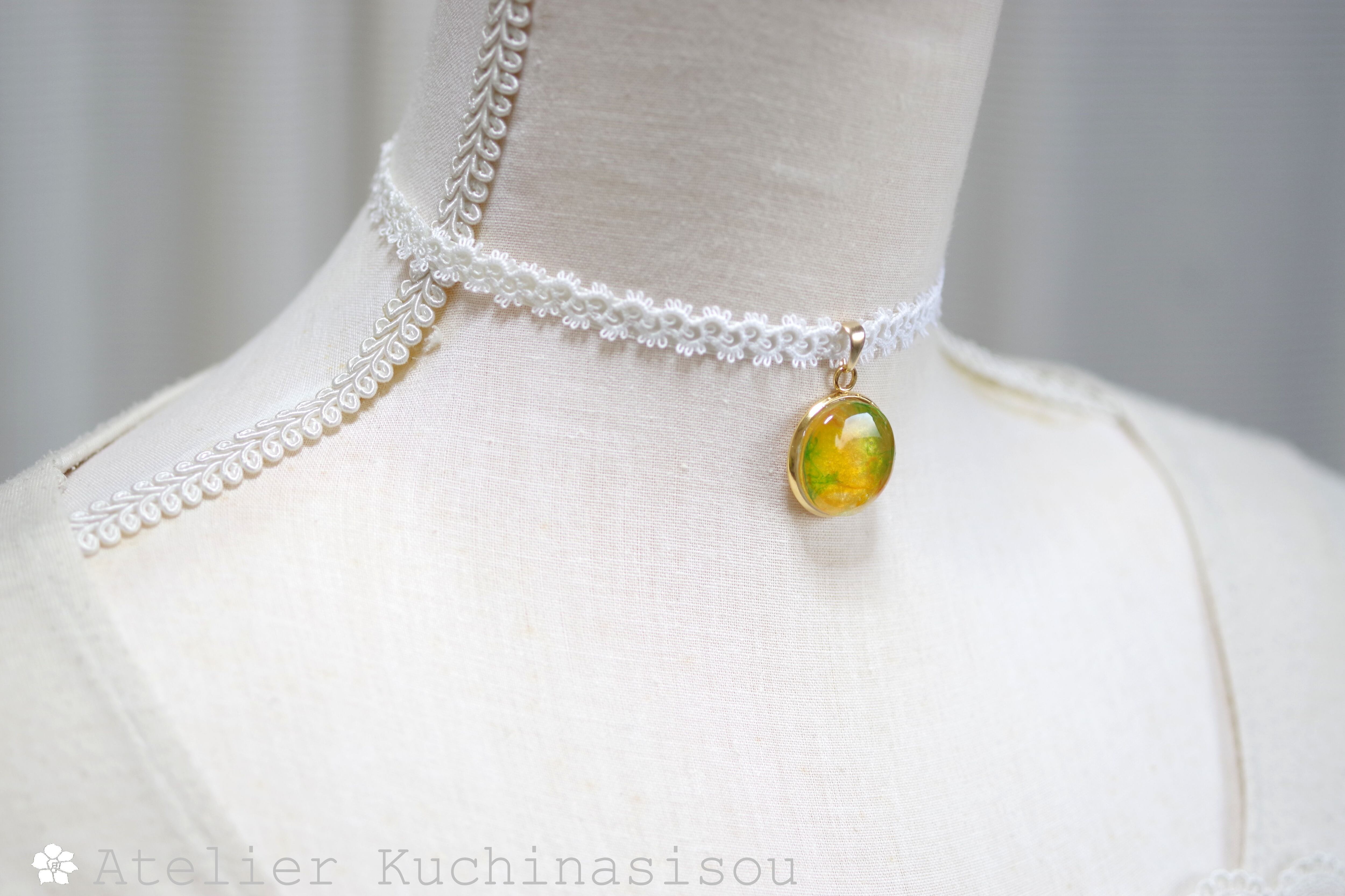 【受注製作】レジンアート ラウンドモチーフとタティングレースとサテンリボンのチョーカー〈ミモザ〉