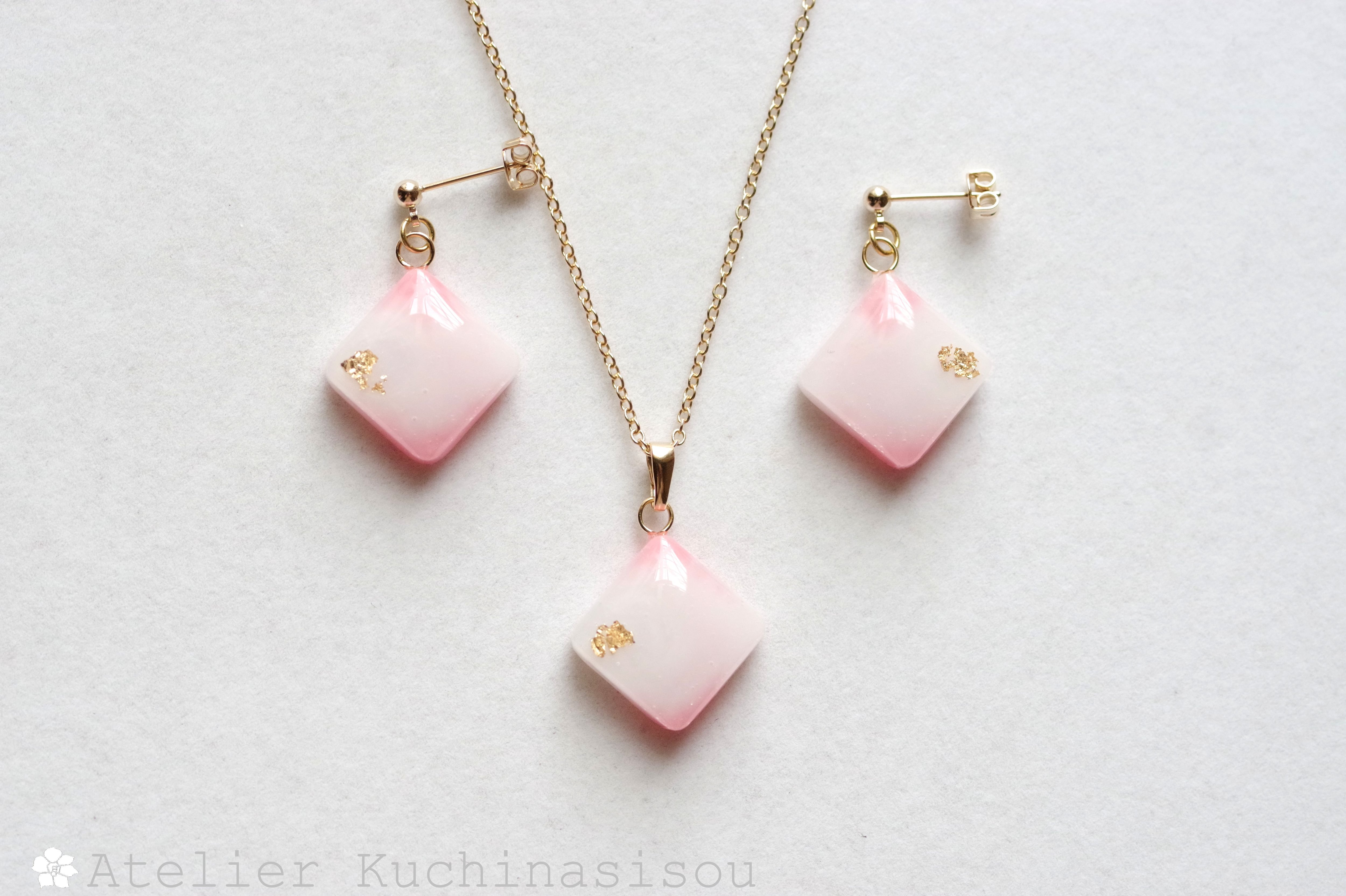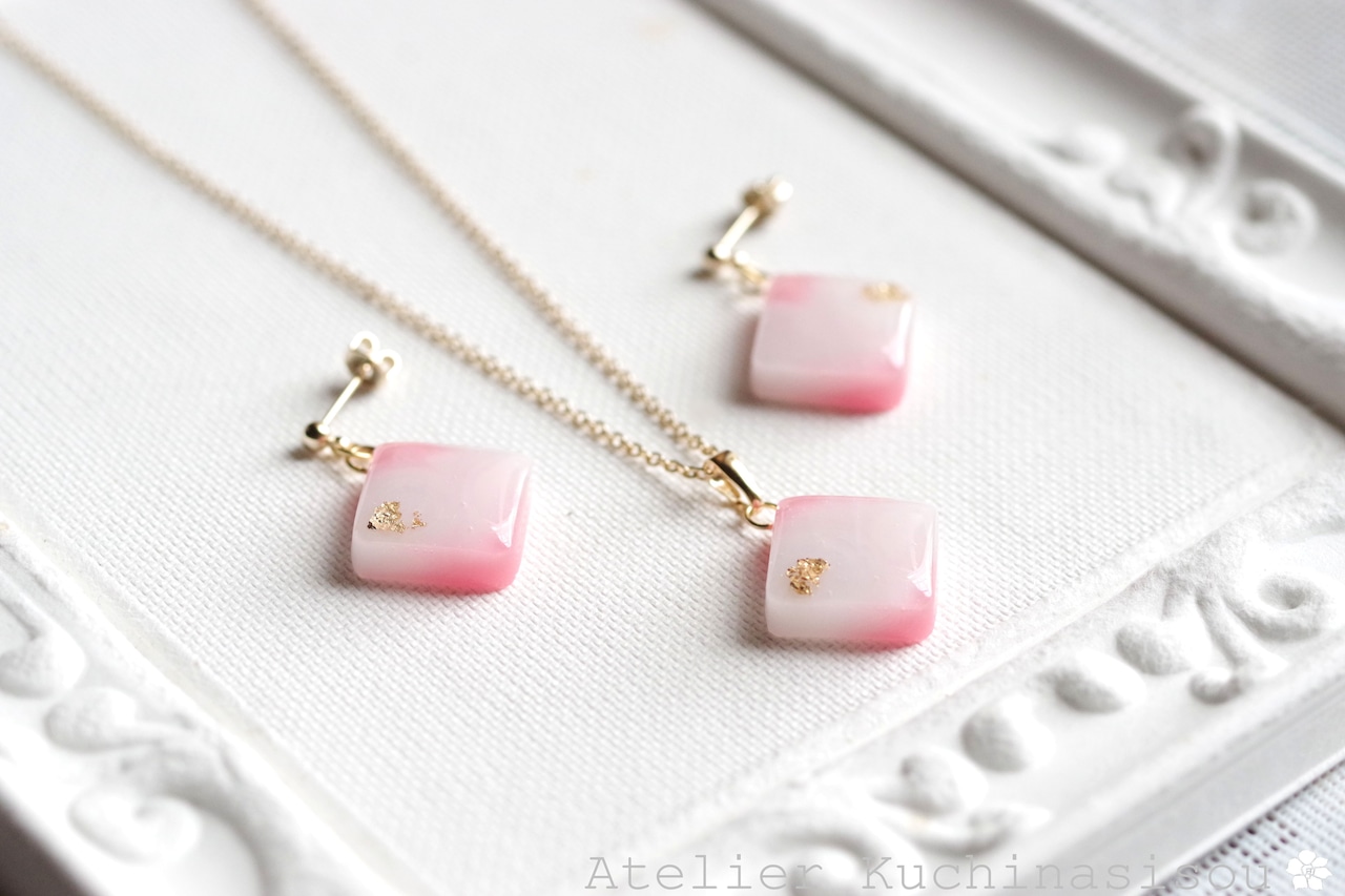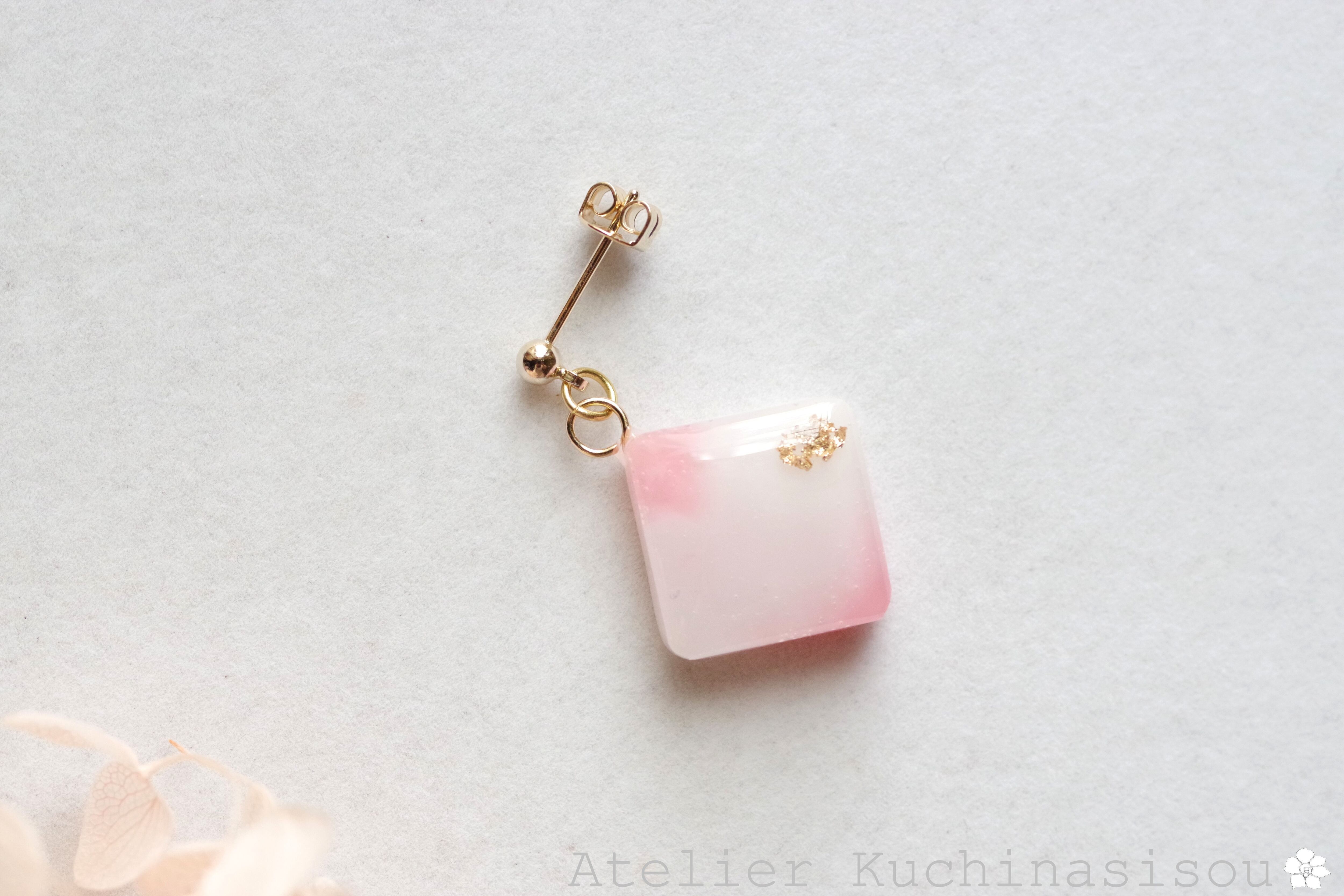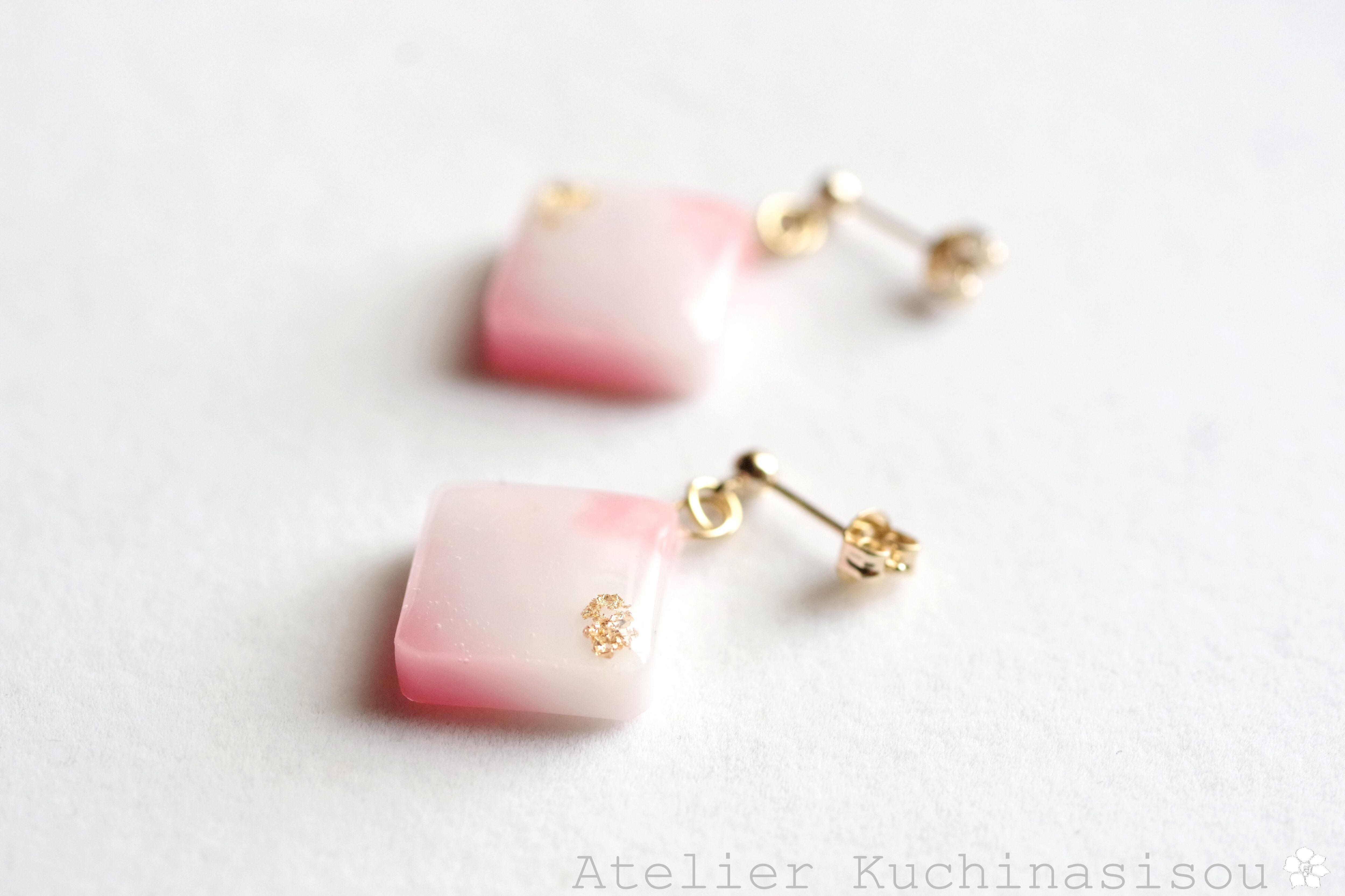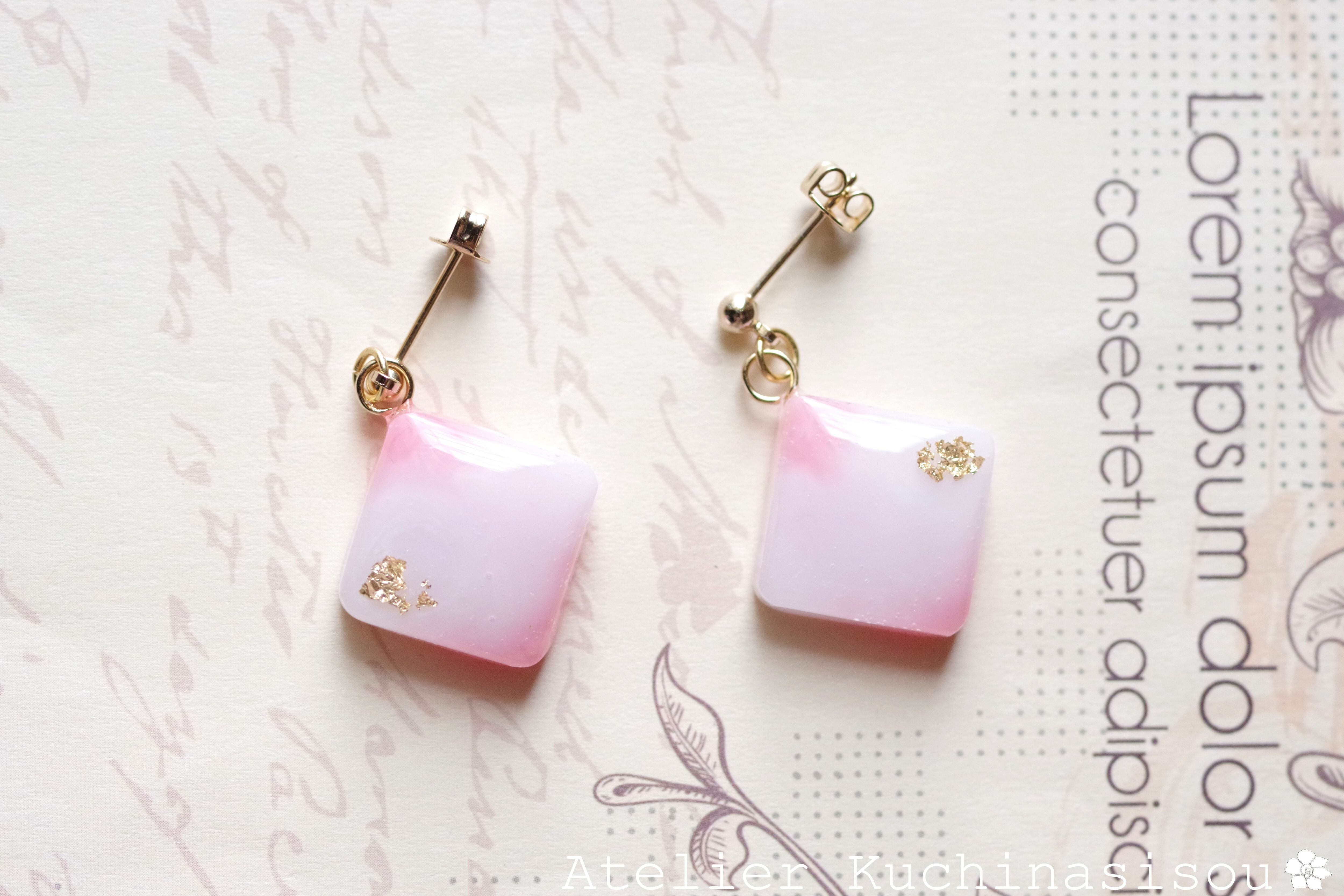 ホワイトとピンクの組み合わせが愛らしい、シャープなフォルムの中にも可憐さをのぞかせるピアス。