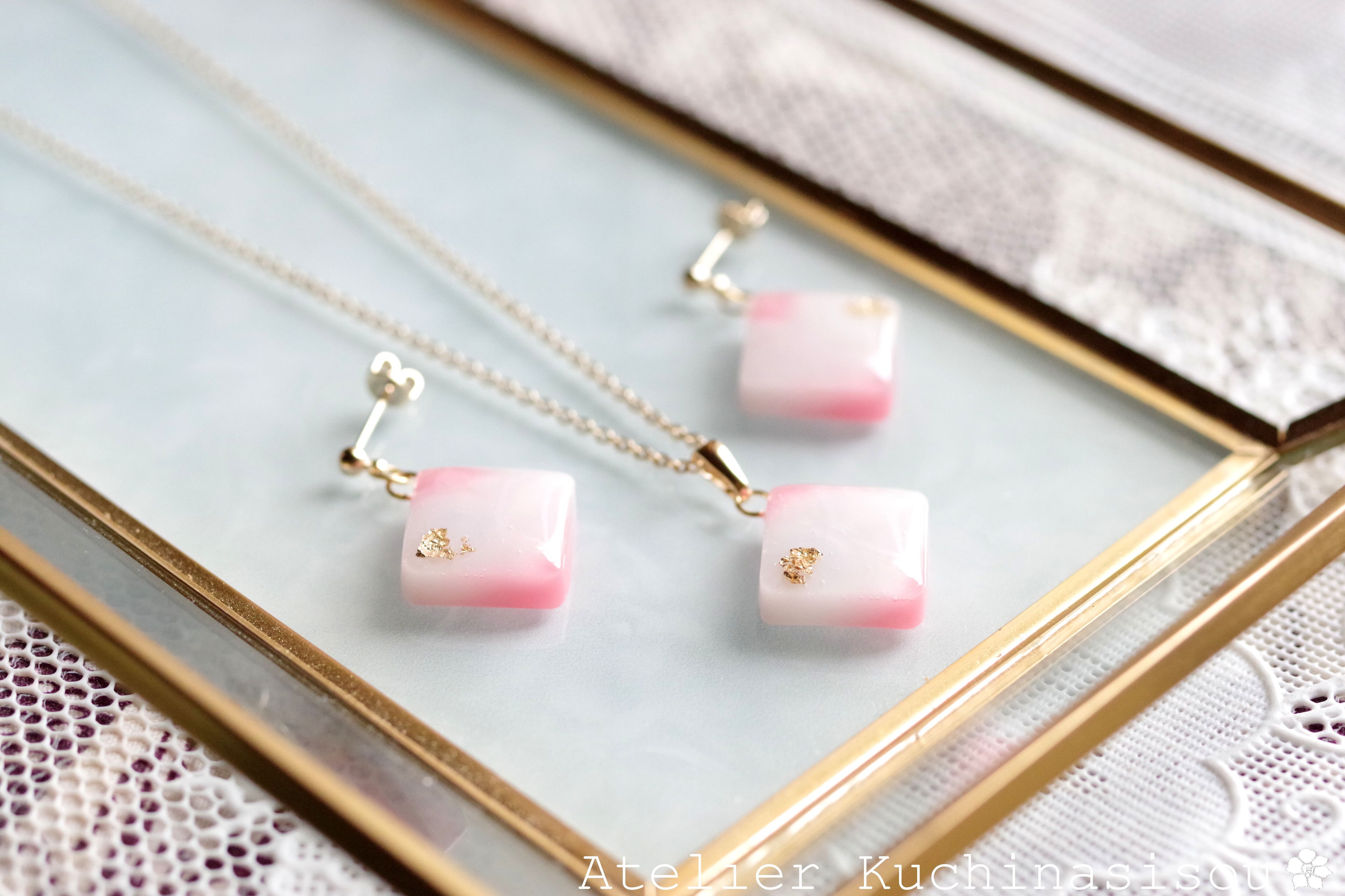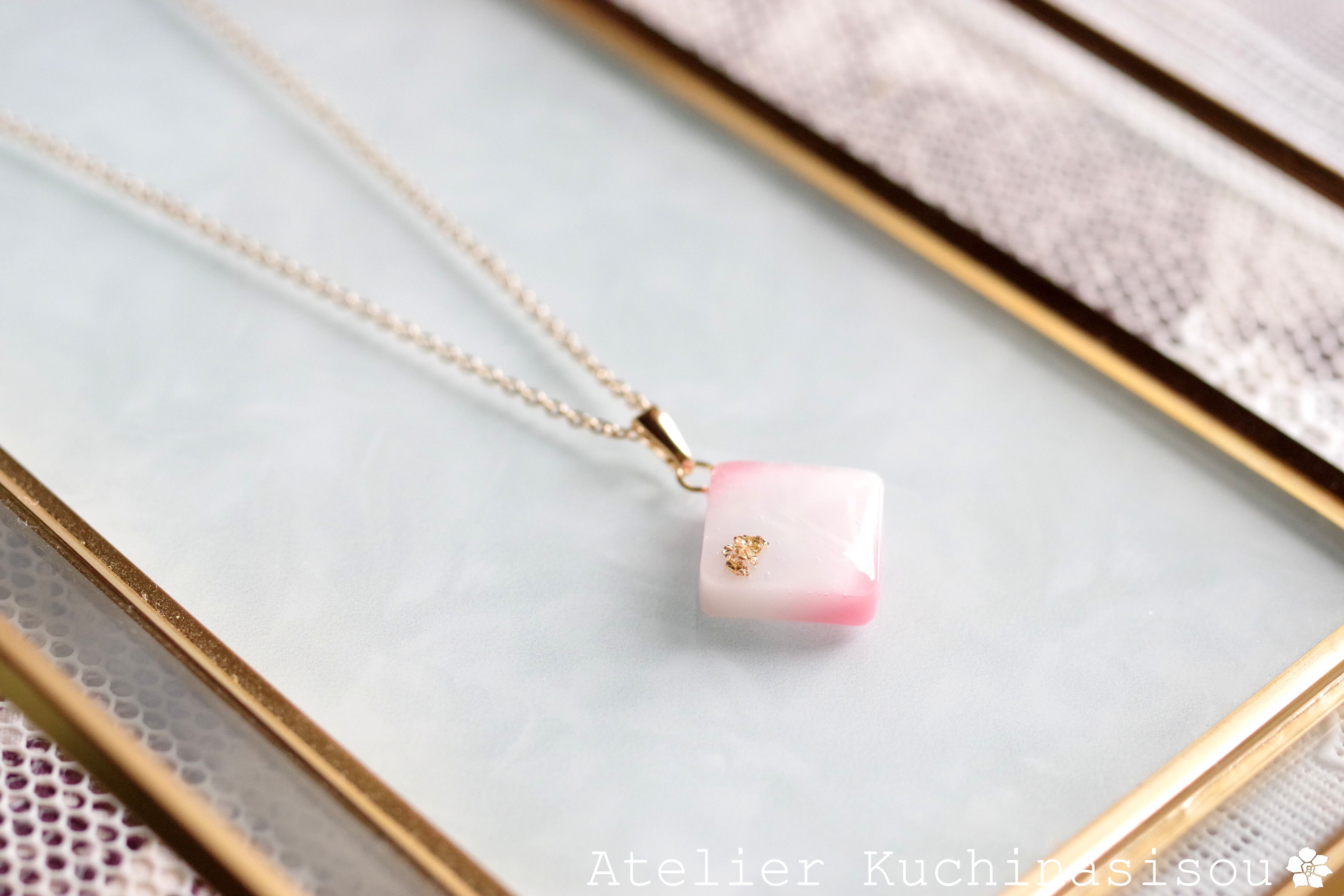 レジンアート スクエアペンダント〈はつ恋〉