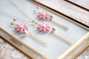 こっくりしたピンクのお花に、コットンパール一粒とフリンジを添えました。